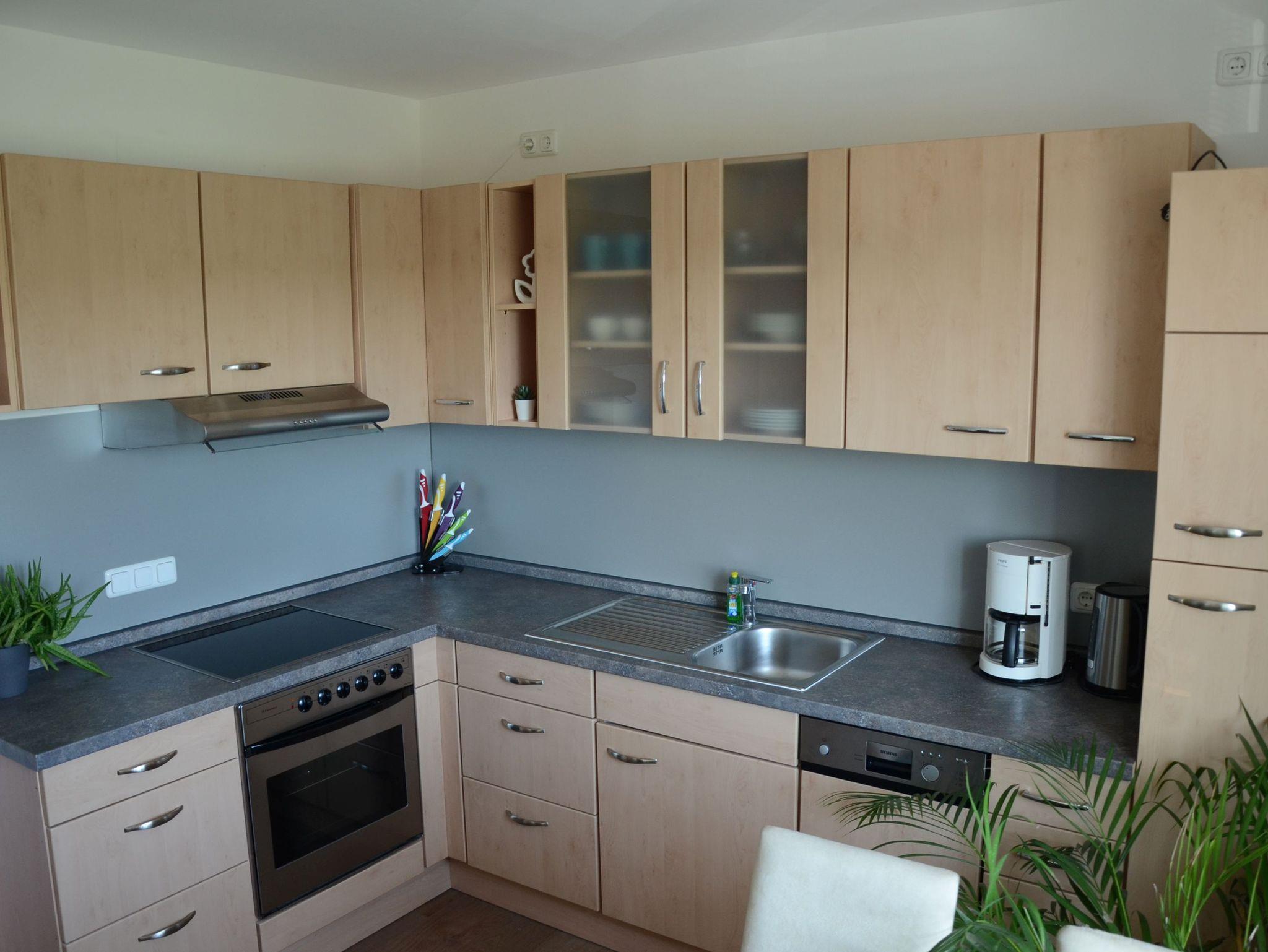 Unsere geräumige (ca. 80 qm große) Wohnung befindet sich im Obergeschoss des Hauses (daher leider nicht barrierefrei) und ist liebevoll, modern eingerichtet. Das Wohn-/Esszimmer ist ausgestattet mit einem großen LED-Fernsehgerät, einem geräumigen Sofa mit Ausziehfunktion und schönem Mobiliar/Dekoration. Das Schlafzimmer ist mit einem kleinen Flach-TV sowie Tresor ausgestattet und ist mit ca. 30 qm überaus geräumig. Die Küche ist vollausgestattet mit Kochecke, Backofen, Kühl-/Gefrierschrank und einer Spülmaschine und allen notwendigen Küchenutensilien. Im Bad finden sich eine begehbare Dusche, eine Toilette und ein moderner Waschtisch inkl. Föhn. Die Speisekammer .... die musste so übernommen werden - die spricht einfach für sich !!!