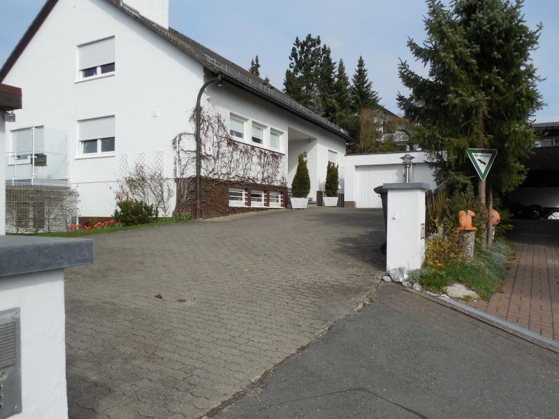 Outdoor area: garden furniture is available on the terrace with parasol and sun loungers. Private car park free of charge and garage for a fee. The property is partly detached like our house and partly fenced. Haus Eichhölzchen is situated 300 metres above sea level. There are two driveways - the driveway in the drift is easy to drive up to the house by car. In winter the road is usually gritted.
