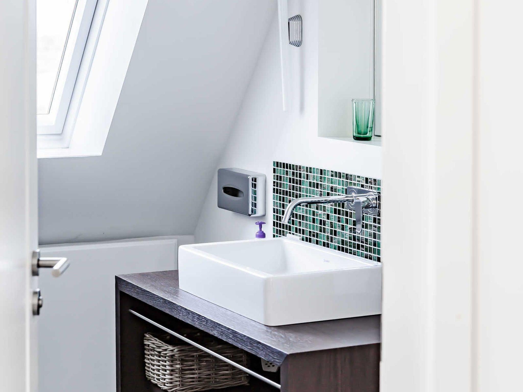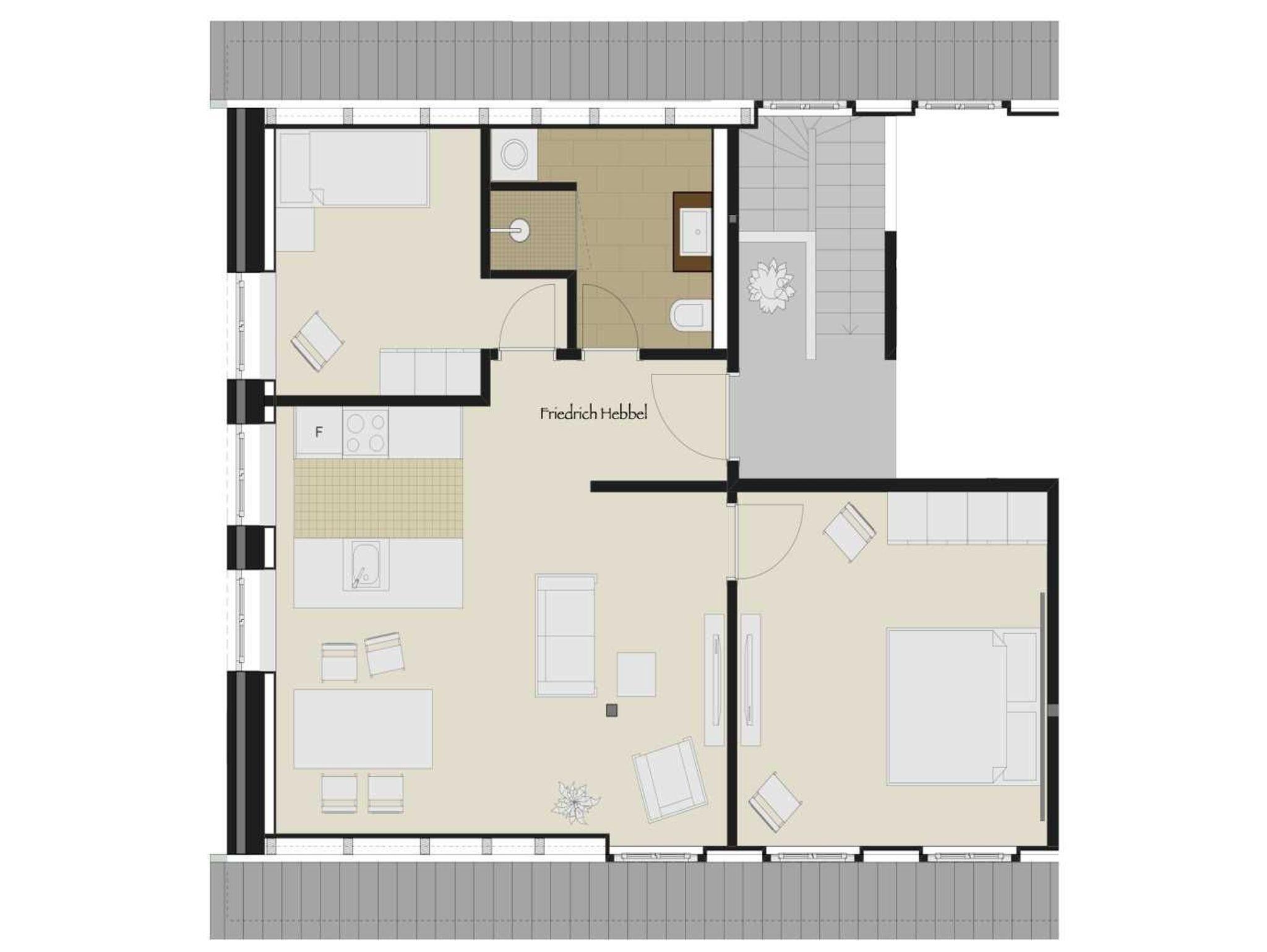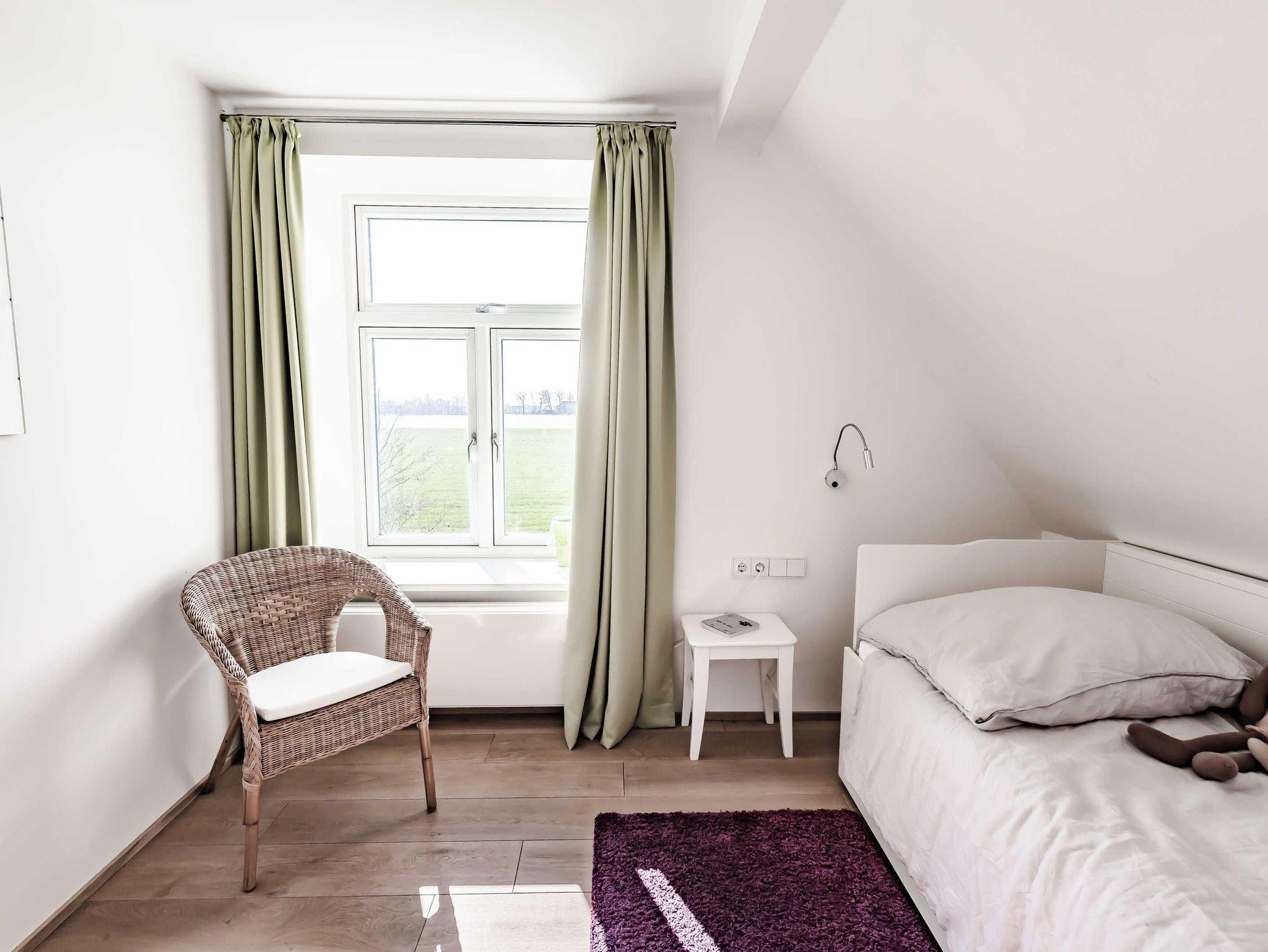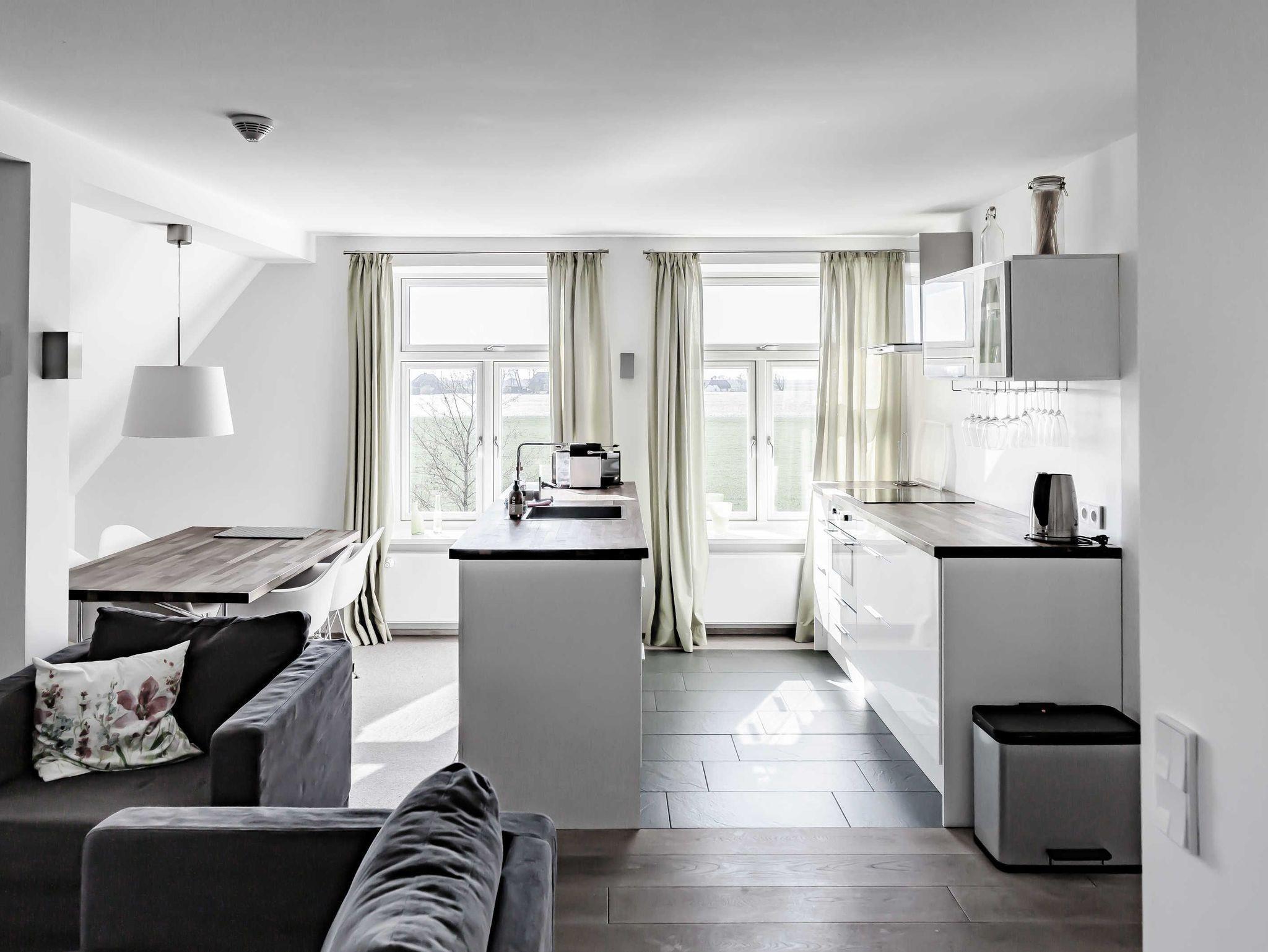 Ideal für junge Familien ist das Apartment Friedrich Hebbel im Obergeschoss der Digeskolen. Die Ausrichtung zu Süd-Westen bietet eine sehr gute Ausrichtung im Haus. Dies modern gestaltete Apartment ist praktisch geschnitten und wird zur Ruheinsel im Obergeschoss des Hauses - ideal für Nordseefreunde!