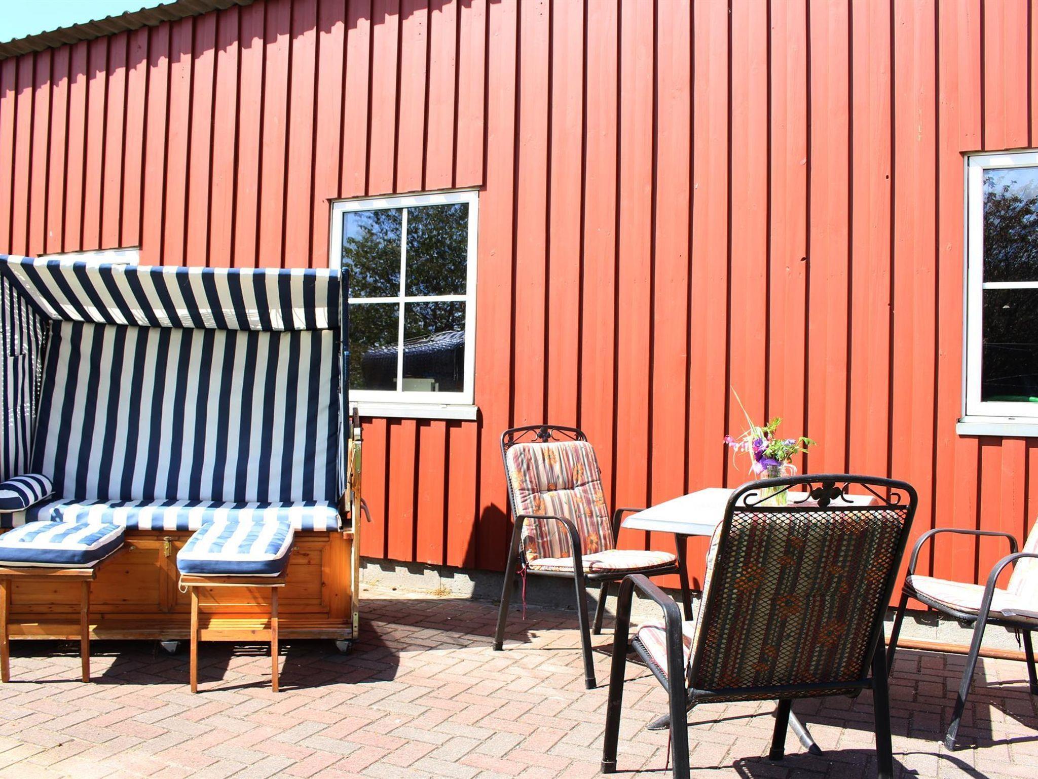 Außerdem bietet sich die Möglichkeit abends auf dem Balkon oder der Gemeinschaftsterrasse zu sitzen und den weiten Blick über die Felder und auf den Deich zu genießen.