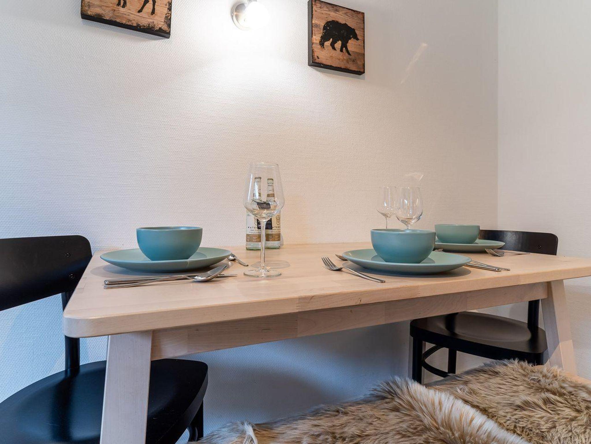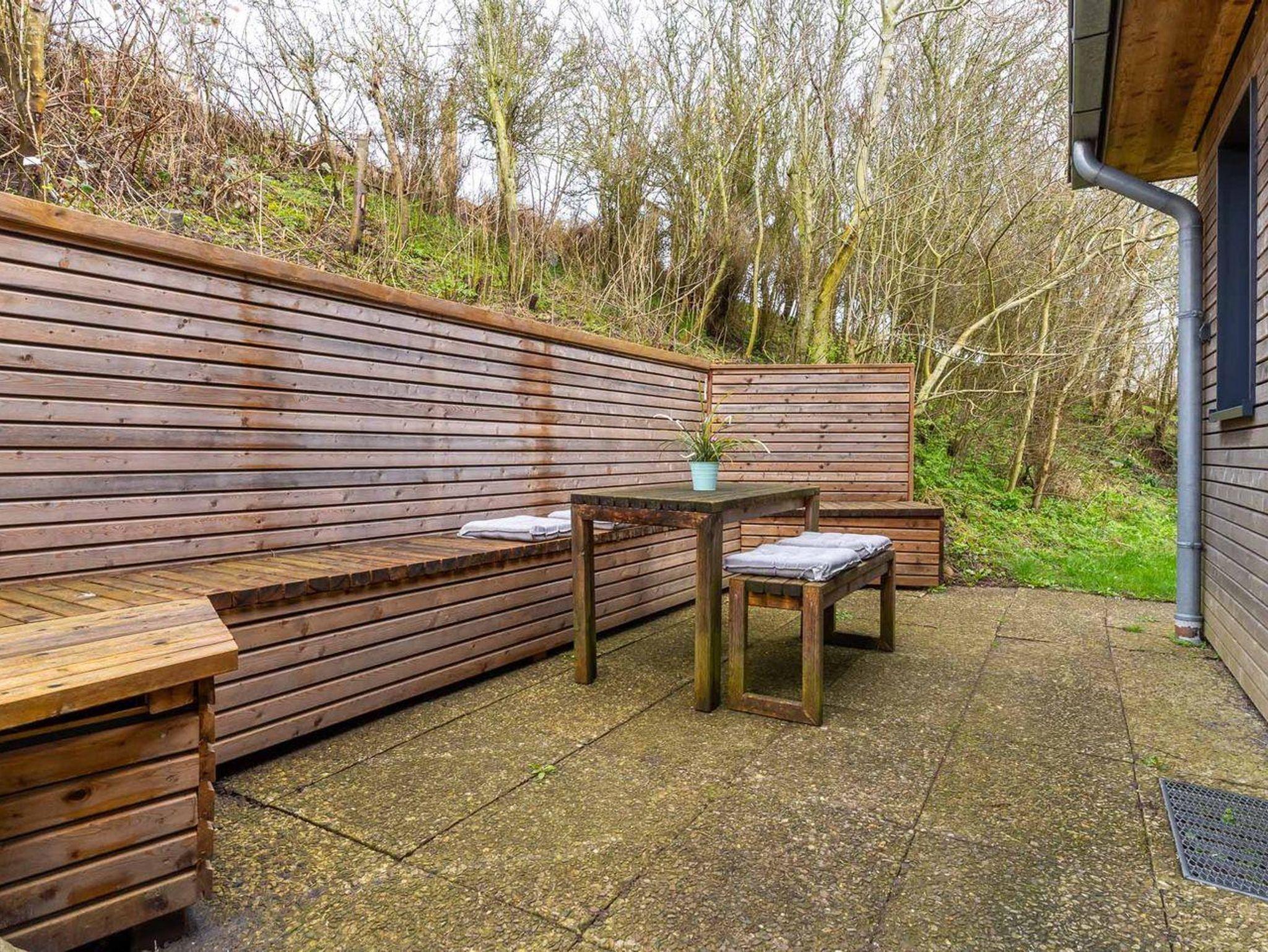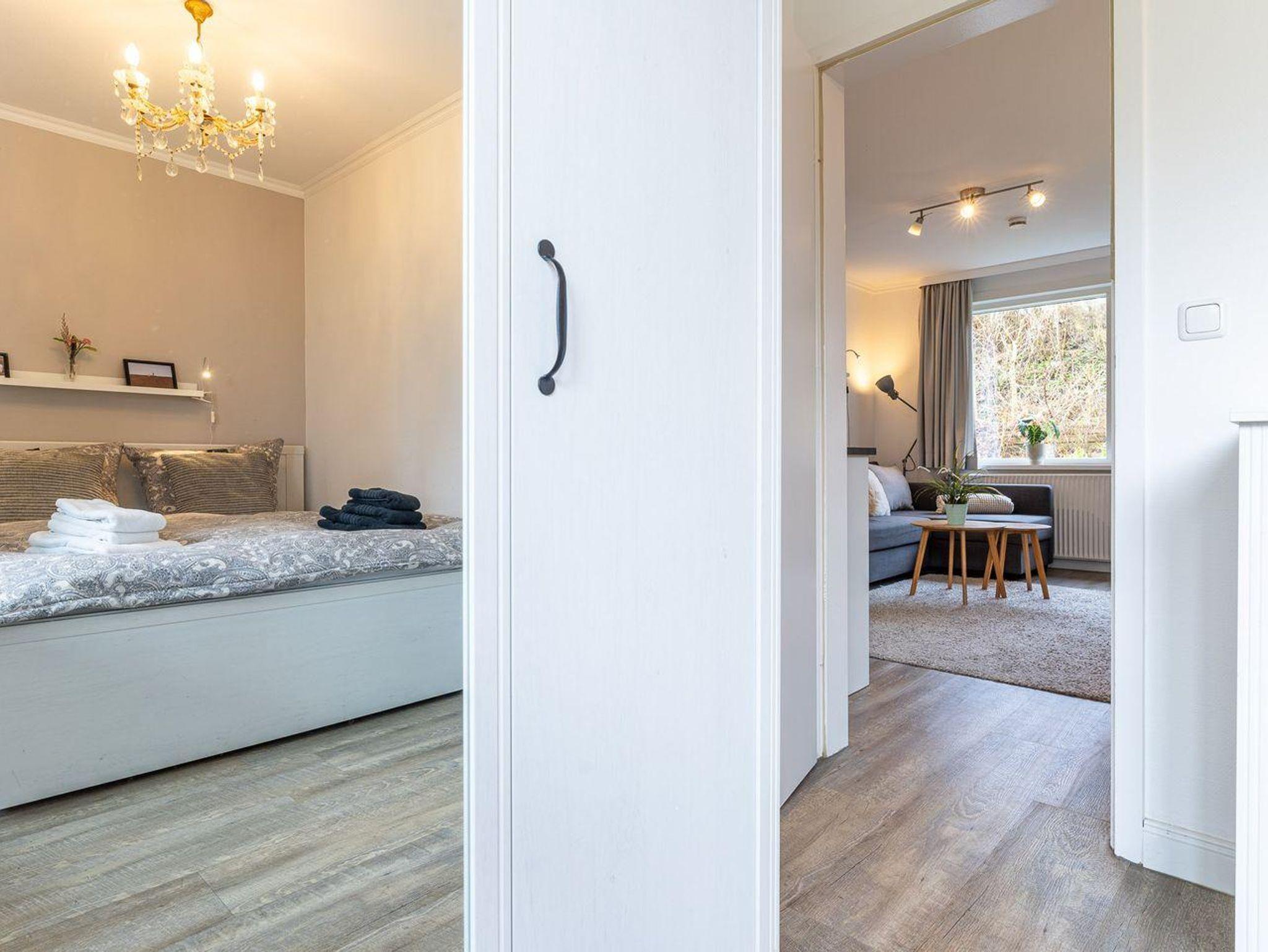 Der Wohnraum ist der ideale Ort zum Entspannen und Verweilen. Hier finden Sie einen Esstisch, eine bequeme Couch, eine TV-Anrichte und eine gut ausgestattete Küchenzeile. Die Küche ist mit einer Spülmaschine, einem Backofen, einer Kaffeemaschine, einem Toaster und reichlich Geschirr ausgestattet, um Ihre Mahlzeiten bequem zuzubereiten.