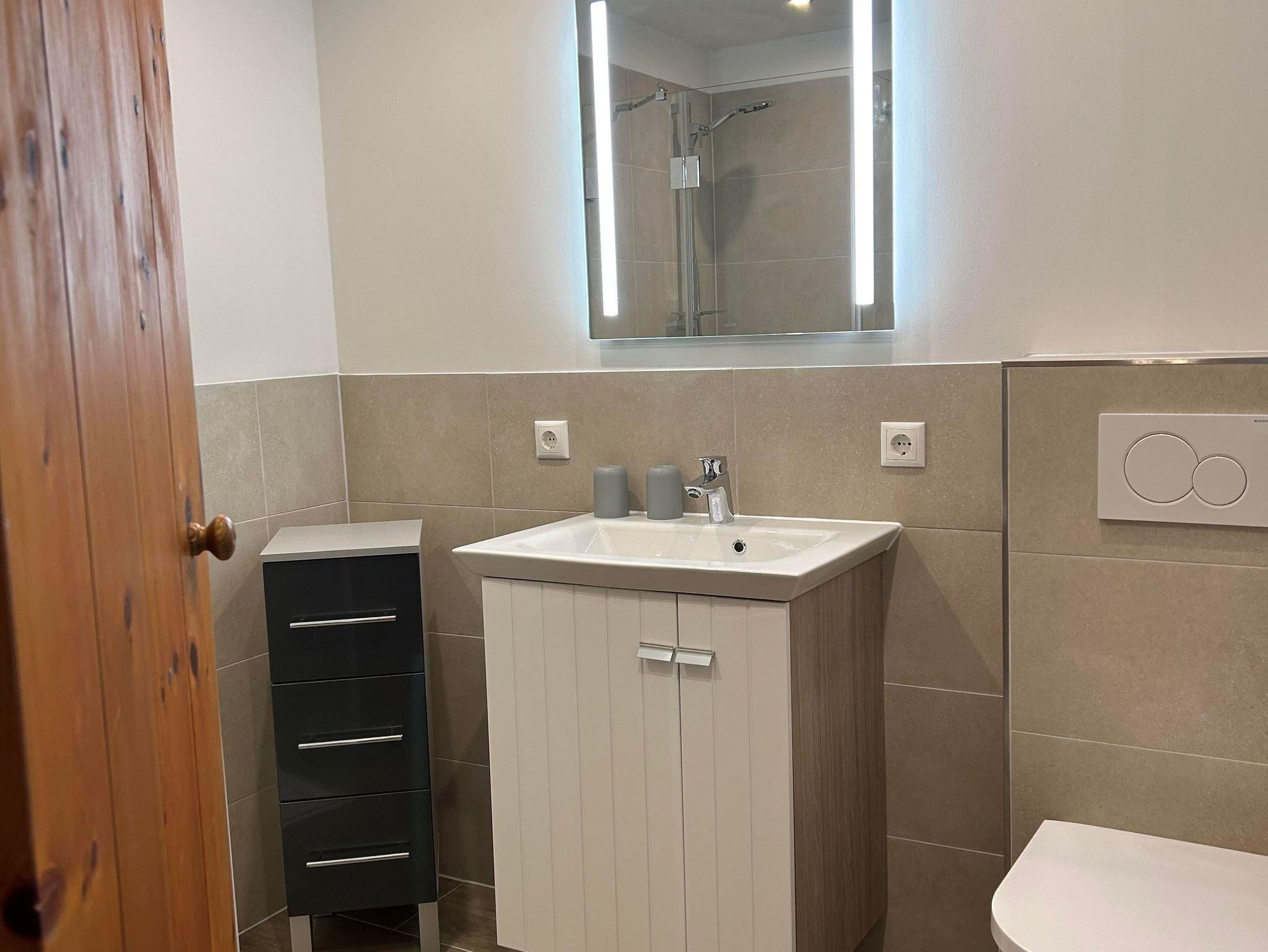 Im Erdgeschoß befindet sich die offene Küche mit Essbereich, das Duschbad und das behagliche Wohnzimmer.Das Badezimmer wurde Anfang 2025 komplett neu gestaltet.