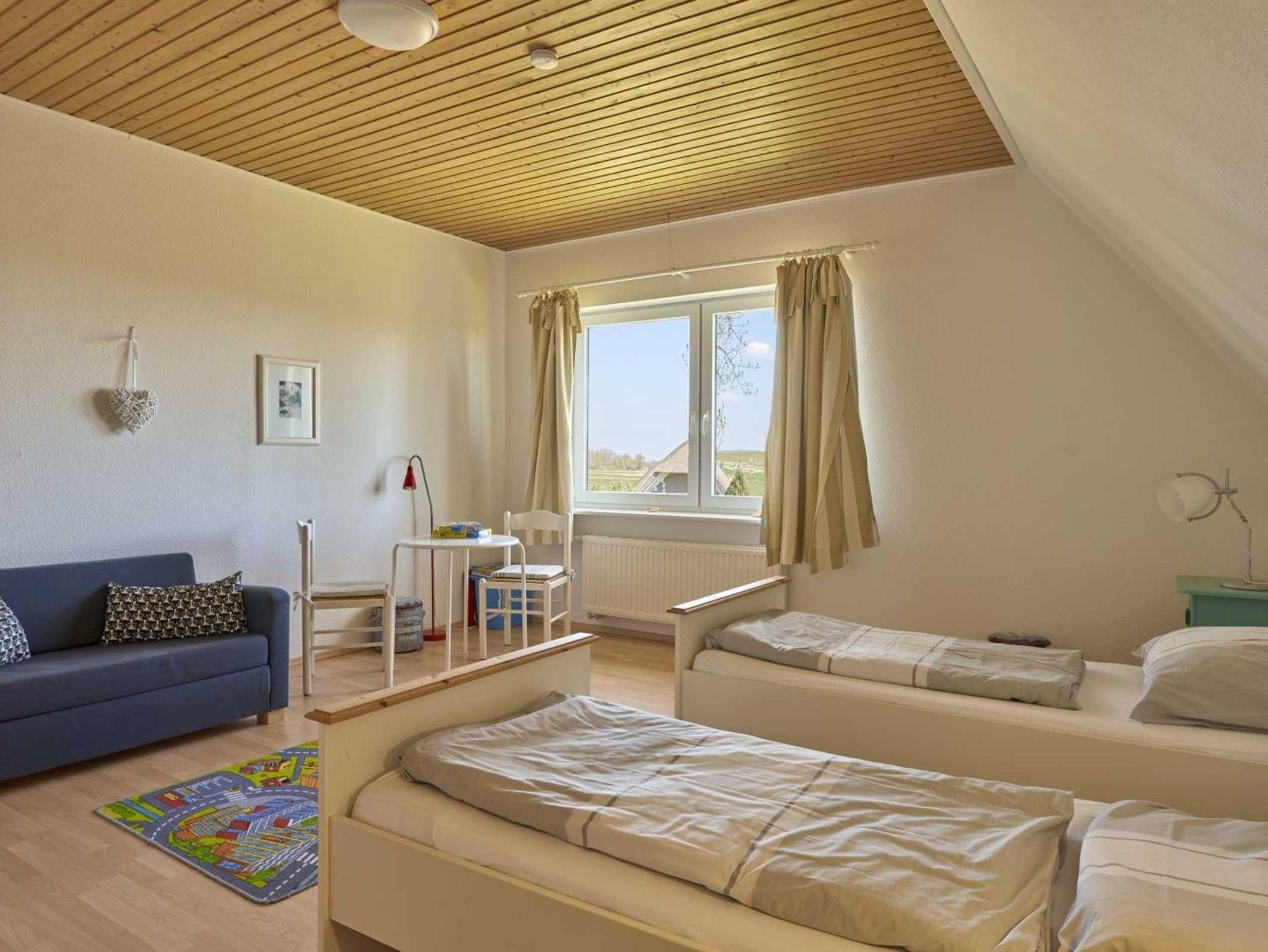 Schöne 3-Zimmer-Ferienwohnung Strandkrabbe im Haus Deichwelle - landestypisch unter Reet - mit ca. 88 m² auf 1 Ebene (OG) für bis zu 5 Personen (Wohlfühlbelegung: max. 4 Erwachsene). In ruhiger, naturnaher Lage direkt hinter dem Deich in Vollerwiek. Zur Badestelle ist es nur ein kurzer Weg zu Fuß. Ein Hund ist herzlich willkommen.