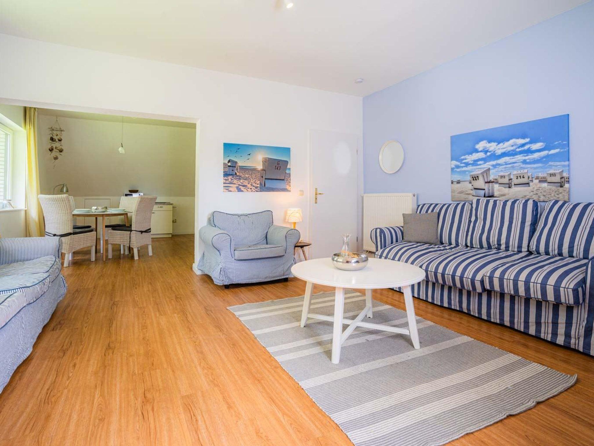 Zur Wohnung gehören ein Strandkorb und ein möblierter Sonnenfreisitz im Garten.
