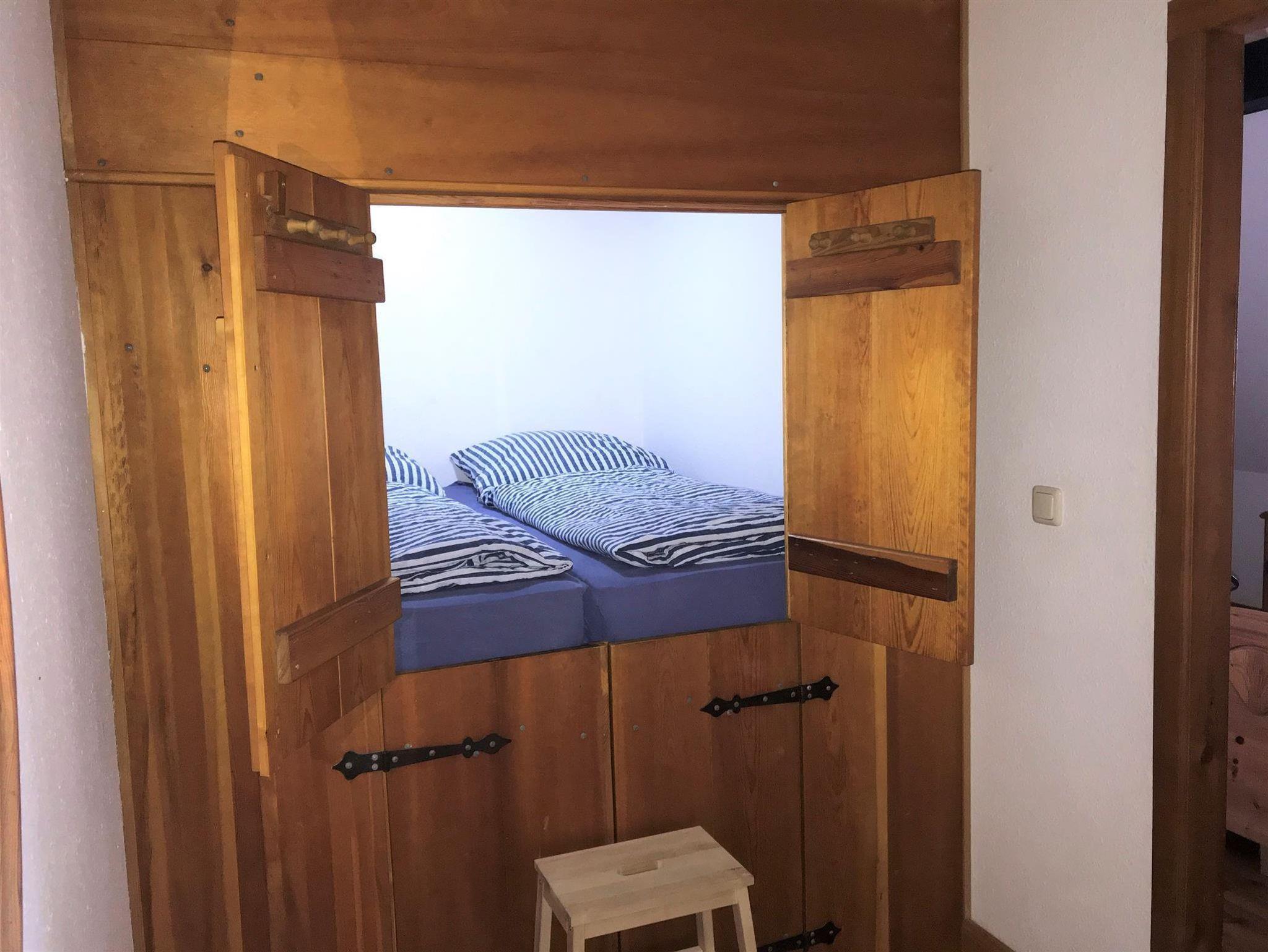 Die Ferienwohnung Seemöwe ist unsere größte Ferienwohnung im haubarg am meer. Der großzügige Wohnbereich mit offener Küche bietet viel Platz für einen entspannten Urlaub. Das Bad haben wir für euch in 2024 neu gestaltet. Über die massive Holztreppe gelangt man in das geräumige Schlafzimmer mit Doppelbett. Die Kinder schlafen getrennt von den Eltern in einem nachgebautem historischen Alkoven (entspricht einem Doppelbett).