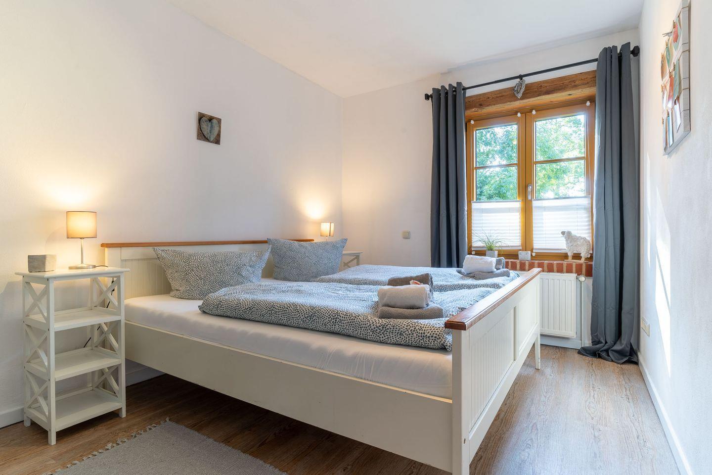 In der Wohnung befinden sich zwei Schlafzimmer, die jeweils mit einem Kleiderschrank ausgestattet sind. Im ersten Schlafzimmer befindet sich ein komfortables Doppelbett, das für erholsamen Schlaf sorgt. Das zweite Schlafzimmer ist mit einem Etagenbett ausgestattet, das vor allem für Kinder ein Highlight sein wird. Die Zimmer sind liebevoll dekoriert und bieten eine wunderbare Atmosphäre für einen erholsamen Schlaf.