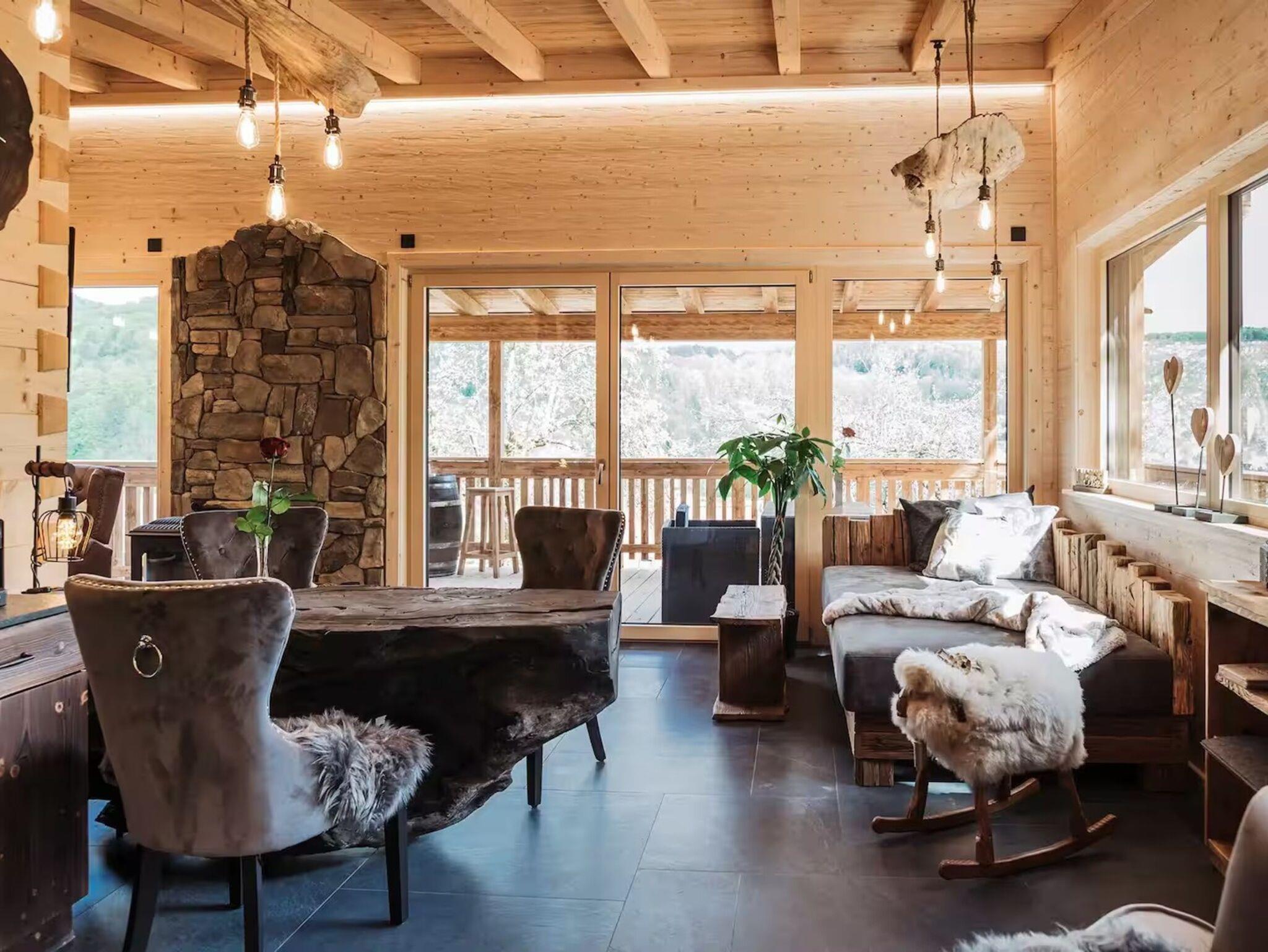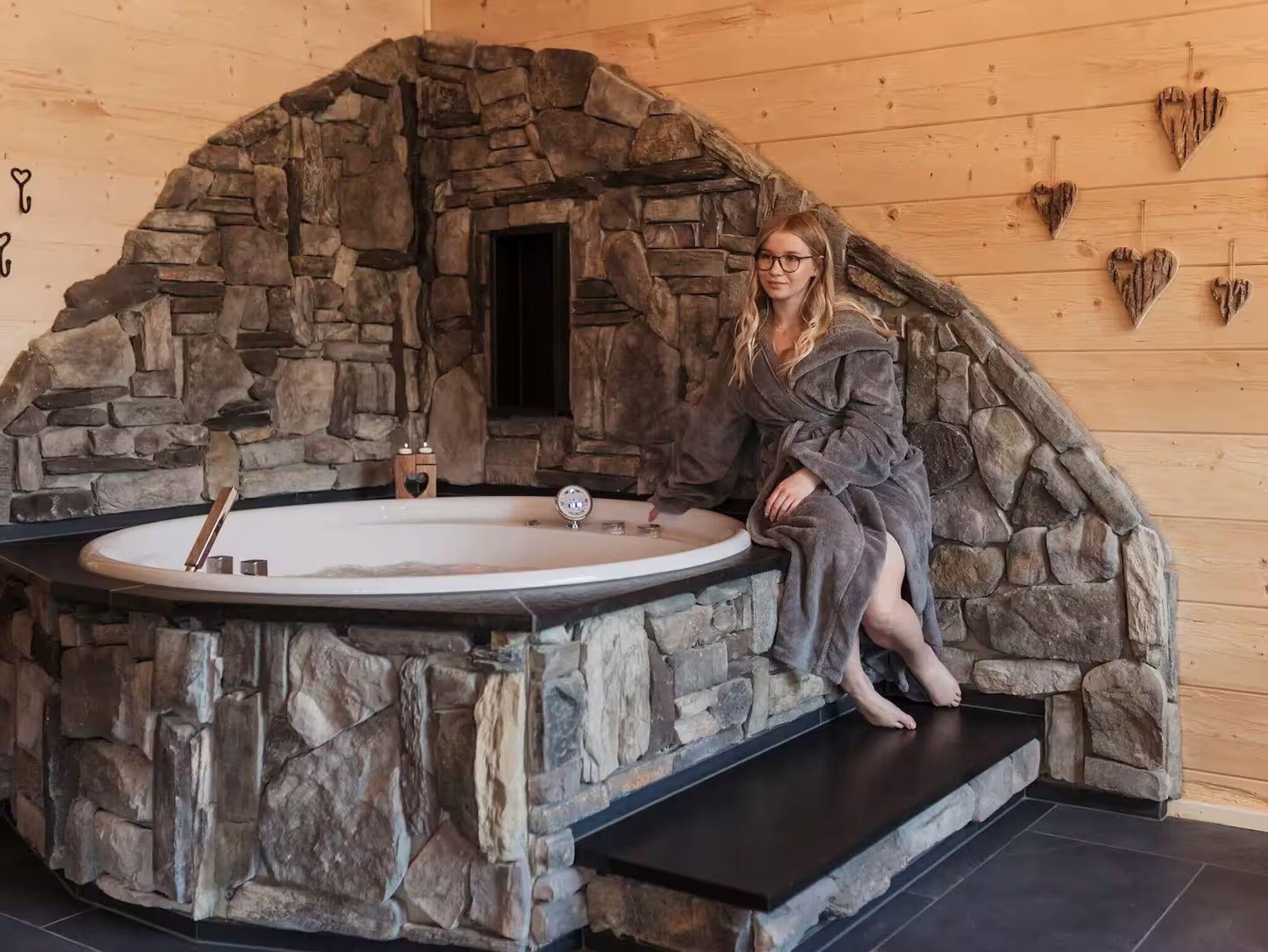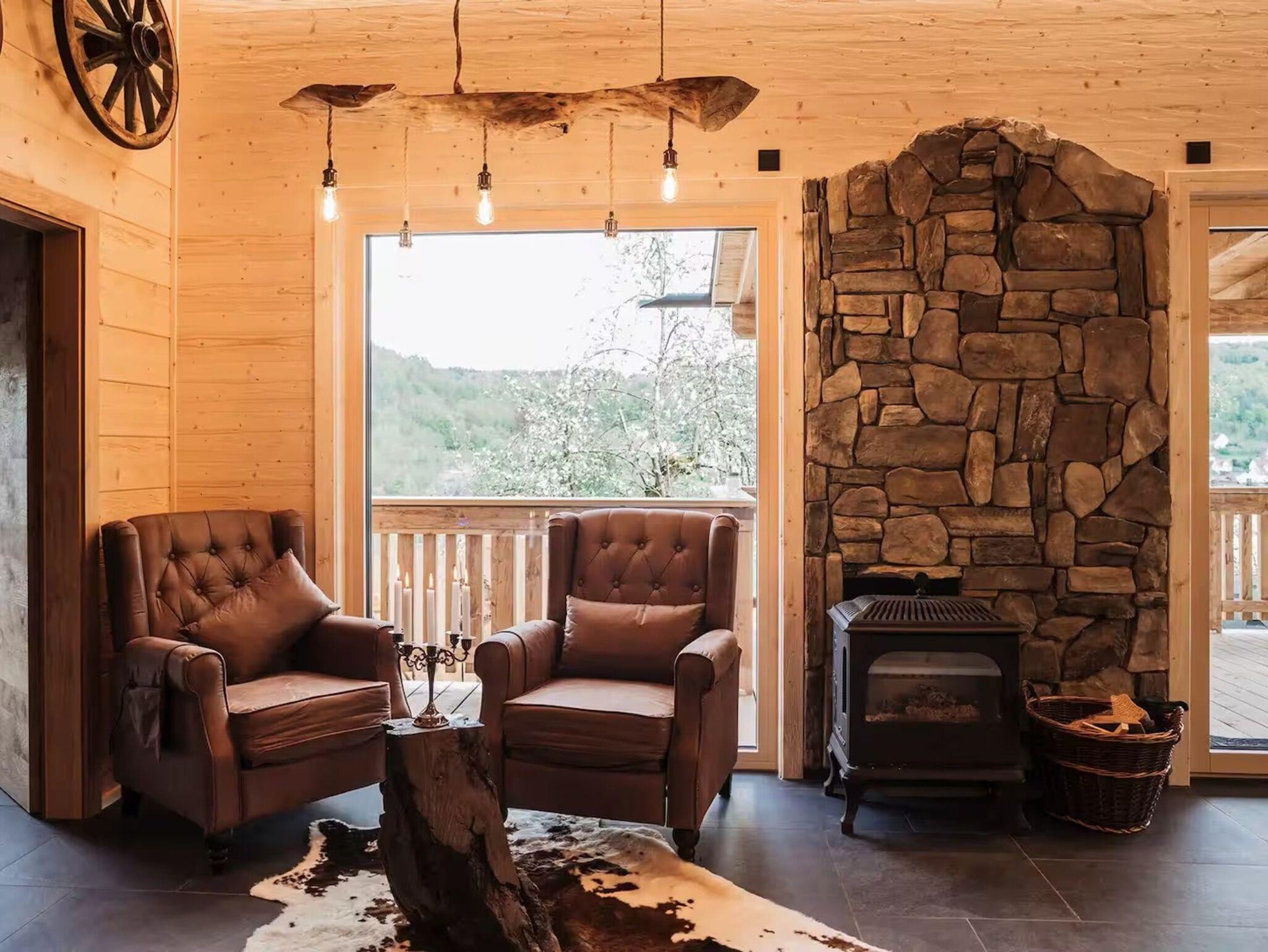 Das Romantikchalet Bärenhöhle in der Fränkischen Schweiz bietet eine liebevoll ausgestattete Unterkunft aus massivem Holz mit handgefertigten Möbeln und einzigartigen Details, in der der Duft von Holz beim Betreten sofort ein wohliges Gefühl vermittelt. Es gibt ein Schlafzimmer mit Bettwäsche, Extrakissen, Decken, Abdunklung und Moskitonetz, ein Badezimmer mit Badewanne, Dusche, Bidet, Föhn, Shampoo und Seife, sowie eine voll ausgestattete Küche mit Kühlschrank, Gefrierschrank, Elektroherd, Ofen, Geschirrspülmaschine, Wasserkocher, Kaffeemaschine, Toaster, Töpfen, Pfannen und Geschirr für Selbstversorger. Der Wohnbereich ist mit TV, Soundsystem, Kamin und Zentralheizung eingerichtet, WLAN ist vorhanden, ein Arbeitsplatz steht ebenfalls zur Verfügung. Für Familien gibt es Kinderbücher, Spielzeug, Hochstuhl, Brettspiele und Schlafmöglichkeiten auf der Schlafcouch. Das Chalet verfügt über private Wellness-Einrichtungen wie Whirlpool, Sauna und Infrarot-Liegestühle. Außenbereiche umfassen Terrasse, Balkon, Garten mit Liegestühlen, Gartenmöbel, Grill und Essbereich im Freien. Parkmöglichkeiten bestehen auf dem Grundstück, Haustiere sind auf Anfrage erlaubt, eigenständiger Check-in über Codeschloss ist möglich, und Gepäck kann jederzeit abgestellt werden. Zusatzleistungen wie Bademäntel, Hausschuhe, Handtücher und Endreinigung sind inklusive, sodass ein entspannter Aufenthalt vom ersten Moment an garantiert ist.