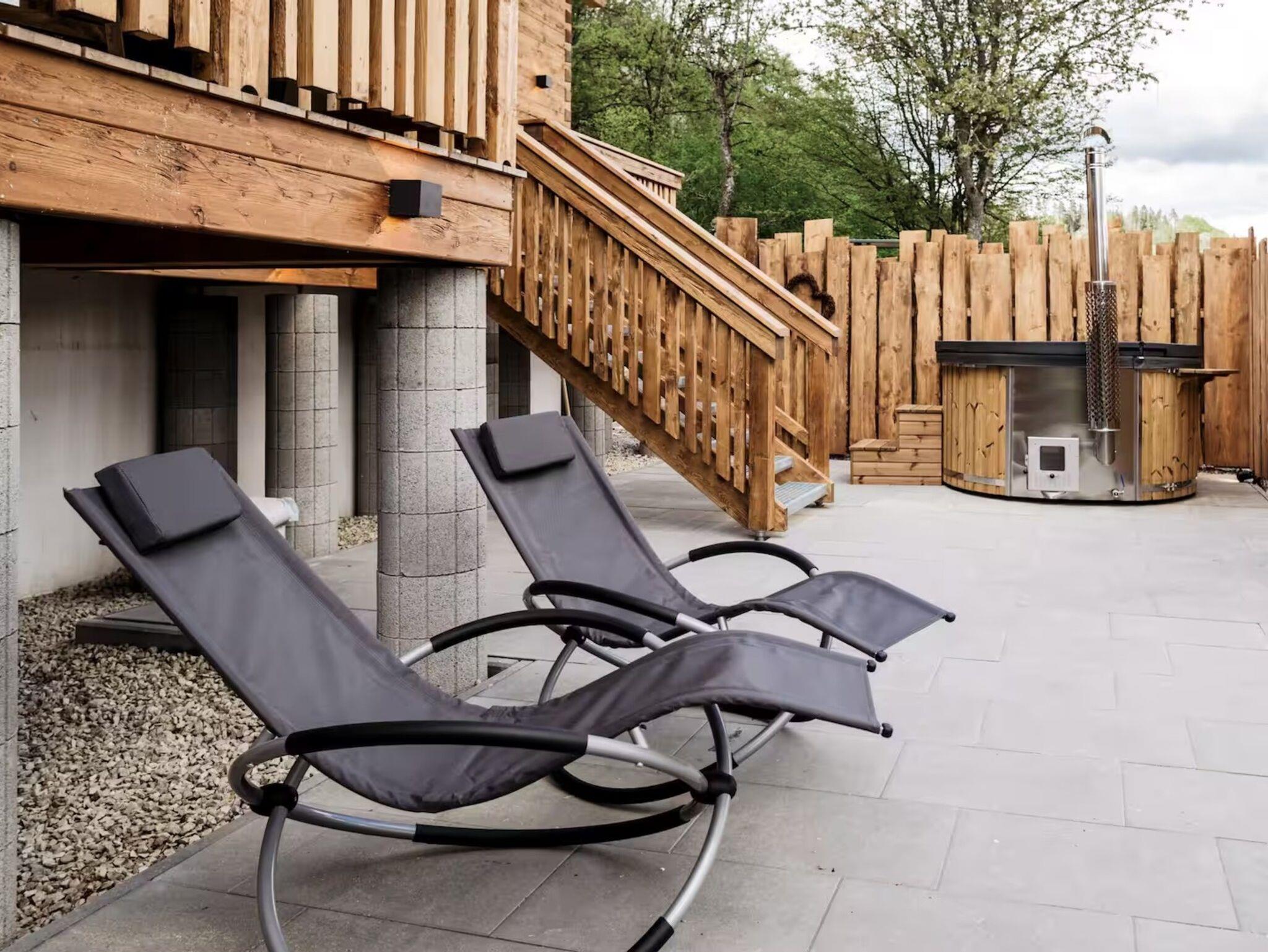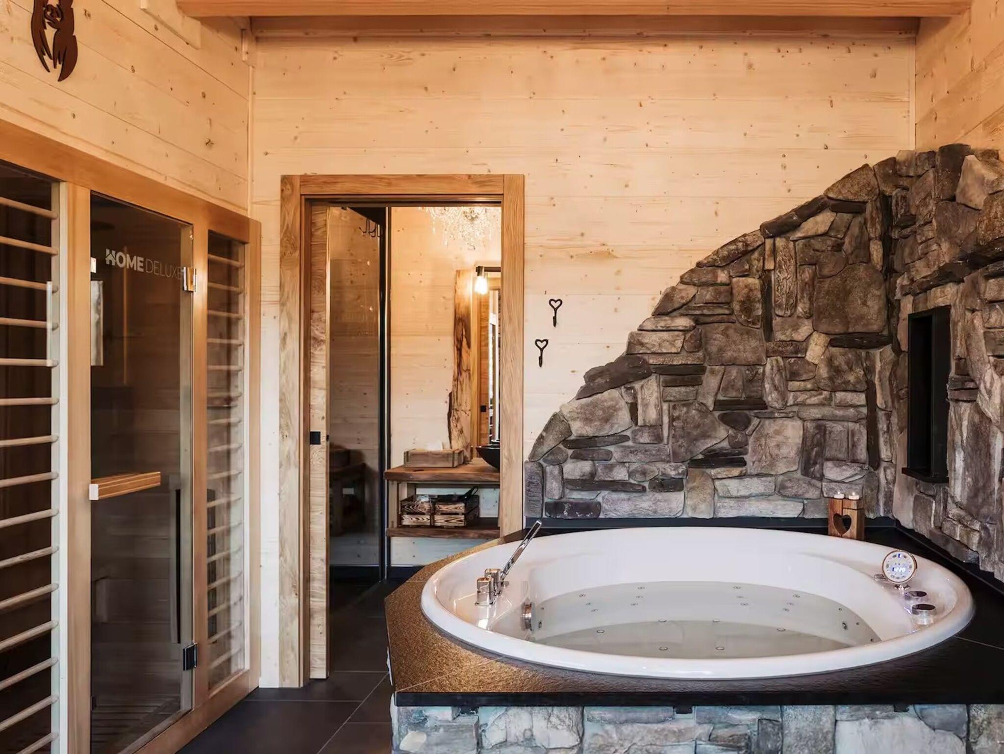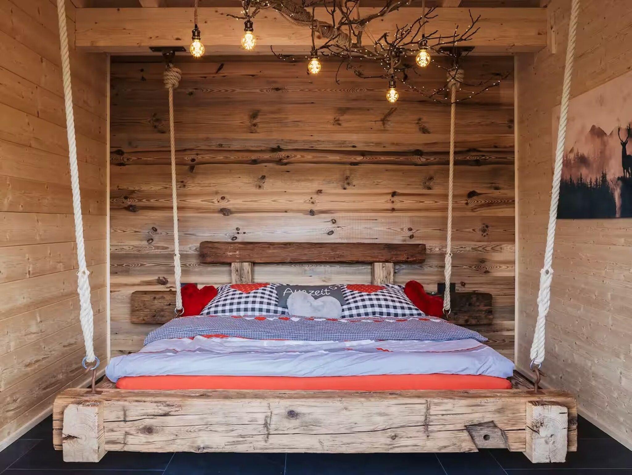 Das Romantikchalet Bärenhöhle in der Fränkischen Schweiz bietet eine liebevoll ausgestattete Unterkunft aus massivem Holz mit handgefertigten Möbeln und einzigartigen Details, in der der Duft von Holz beim Betreten sofort ein wohliges Gefühl vermittelt. Es gibt ein Schlafzimmer mit Bettwäsche, Extrakissen, Decken, Abdunklung und Moskitonetz, ein Badezimmer mit Badewanne, Dusche, Bidet, Föhn, Shampoo und Seife, sowie eine voll ausgestattete Küche mit Kühlschrank, Gefrierschrank, Elektroherd, Ofen, Geschirrspülmaschine, Wasserkocher, Kaffeemaschine, Toaster, Töpfen, Pfannen und Geschirr für Selbstversorger. Der Wohnbereich ist mit TV, Soundsystem, Kamin und Zentralheizung eingerichtet, WLAN ist vorhanden, ein Arbeitsplatz steht ebenfalls zur Verfügung. Für Familien gibt es Kinderbücher, Spielzeug, Hochstuhl, Brettspiele und Schlafmöglichkeiten auf der Schlafcouch. Das Chalet verfügt über private Wellness-Einrichtungen wie Whirlpool, Sauna und Infrarot-Liegestühle. Außenbereiche umfassen Terrasse, Balkon, Garten mit Liegestühlen, Gartenmöbel, Grill und Essbereich im Freien. Parkmöglichkeiten bestehen auf dem Grundstück, Haustiere sind auf Anfrage erlaubt, eigenständiger Check-in über Codeschloss ist möglich, und Gepäck kann jederzeit abgestellt werden. Zusatzleistungen wie Bademäntel, Hausschuhe, Handtücher und Endreinigung sind inklusive, sodass ein entspannter Aufenthalt vom ersten Moment an garantiert ist.