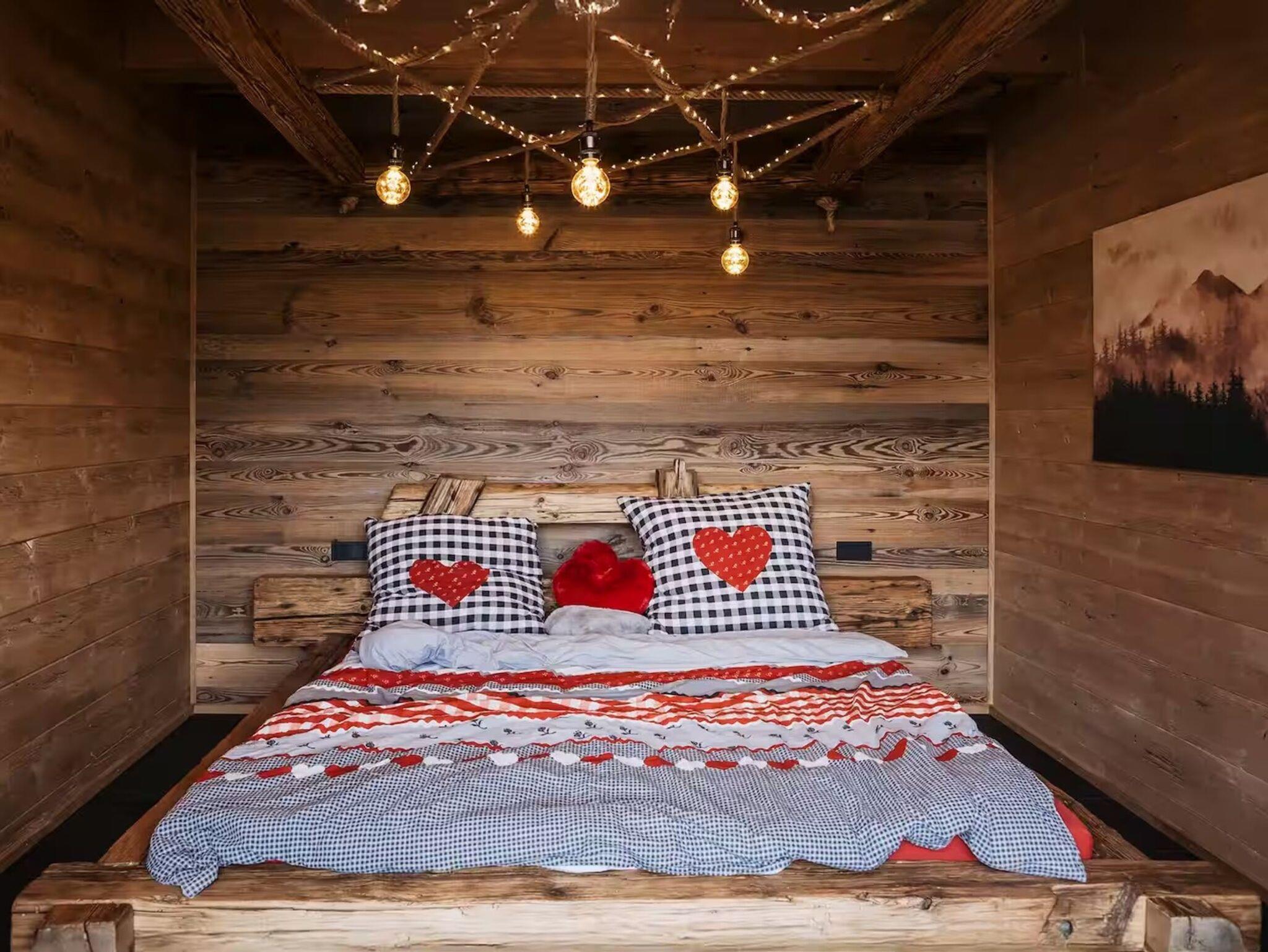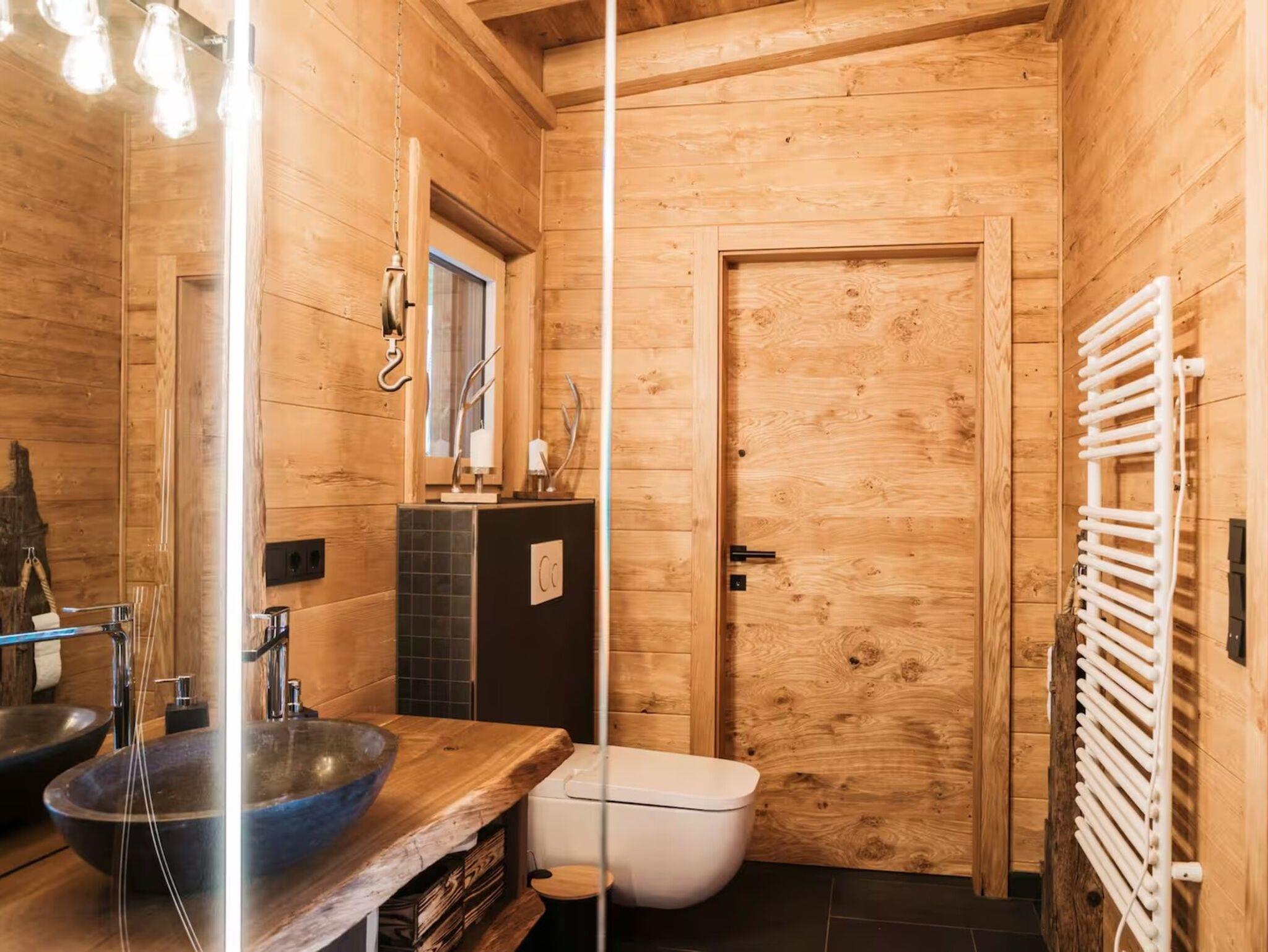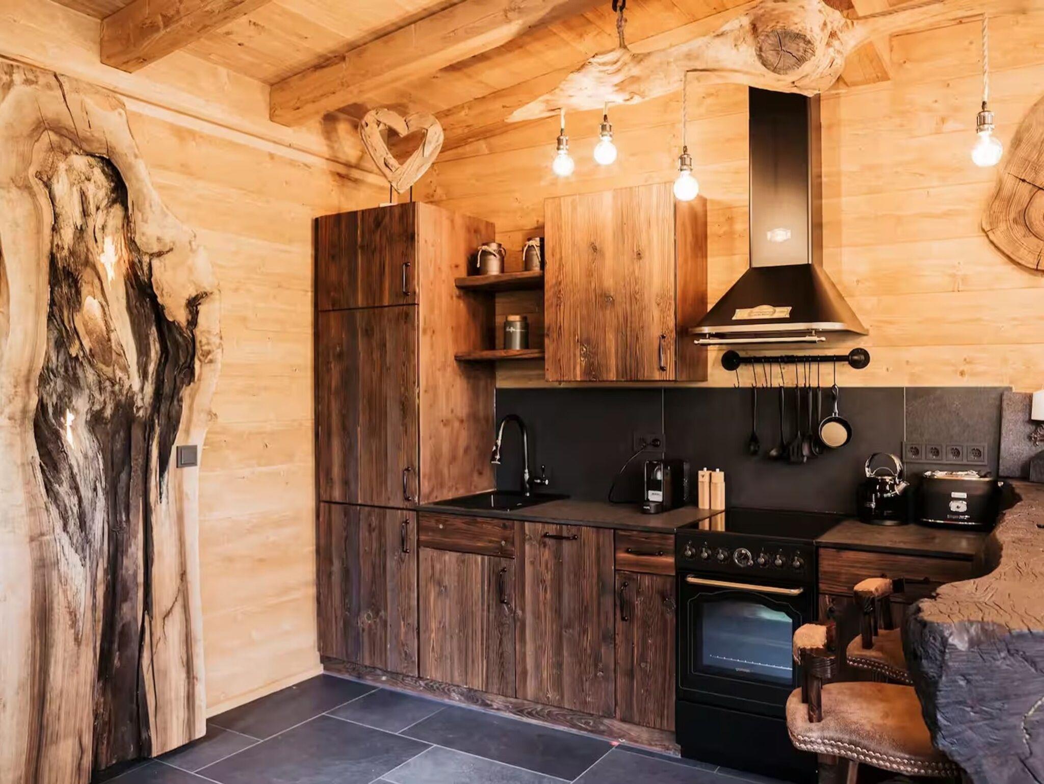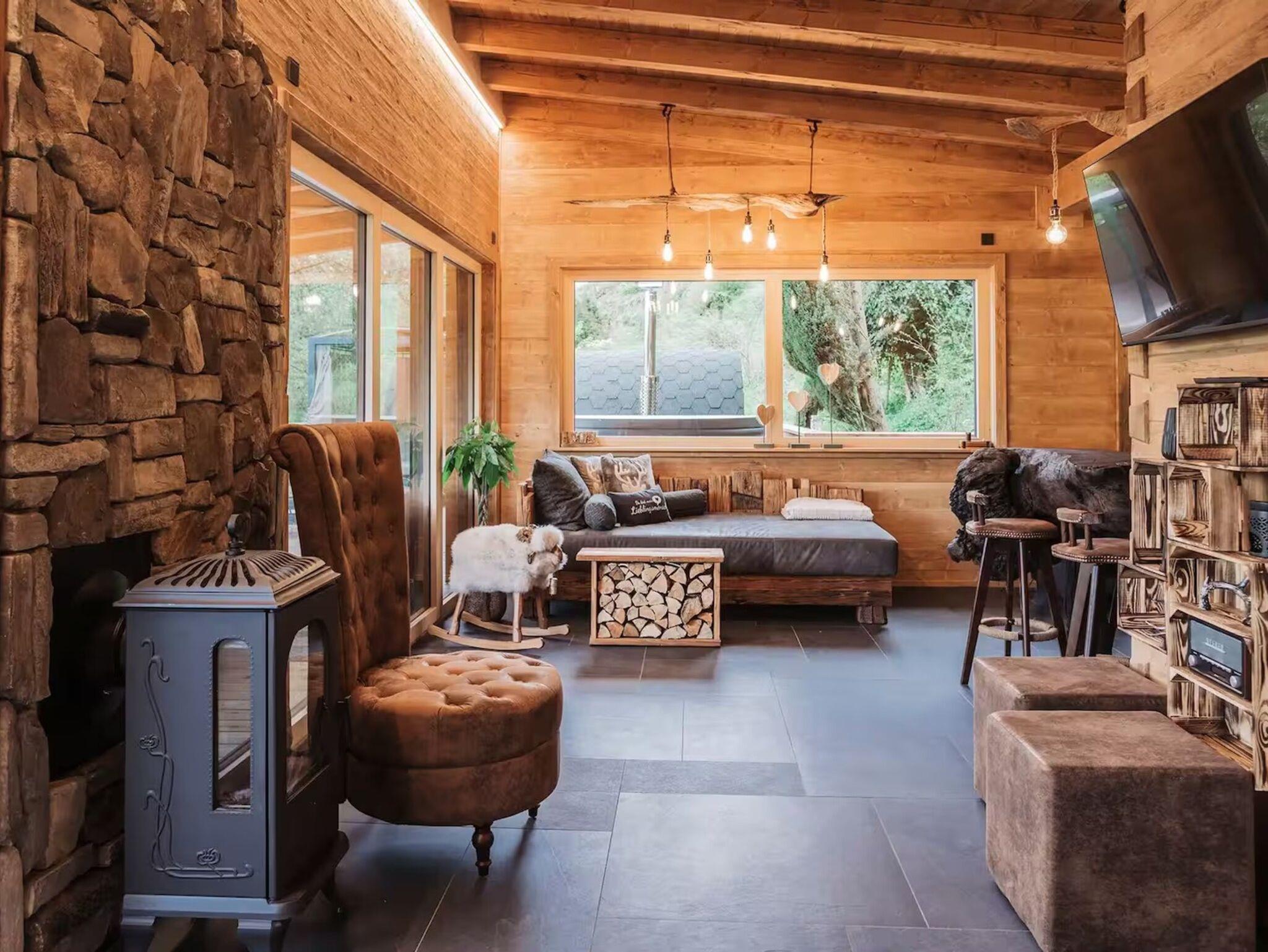 Das Romantikchalet Fuchsbau bietet einen liebevoll gestalteten Rückzugsort aus massivem Holz mit handgefertigten Unikaten und einer warmen, natürlichen Atmosphäre. Die Unterkunft verfügt über ein Schlafzimmer mit Bettwäsche, Extrakissen, Decken, Moskitonetz und Kleideraufbewahrung, ein Badezimmer mit Badewanne, Dusche, Bidet, Föhn, Shampoo, Seife und Warmwasser, sowie eine voll ausgestattete Küche mit Kühlschrank, Minikühlschrank, Gefrierschrank, Herd, Ofen, Geschirrspülmaschine, Mikrowelle, Wasserkocher, Nespresso-Kaffeemaschine, Toaster, Backblech, Töpfen, Pfannen, Geschirr und Besteck. Im Wohnbereich stehen ein 42-Zoll-HD-Fernseher, Soundsystem, Kamin, Heizung, Klimaanlage, tragbare Ventilatoren und WLAN zur Verfügung. Das Chalet bietet außerdem einen privaten Wellnessbereich mit Whirlpool, Sauna und Infrarotkabine, Terrasse mit großer Doppelliege, Gartenmöbel, Essbereich im Freien und Grillmöglichkeiten. Parken ist auf dem Grundstück kostenlos möglich, Haustiere sind erlaubt, eigenständiger Check-in über elektronisches Türschloss ist verfügbar, und Gepäck kann abgestellt werden. Bademäntel, Handtücher, Hausschuhe und Endreinigung sind inklusive. Das Chalet ist auf einer Ebene gebaut, ohne Treppen, und eignet sich ideal für romantische Wochenenden, erholsame Auszeiten zu zweit oder längere Aufenthalte bis zu 28 Tagen.