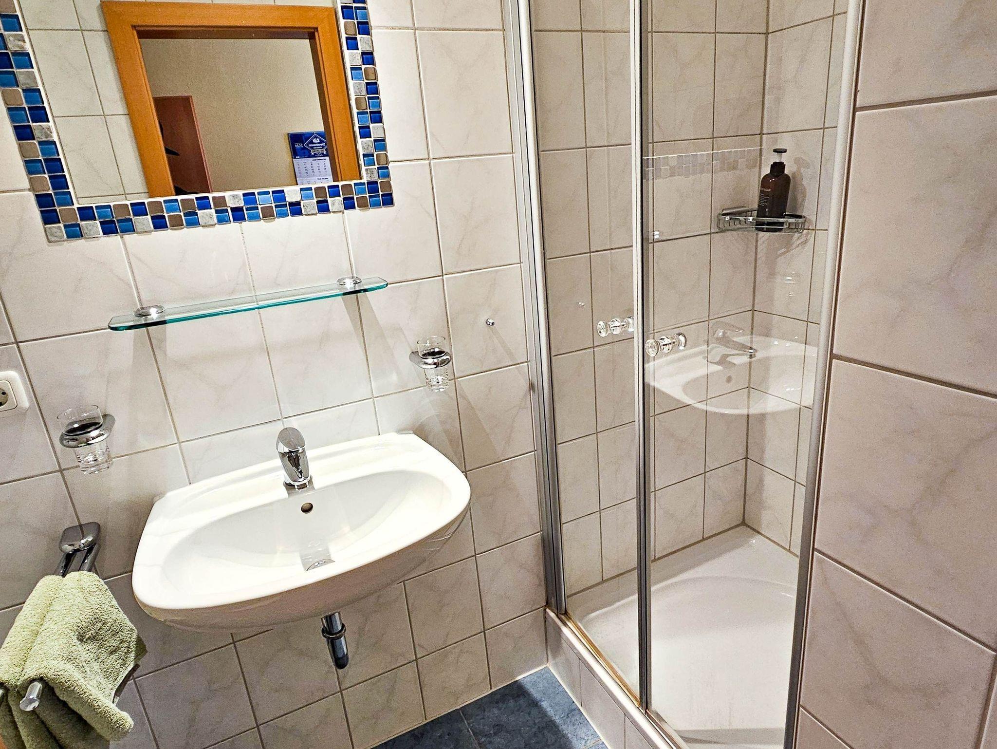 Das gemütliche Dreibettzimmer hat eine Größe von 20 qm. Es ist mit einem Einzelbett und einem Doppelbett ausgestattet. Das Bad mit Dusche und WC lässt keine Wünsche offen. Handtücher und Bettwäsche sind vorhanden. Wir würden uns freuen Sie in unserer Unterkunft begrüßen zu dürfen!