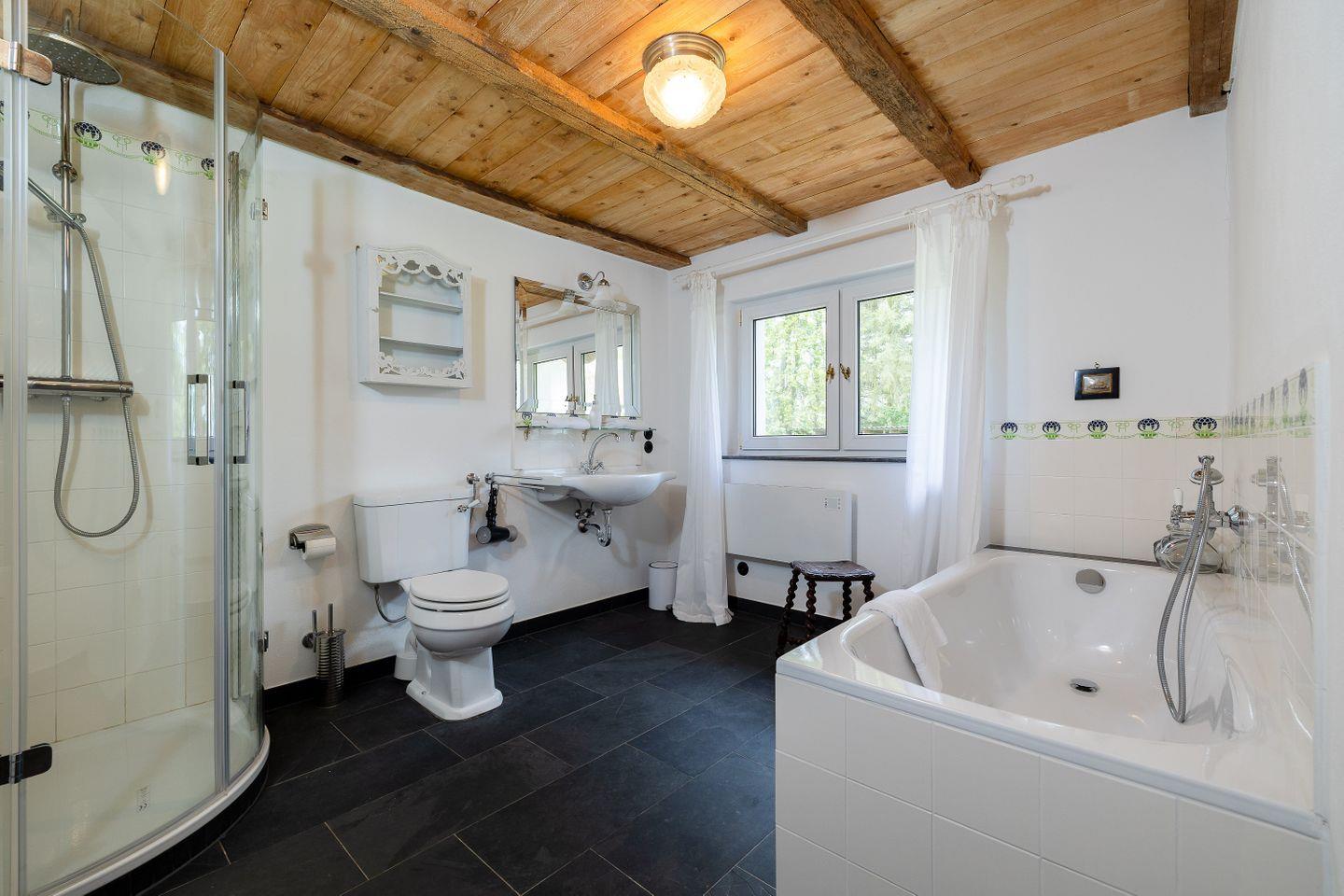 BAD // ein Badezimmer mit Dusche, Badewanne, WC und Waschbecken ++