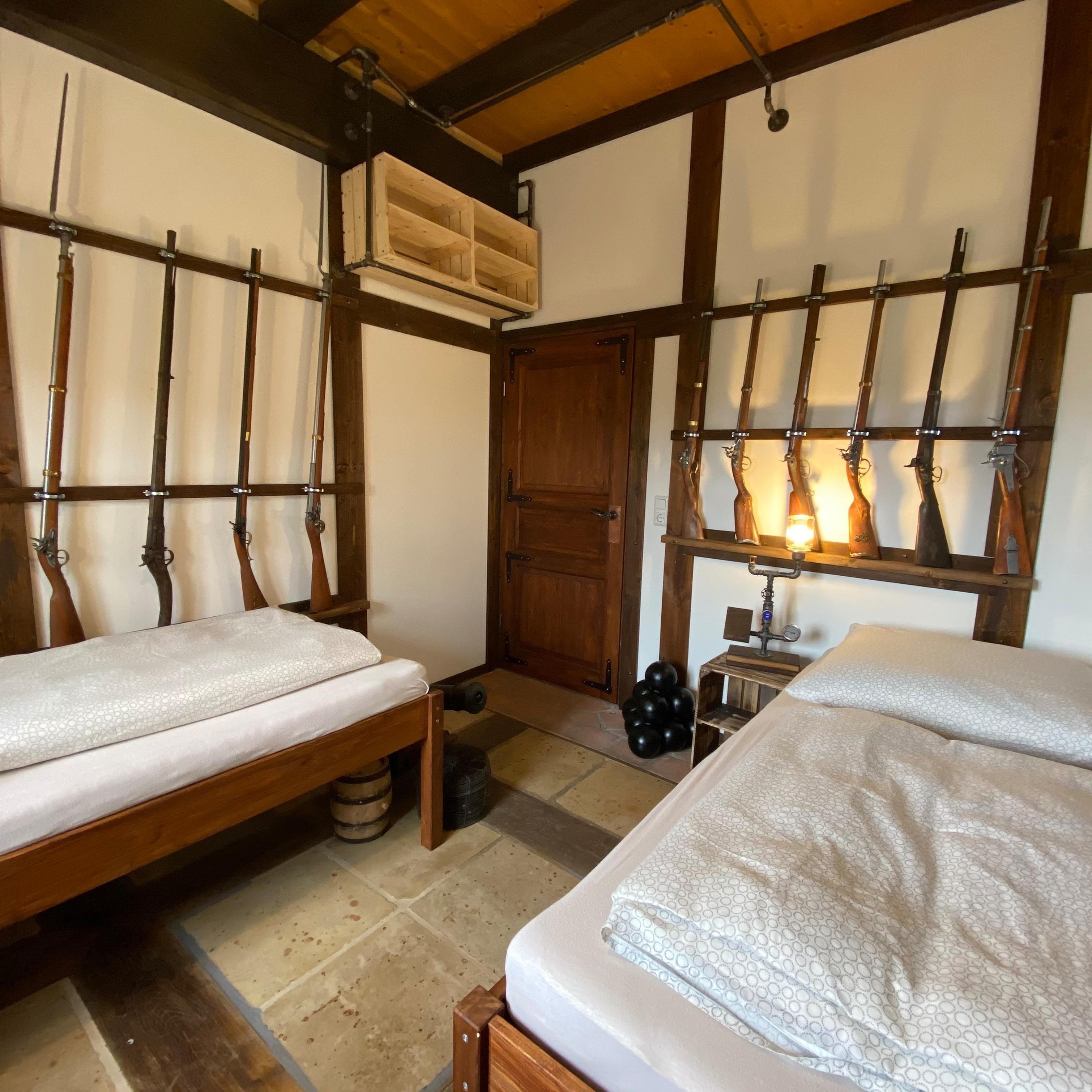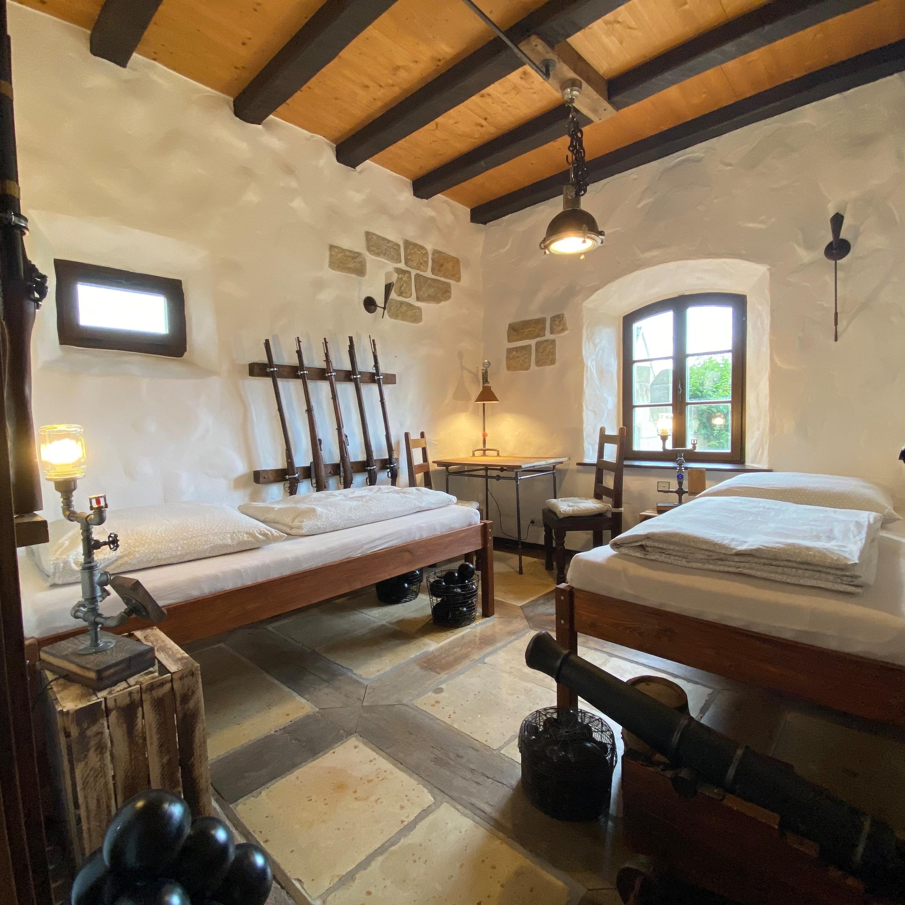 Geniesen sie das einmalige Erlebnis die Nächte wohlbehütet in einer Waffenkammer zu verbringen.