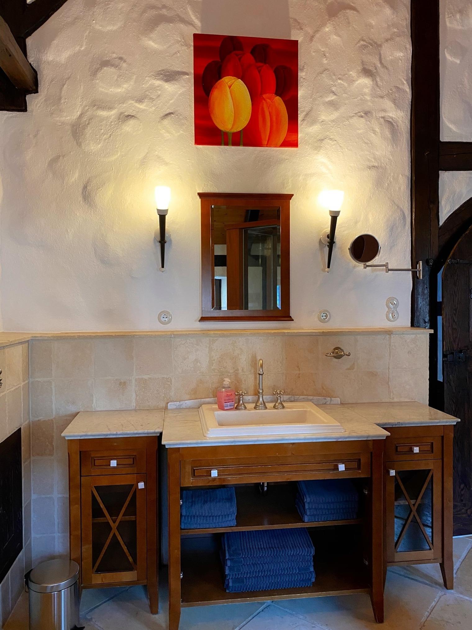 Direkt am Dorfteich gelegenes Rittergut im mediterranem Stil neu erbaut. Das familienfreundliche Ferienhaus Waffenkammer besitzt ca. 120 m² und ist ausgestattet mit Bad, Flur, Küche, Esszimmer, Schlafzimmern mit einem indischen 2 m Doppelbett und zwei schlafräumen inkl. 5 Betten (1 x Etagenbett).
