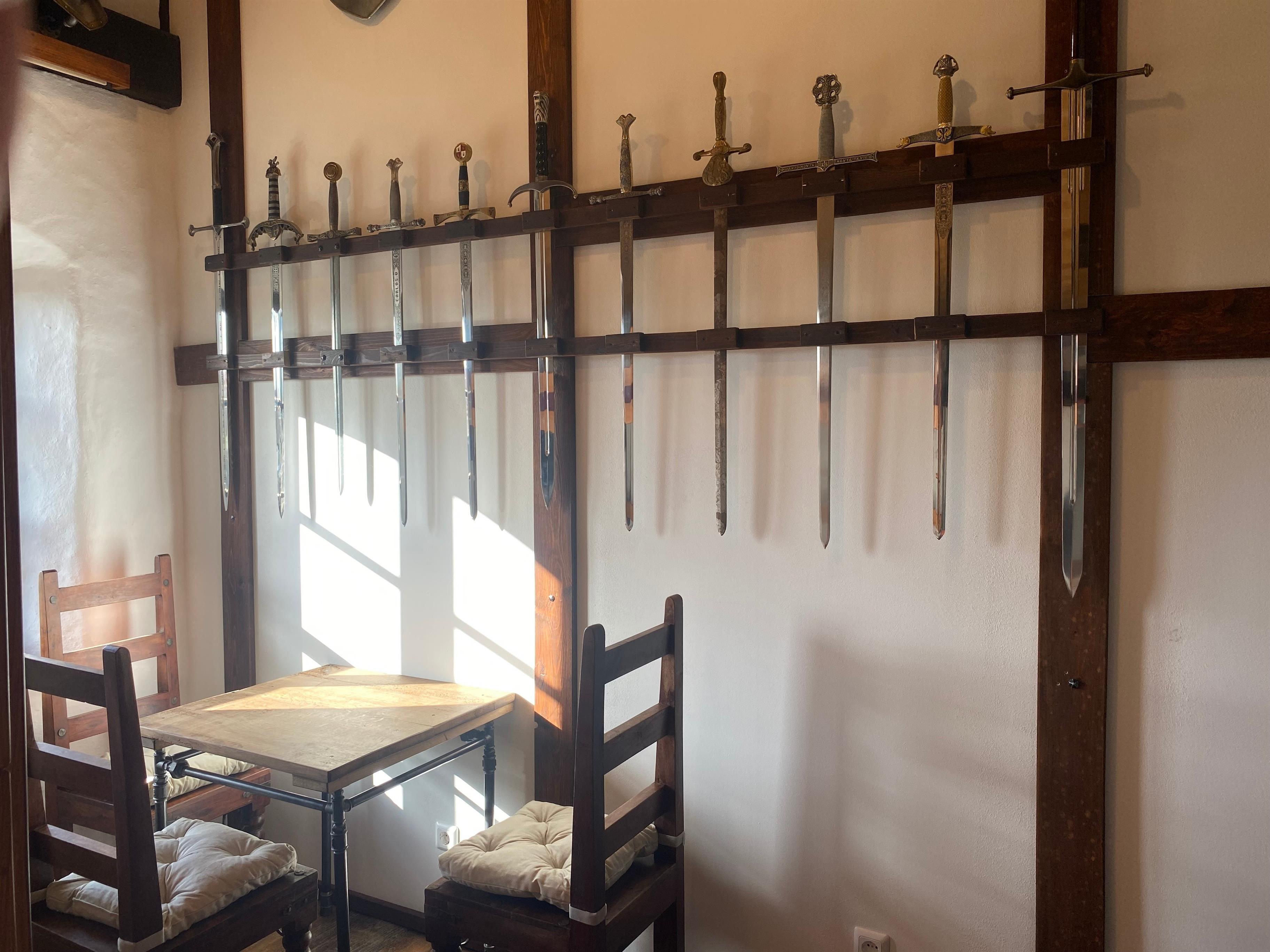 Unsere letzten Wachkommandanten hatten einen Faible für Waffen aller Art. Auch wenn ein Ritter natürlich nicht ohne sein Schwert aus dem Hause geht, gilt sein Interesse manchmal auch moderneren, unritterlichen Waffen wie Gewehren, Kanonen, Armbrüsten und Pistolen. Gut aufbewahrt in der Waffenkammer ist das ein imposanter Anblick. Vor allem wenn wertvolle Stücke mit historischer Bedeutung darunter sind.
