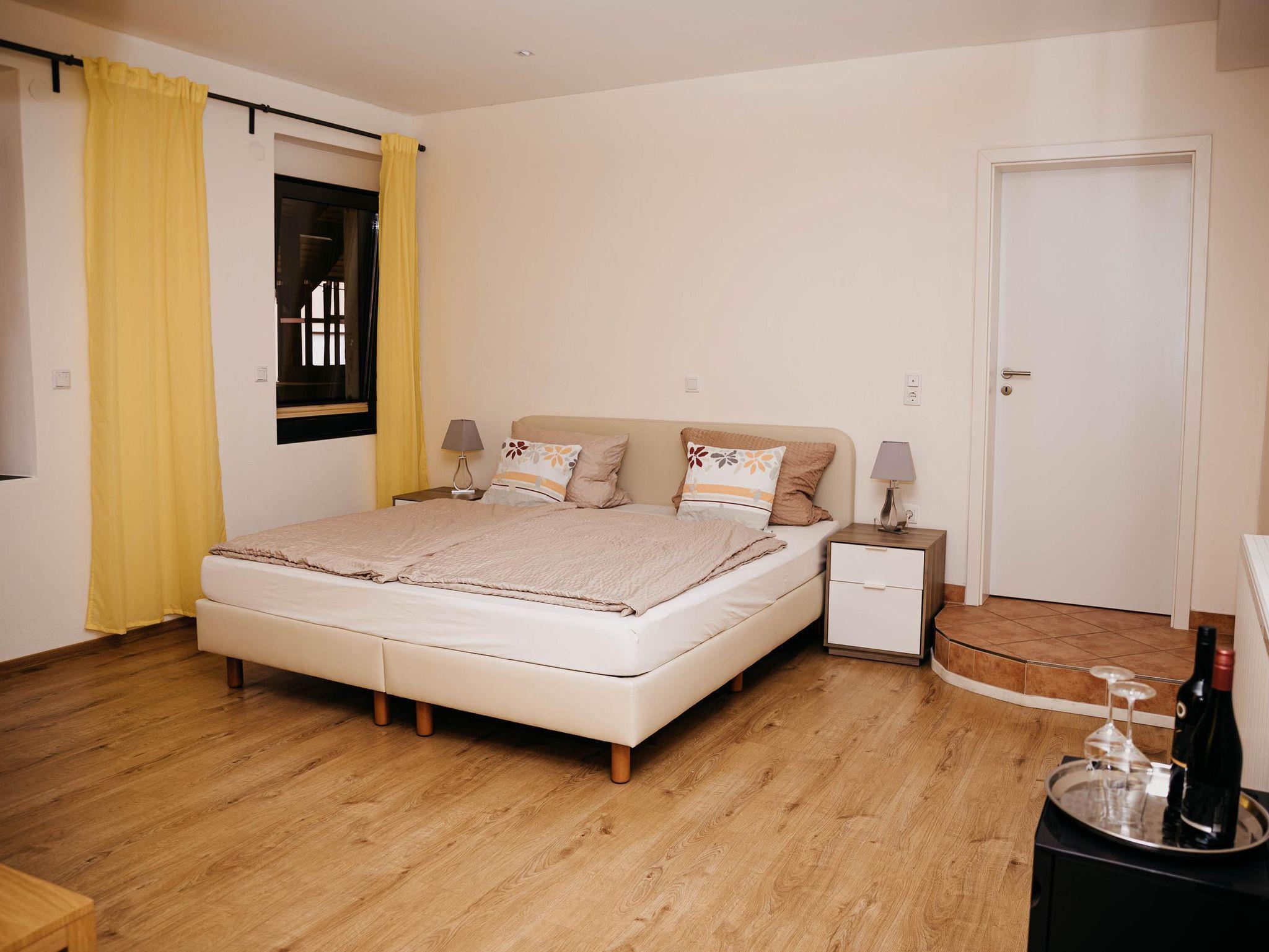 Die Zimmer sind mit allem ausgestattet, was zu einem wohlfühlen in der Pfalz gehört, natürlich ist in jedem Zimmer eine mini-Bar mit einem guten, leckeren Manz-Wein.