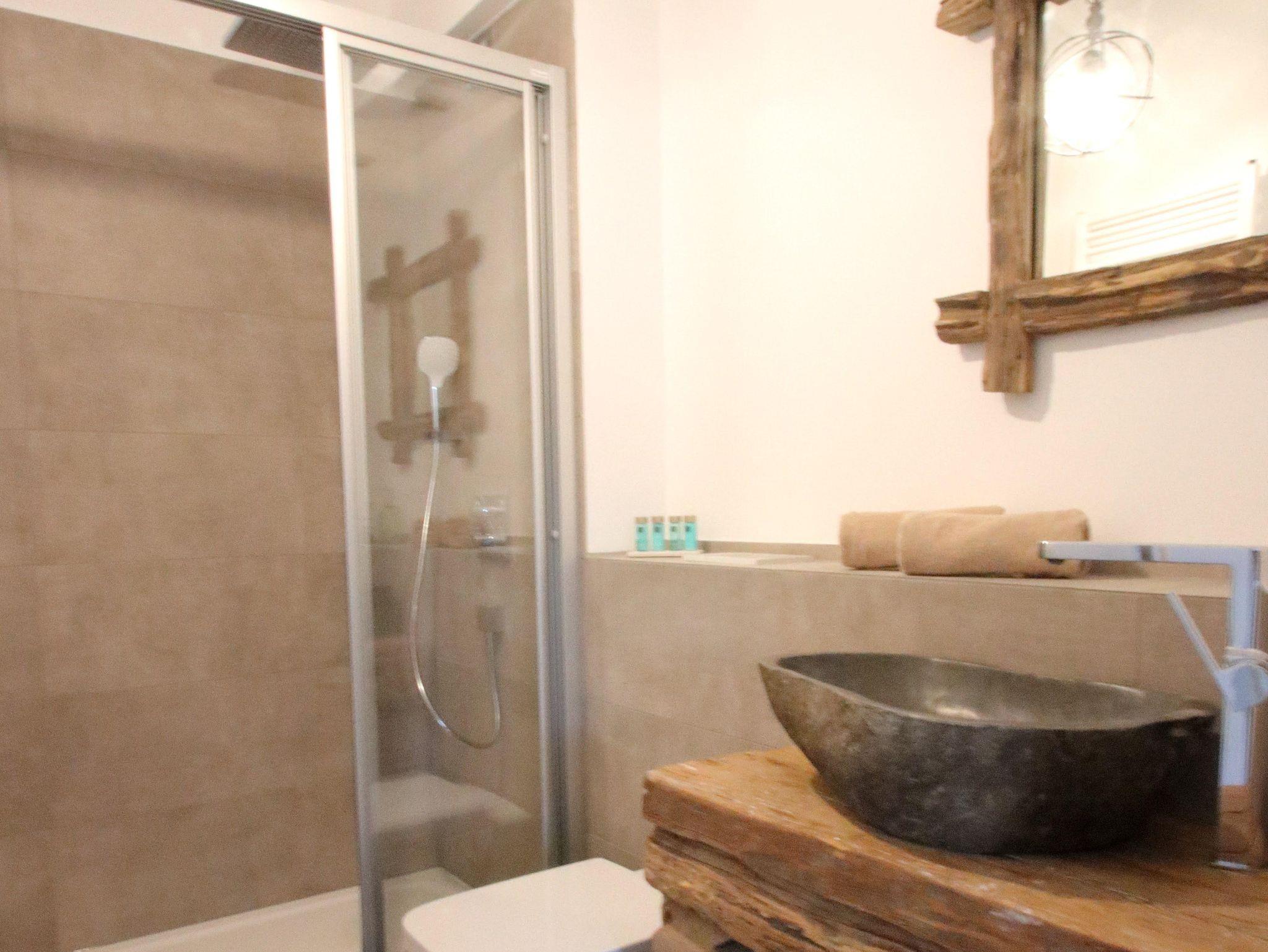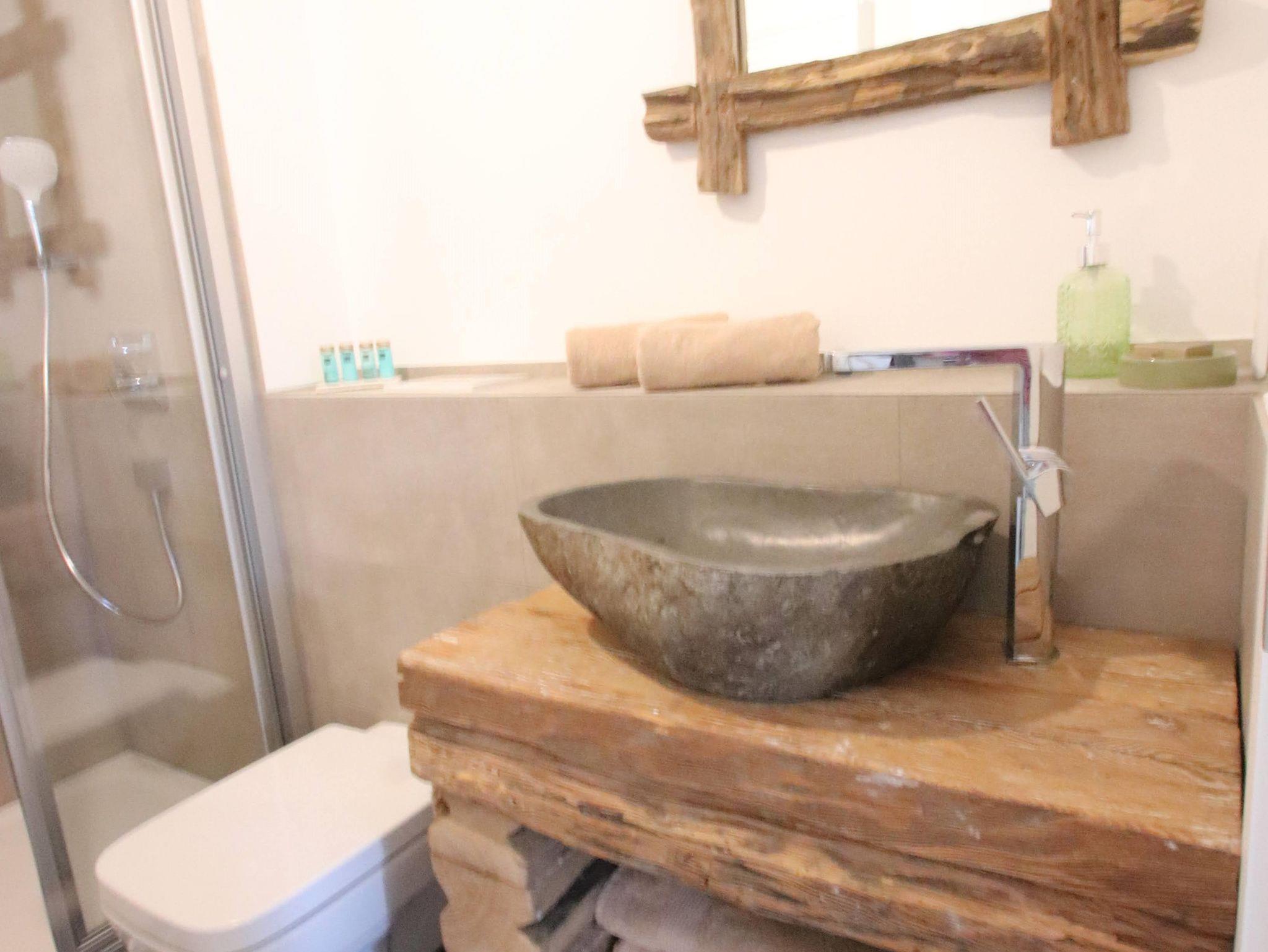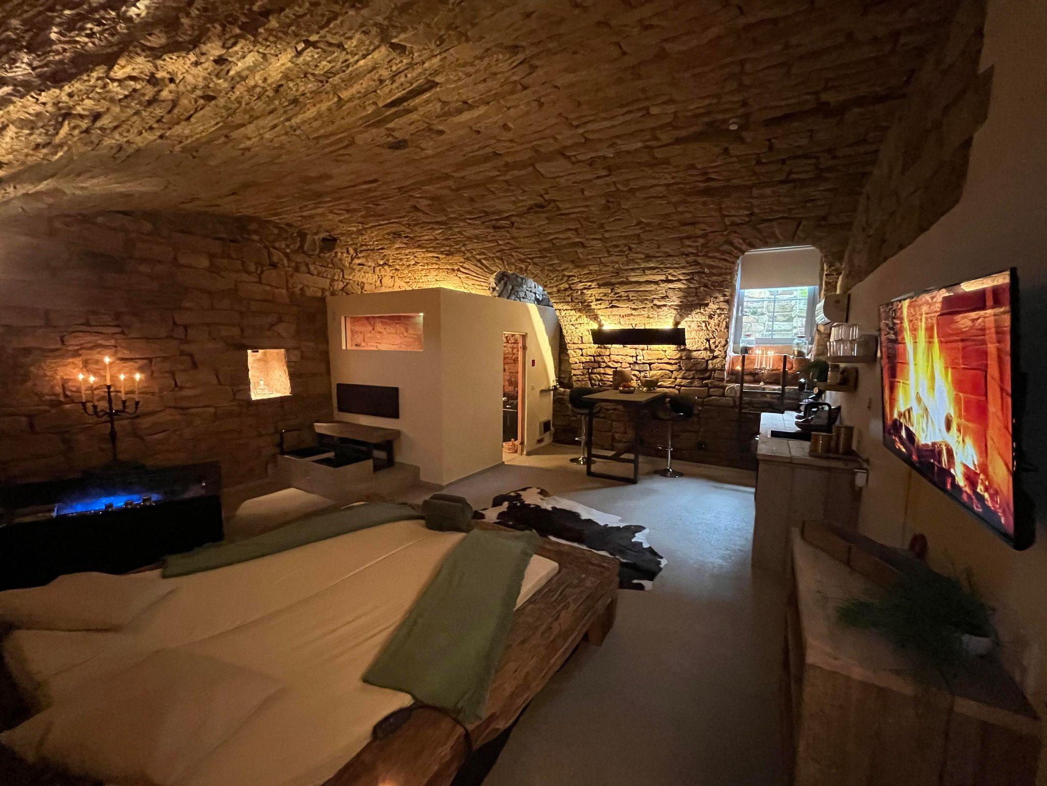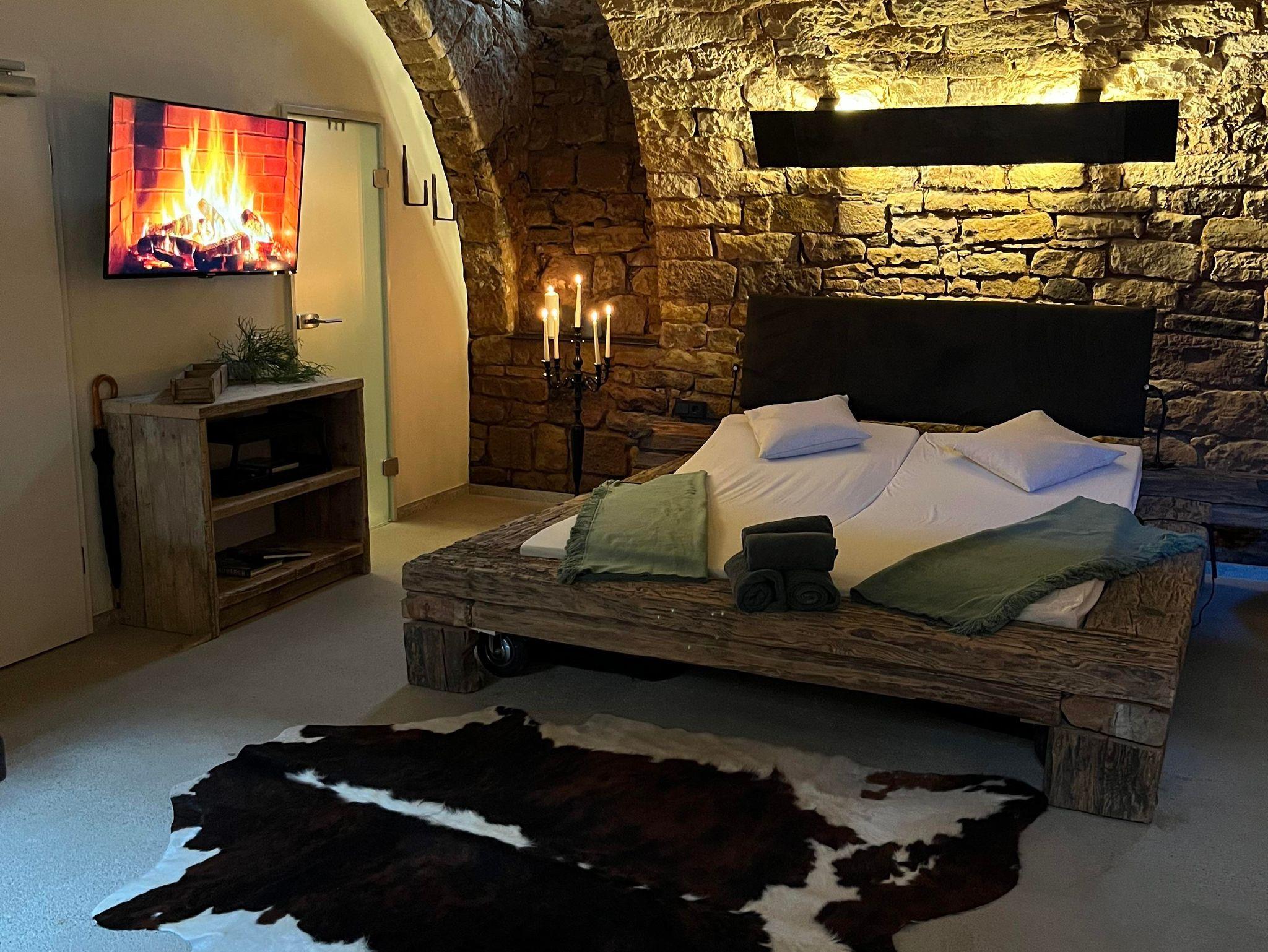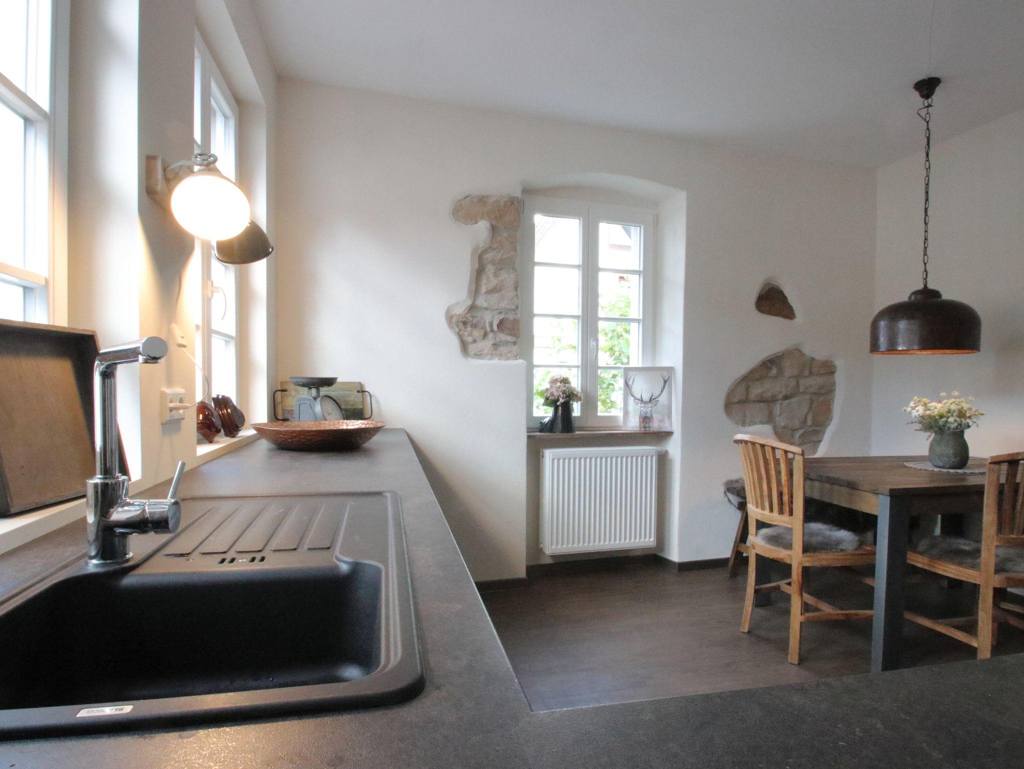 Unsere „Almhütte“ im 1. Obergeschoss, ausgestattet mit Naturmöbeln lädt zum Verweilen ein. Auf 43 qm erwartet Sie eine offene Küche mit Essbereich, ein Badezimmer mit Natursteinwaschbecken, ein Schlafzimmer mit einem großen Boxspringbett und ein Wohnzimmer mit komfortablem Schlafsofa. Innenhof lädt mit einer Sitzgelegenheit zum gemütlichen Beisammensein ein. Außerdem befindet sich dort ein PKW Stellplatz sowie die Möglichkeit Fahrräder unterzustellen. Im Keller steht eine Waschmaschine sowie ein Trockner zur gemeinschaftlichen Nutzung zur Verfügung. Handtücher, Bettwäsche und Endreinigung sind im Preis inklusive.