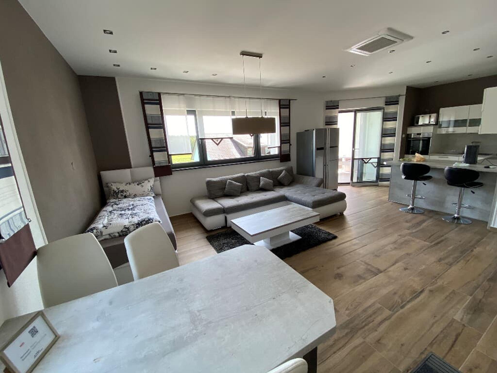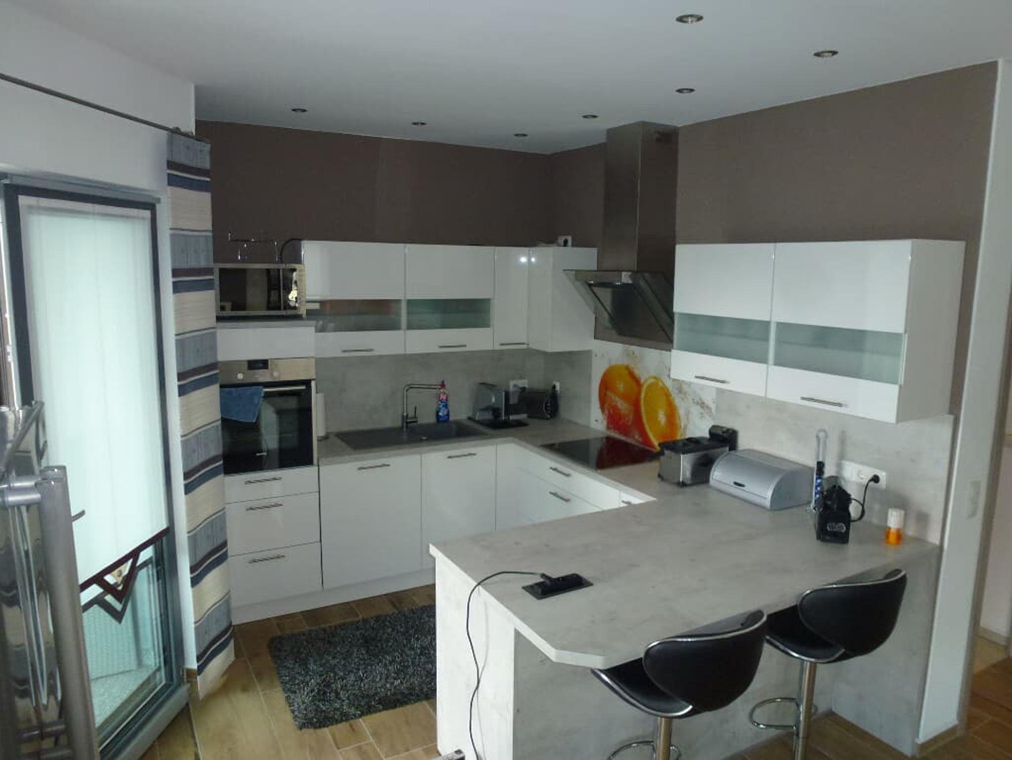 Das Ferienappartement ist hochwertig und modern eingerichtet. Mit einer Größe von 65 qm ist die Wohnung für bis zu 4 Personen geeignet. Es besitzt 1 Schlafraum mit Doppelbett sowie ein Bett und ein Schlafsofa im Wohnaufenthaltsraum. Die Küche ist komplett ausgestattet (Kaffeemaschine, Wasserkocher, Toaster, Herd, Backofen, Geschirrspüler, Kühlschrank, Gefrierfach, Geschirr, Besteck, sonstige Küchenutensilien). Der Wohnbereich ist mit einem Esstisch, einem Sofa und einem SAT-TV ausgestattet.