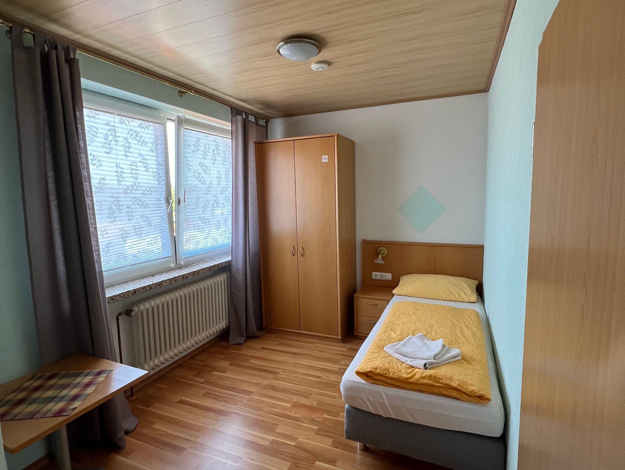 Das helle, freundliche Durchgangszimmer mit zusammen 18 qm verfügt über ein Schlafzimmer durch das ein weiteres Schlafzimmer erreichbar ist. Beide Zimmer verfügen über ein Einzel Boxspringbett und einen eigenen Flachbildfernseher sowie WLAN. Das Badezimmer befindet sich im Anschluss an eines der Zimmer und verfügt über Dusche und WC. Handtücher und Bettwäsche stehen zur Verfügung.