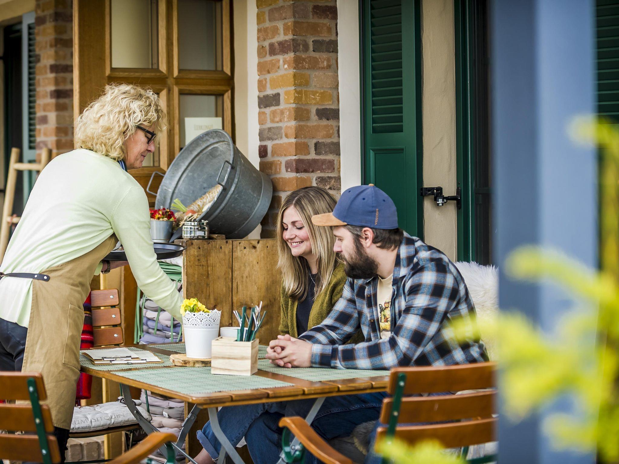 Lassen Sie sich in unserem Hofcafé und Hofladen mit hausgemachten Köstlichkeiten verwöhnen. In unserem Restaurantbetrieb im Hofcafé bietet unser Team Ihnen frische, saisonale Küche mit unserem hofeigenen Fleisch, hofgebackenen Kuchen und Torten sowie eine umfangreiche Getränkeauswahl mit Kaffeespezialitäten, hofgemachten Limonaden, frisch gezapftem Bier sowie Weinen ausgesuchter Winzer. Ab April können Sie unseren sonnigen Biergarten nutzen. Unsere Küche ist durchgehend geöffnet. Hofcafé geöffnet Freitag, Samstag, Sonntag und an Feiertagen.