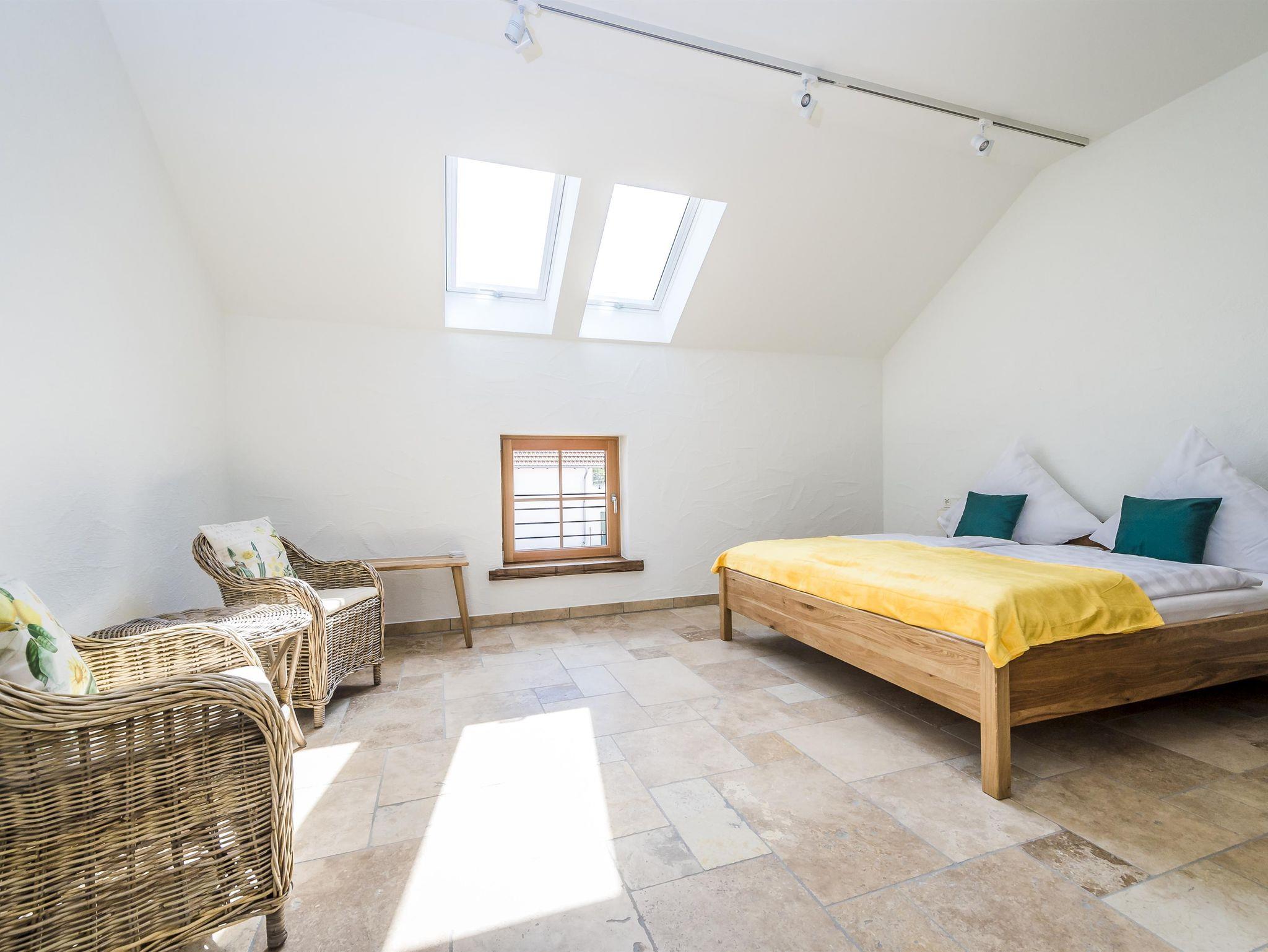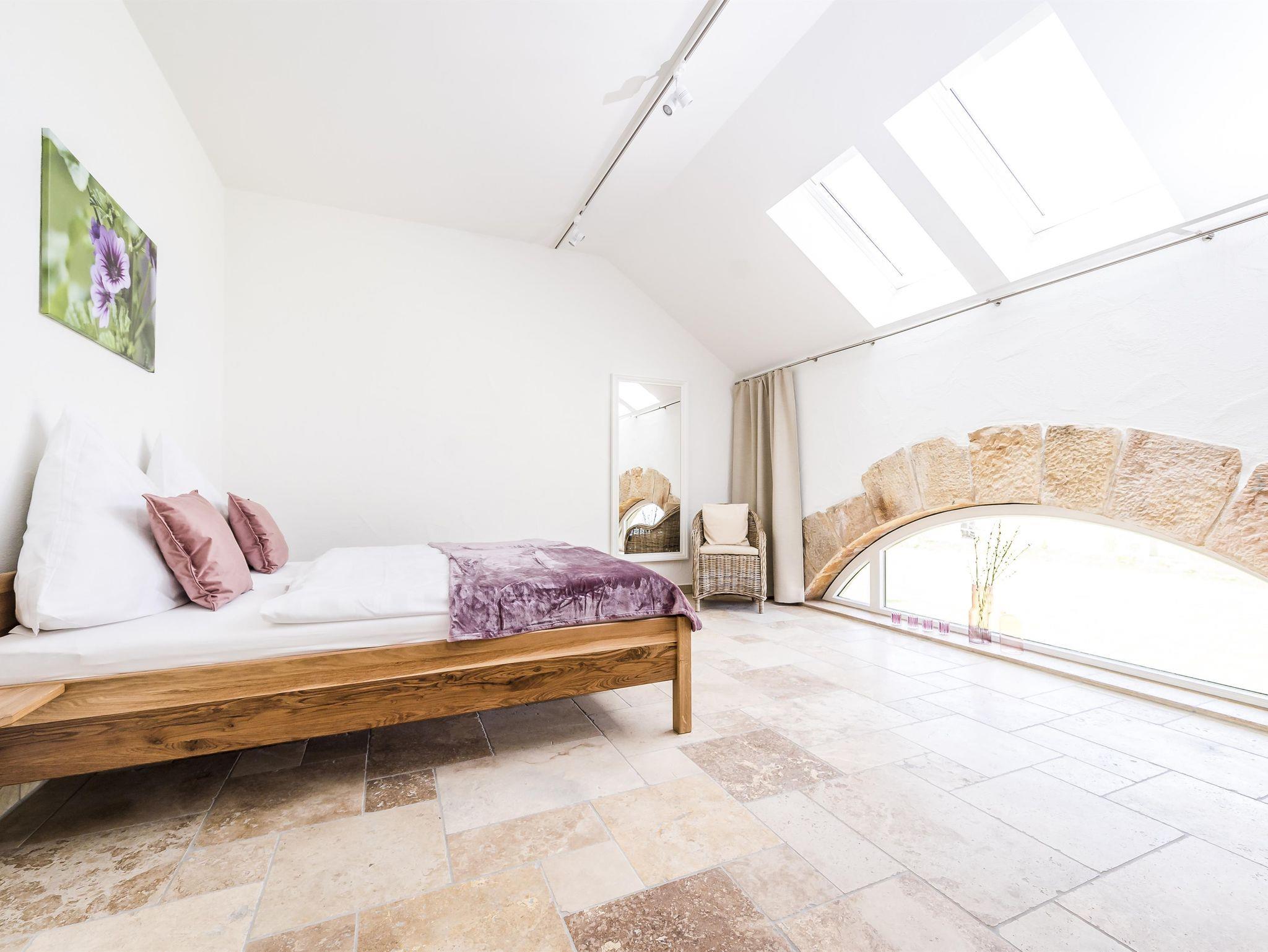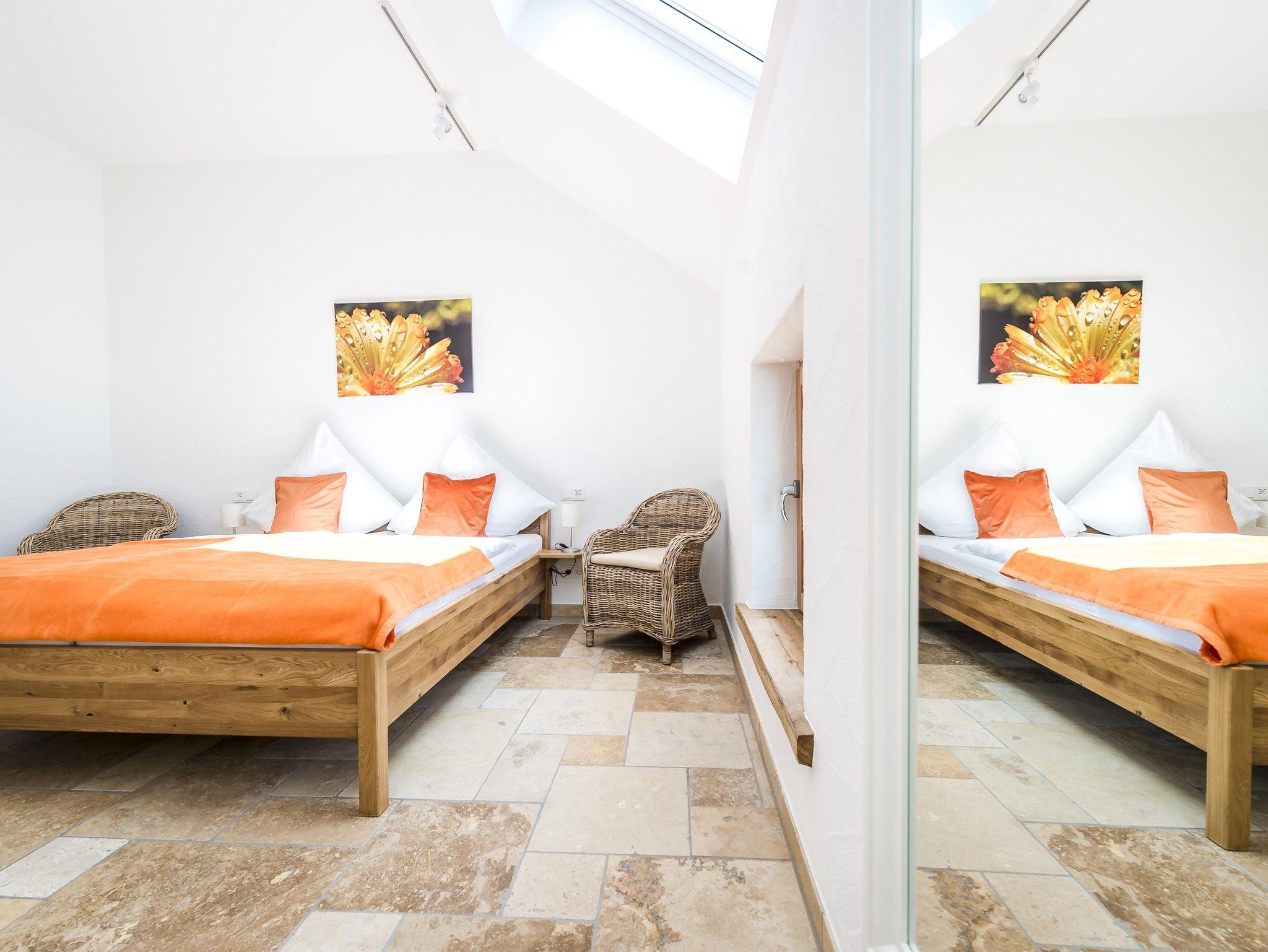 Wir bieten Ihnen sechs helle und großzügige Hotelzimmer, mit hochwertigen Travertin-Natursteinböden sowie modernen Bädern ausgestattet. Sie sind liebevoll mit Liebe zum Detail eingerichtet und soweit möglich sind alte bauliche Details wie Fensterbänke aus altem Eichengebälk erhalten worden. Alternativ können Sie sich auch in unseren vier Ferienwohnungen eine Auszeit nehmen.
