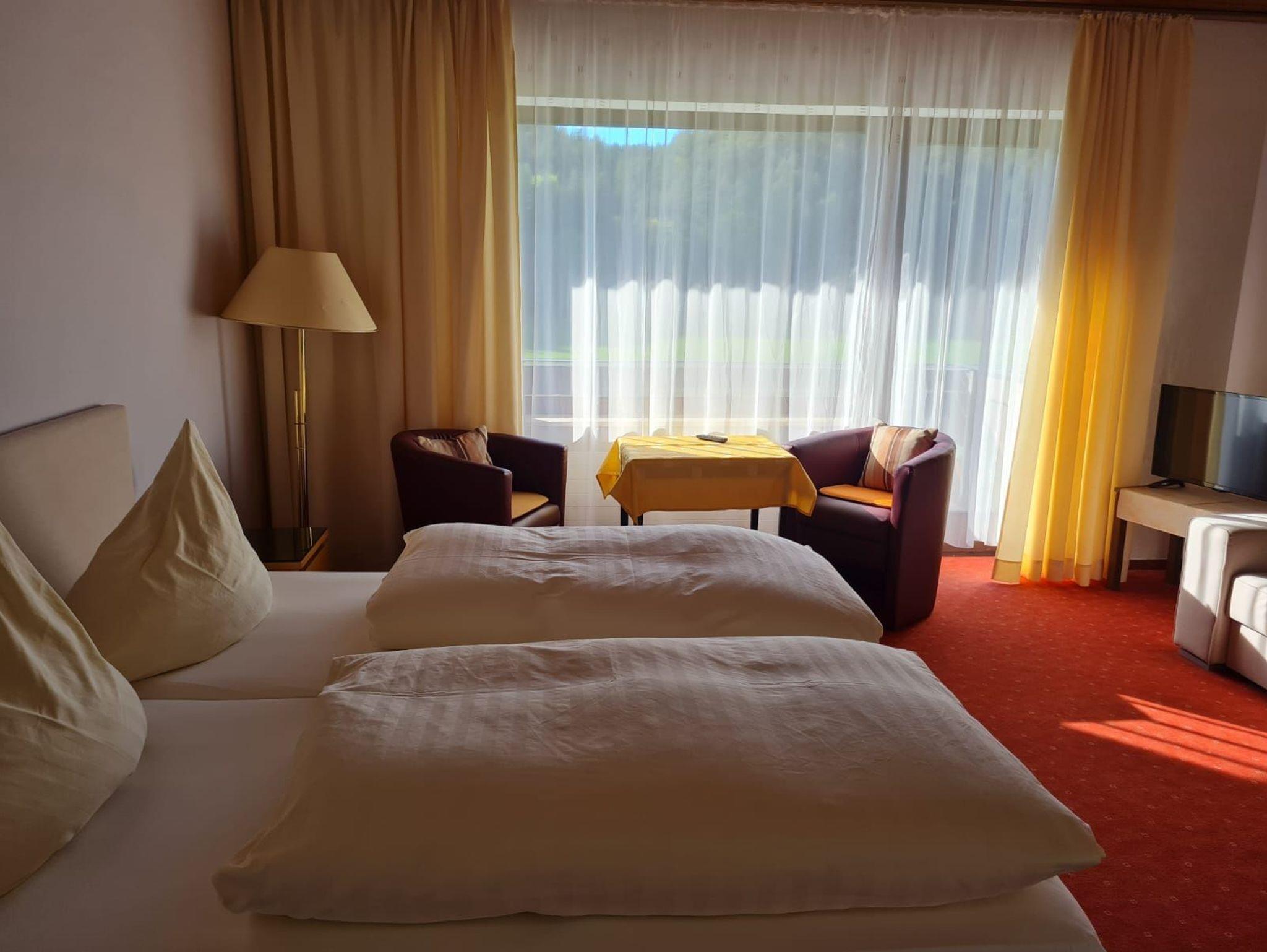 Alle Doppelzimmer sind hell und ruhig. Die Zimmer sind von unterschiedlicher Ausstattung (z.B. Sitzgruppe) und Größe, jedoch alle sehr großzügig geschnitten, äußerst bequem, gemütlich und modern eingerichtet. Alle Zimmer verfügen über DU/WC, Balkon und TV und WLAN. Ein Haartrocker kann kostenlos ausgeliehen werden. Die Doppelzimmer verteilen sich über die Stockwerke 1 bis 3 und können auch als Einzelzimmer gebucht werden. Ein Kinderbett (bis 2 Jahre) kann zusätzlich kostenlos hinzugebucht werden.