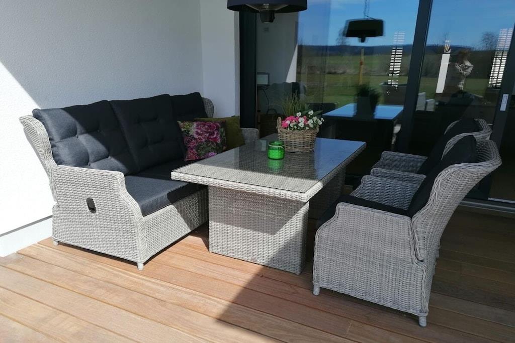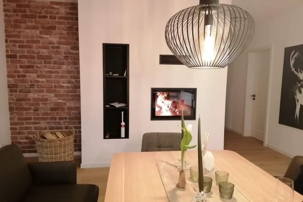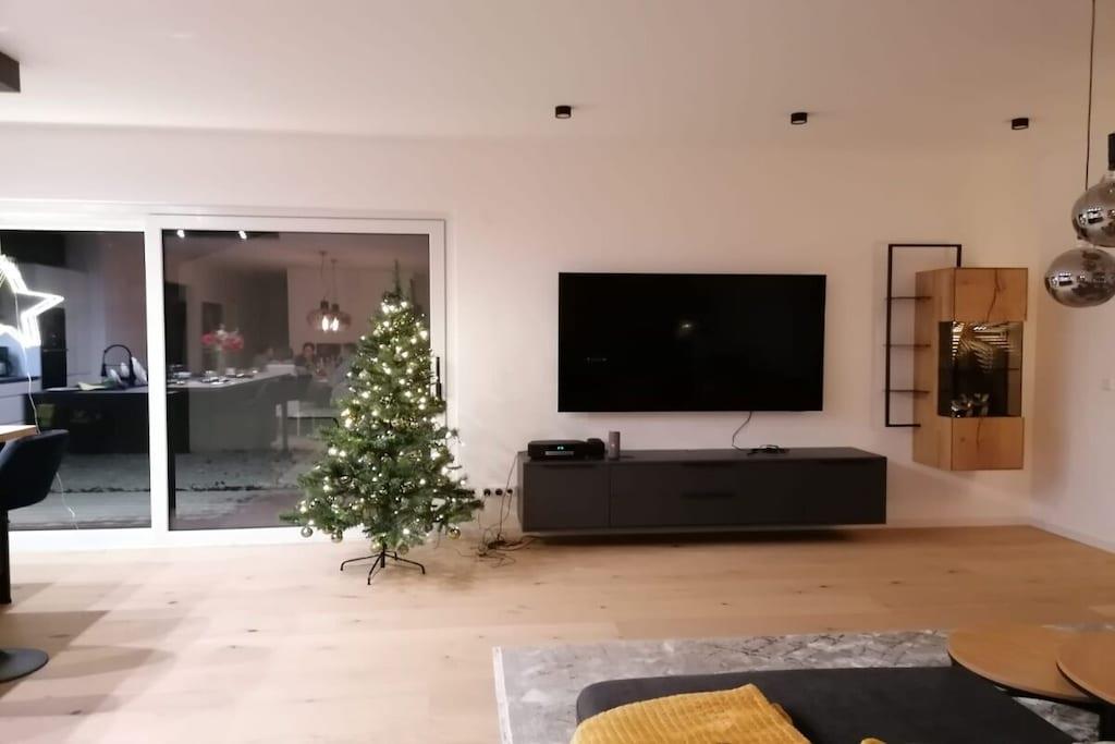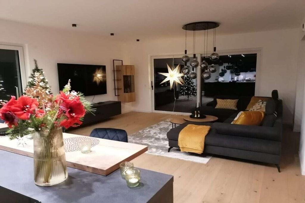 New Opening Offer - Waldi Fichteltraum With a living area of 165m², our luxury holiday home offers plenty of space for families, friends, or couples who appreciate peace and comfort. The open-plan living and dining area with integrated designer kitchen extends over an impressive 75m² – a place to cook, enjoy meals, and relax. The large seating area with an XL flat-screen TV and a wood-burning stove invites you to cozy evenings. Two bedrooms, two bathrooms, a double garage, two bicycles, and one e-bike offer maximum comfort for four people.