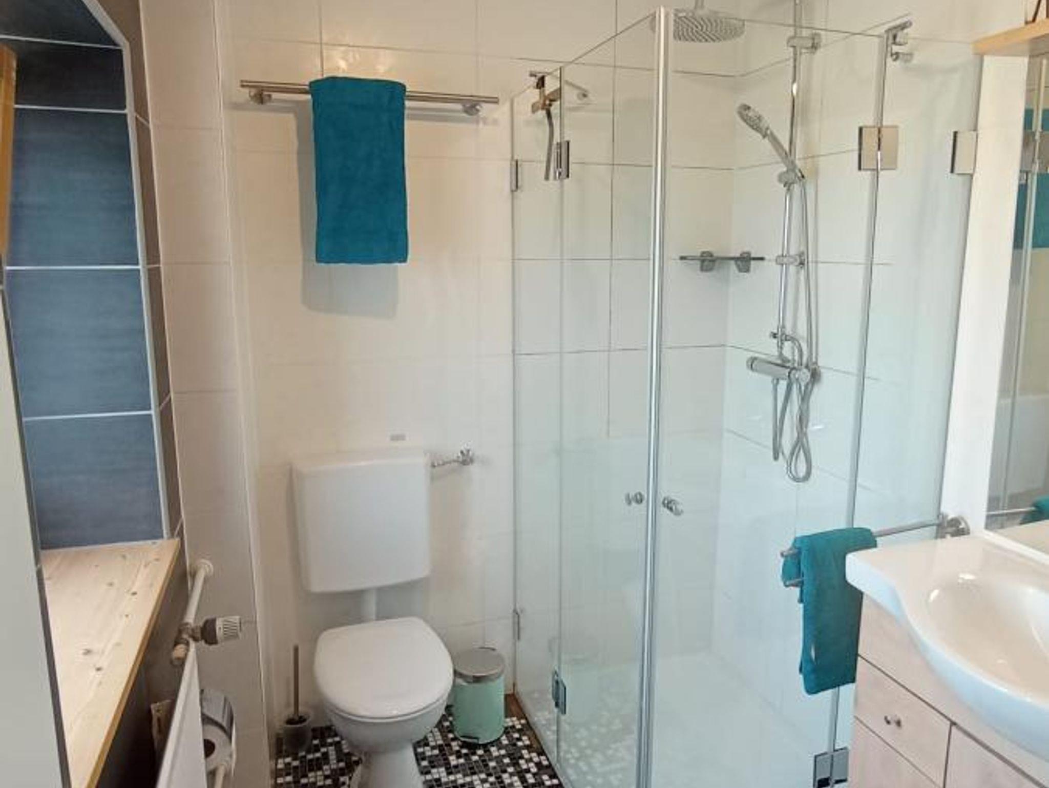 Das komplett neu eingerichtete und renovierte Appartment besteht aus einem Schlafraum mit einem 1,80 breiten Doppelbett mit durchgängiger Matratze, einem Schrank, einem Schreibtisch und einem Sessel. Zudem hat der Schlafraum noch einen Holzofen für eine angenehme Wärme an kalten Tagen. In der Wohnküche, mit komplett ausgestatteter Küche (mittelgroßes Gefrierfach, Mikrowelle, Kaffeemaschine, Wasserkocher, Backrohr, Geschirrspülmaschine, Geschirr, ect.) sollte an alles gedacht sein für das leibliche Wohl. Auch eine Waschmaschine steht für eine geringe Gebühr von 3€ pro Nutzung zur Verfügung.