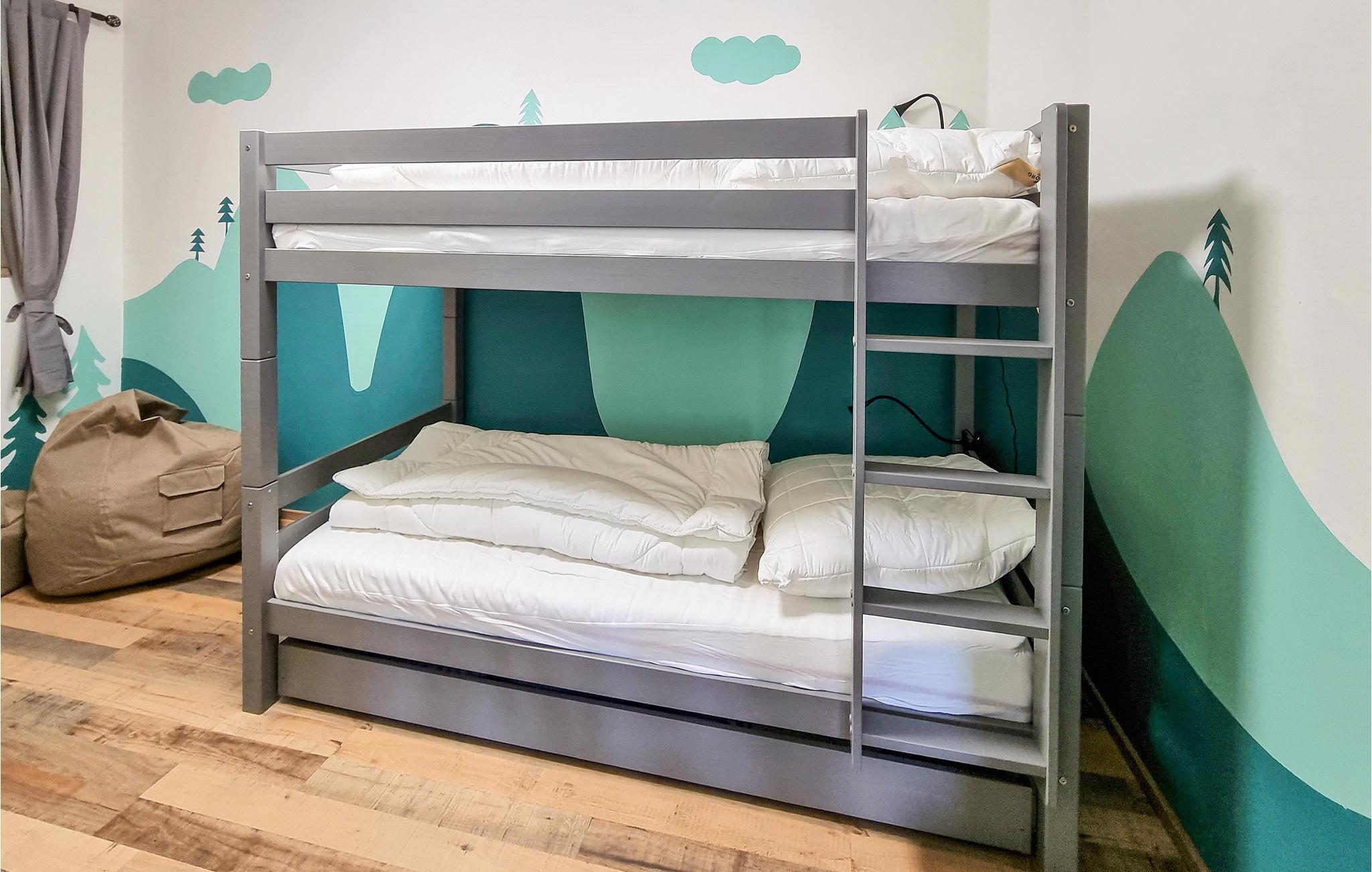 Schlafzimmer 11m2 (nr. 2) - 2 Schlafmöglichkeiten. (Etagenbett). 1 Schlafmöglichkeit. (Schlafsofa,Matratze,Sonstiges).