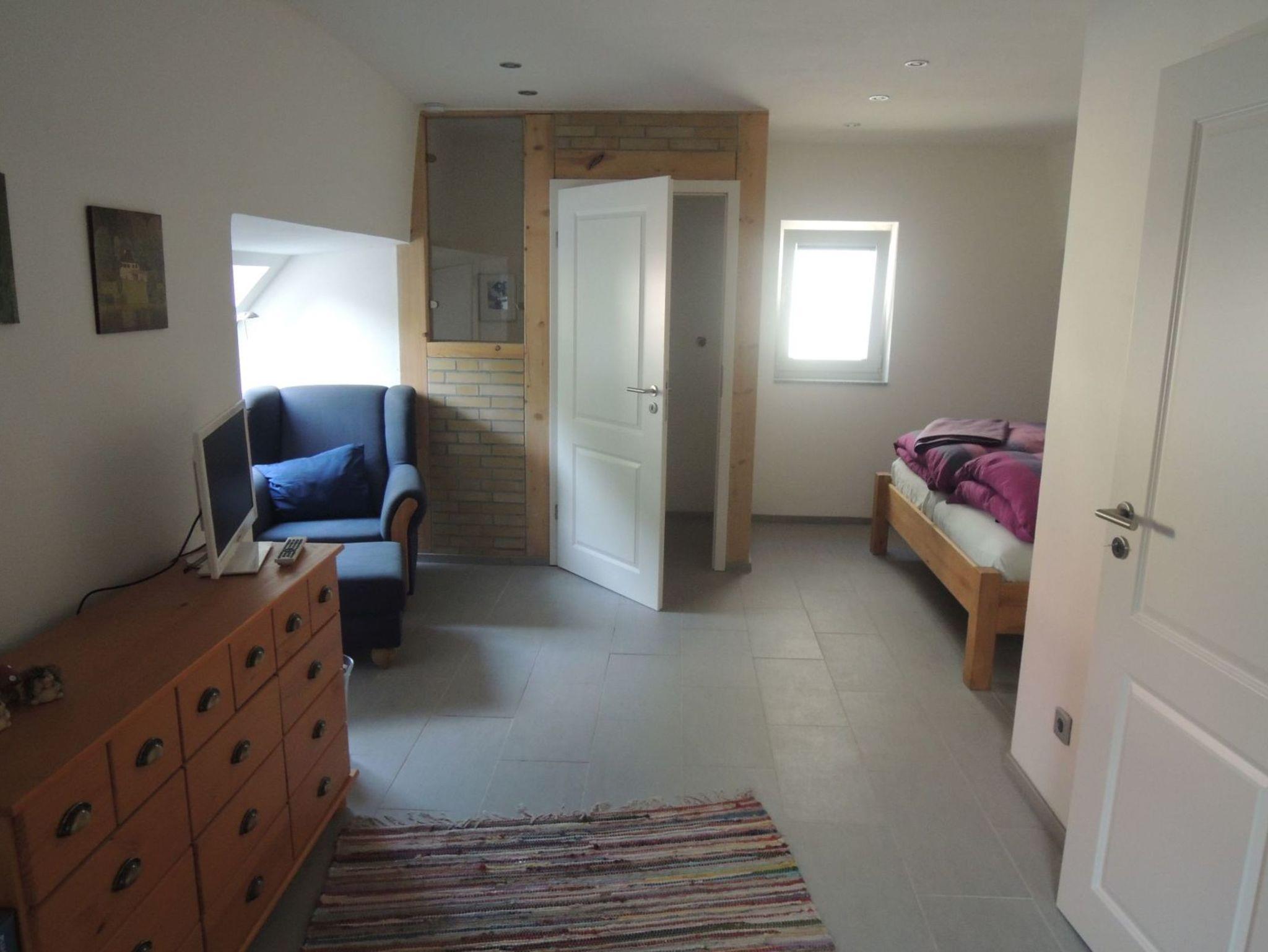 Das Ferienhaus Zur Eule besitzt ein Wohnzimmer mit gemütlichen Kaminofen (Erstausstattung 1 Korb Feuerholz inklusive), ein Schlafzimmer mit Doppelbett und einem begehbaren Kleiderschrank. Im Untergeschoss befindet sich das Bad mit zwei Waschbecken und ebenerdiger Dusche, im Obergeschoss gibt es ein zusätzliches WC. Bademäntel stehen auf Wunsch kostenfrei zur Verfügung.