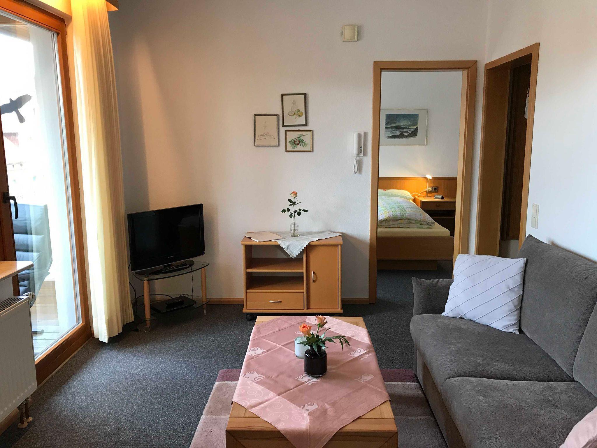 Die Räume sind mit Möbeln gehobener Qualität eingerichtet. Gardinen, Teppiche u. Bezugsstoffe wurden farblich aufeinander abgestimmt. Selbstverständlich gehören zur Ausstattung ein Radio mit CD-Spieler und das Farbfernsehgerät mit Satellitenempfang.