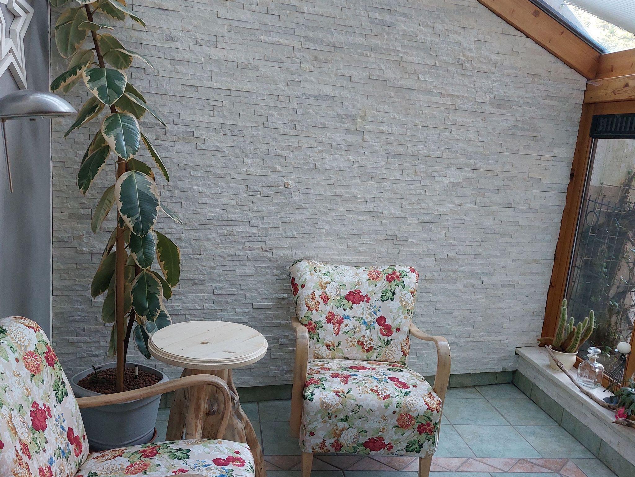 Die 100 qm große Ferienwohnung verfügt über einen geräumigen Wohn- und Essbereich mit Kamin, eine offene Küche, 2 Schlafzimmer, Bad und einen Wintergarten. Zum Haus gehören außerdem ein gepflegter Garten und überdachte Parkplätze.
