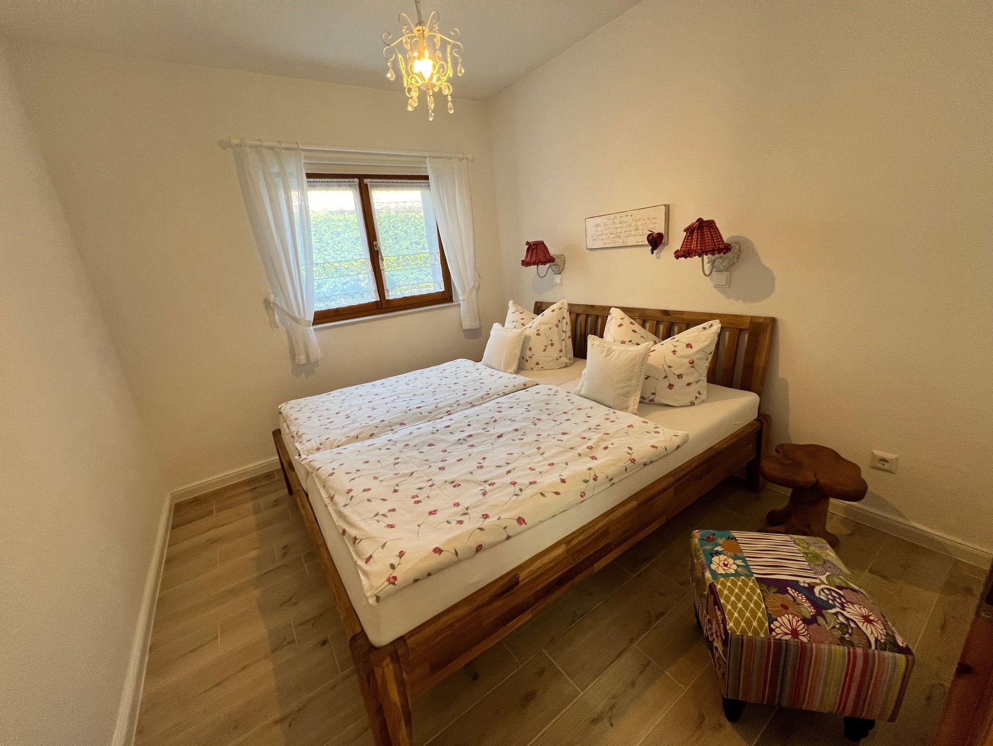 Appartement 2, Blockhaus, ca. 60 m², Parterre, für 2 Personen, sehr komfortabel, liebevoll und individuell eingerichtet. 1 Wohnzimmer, 1 Schlafzimmer, KÜ, DU/WC (Fön), Freisitz, Microwelle, Kabel-TV, Video-Rekorder, Musikanlage, inkl. Bettwäsche, Tischwäsche (Handtücher bitten wir mitzubringen), zuzüglich Endreinigung und Kurtaxe.