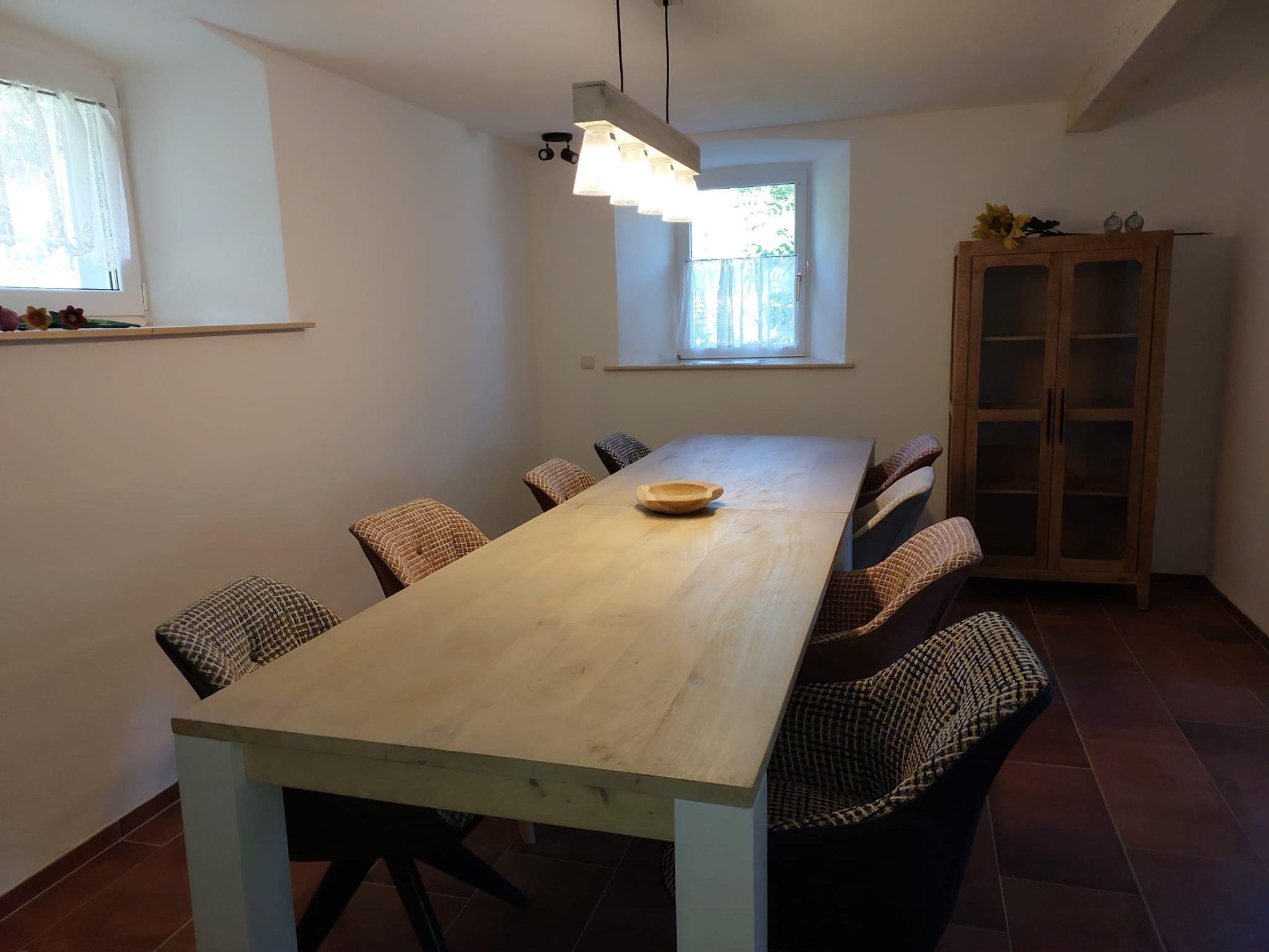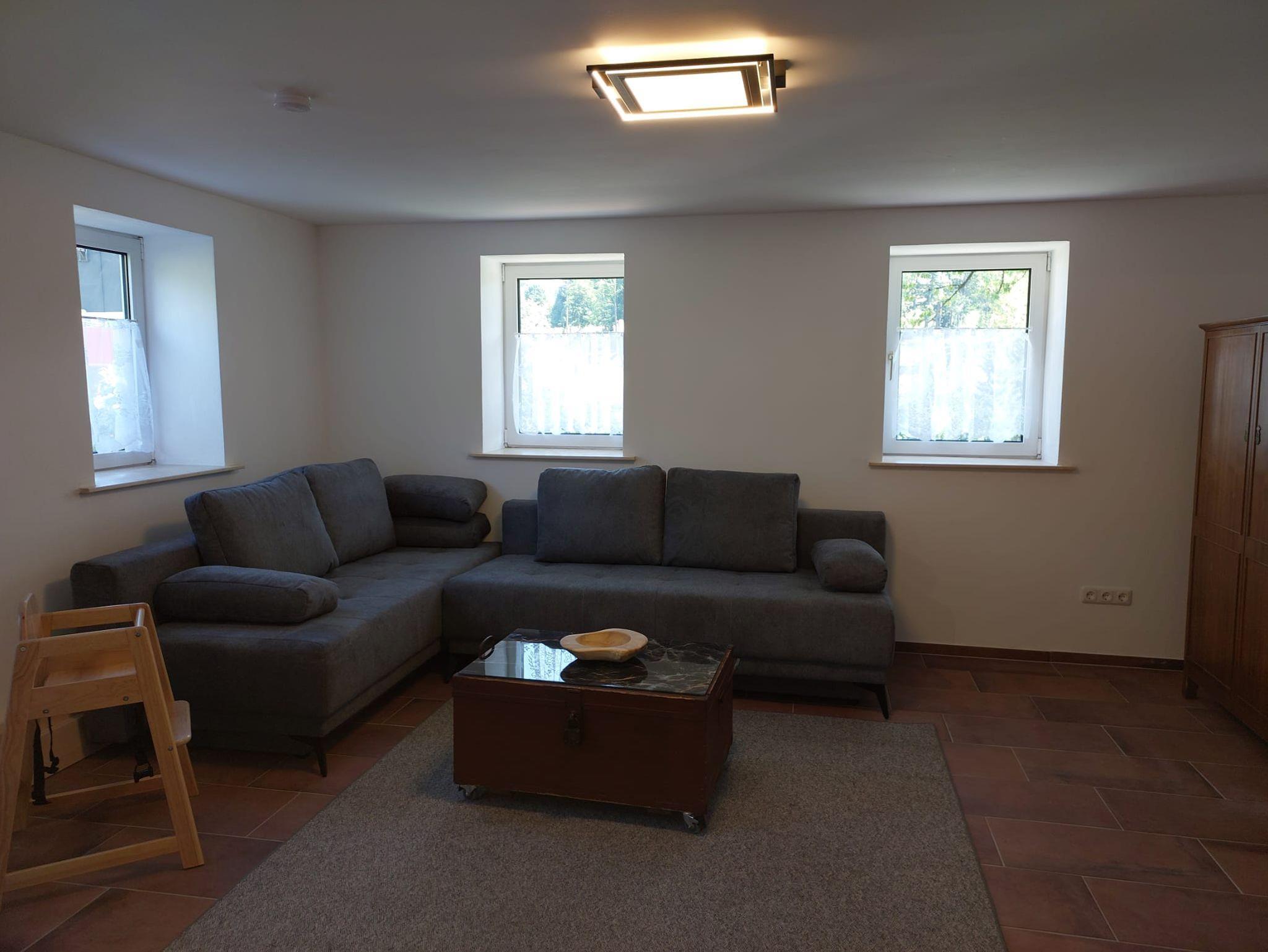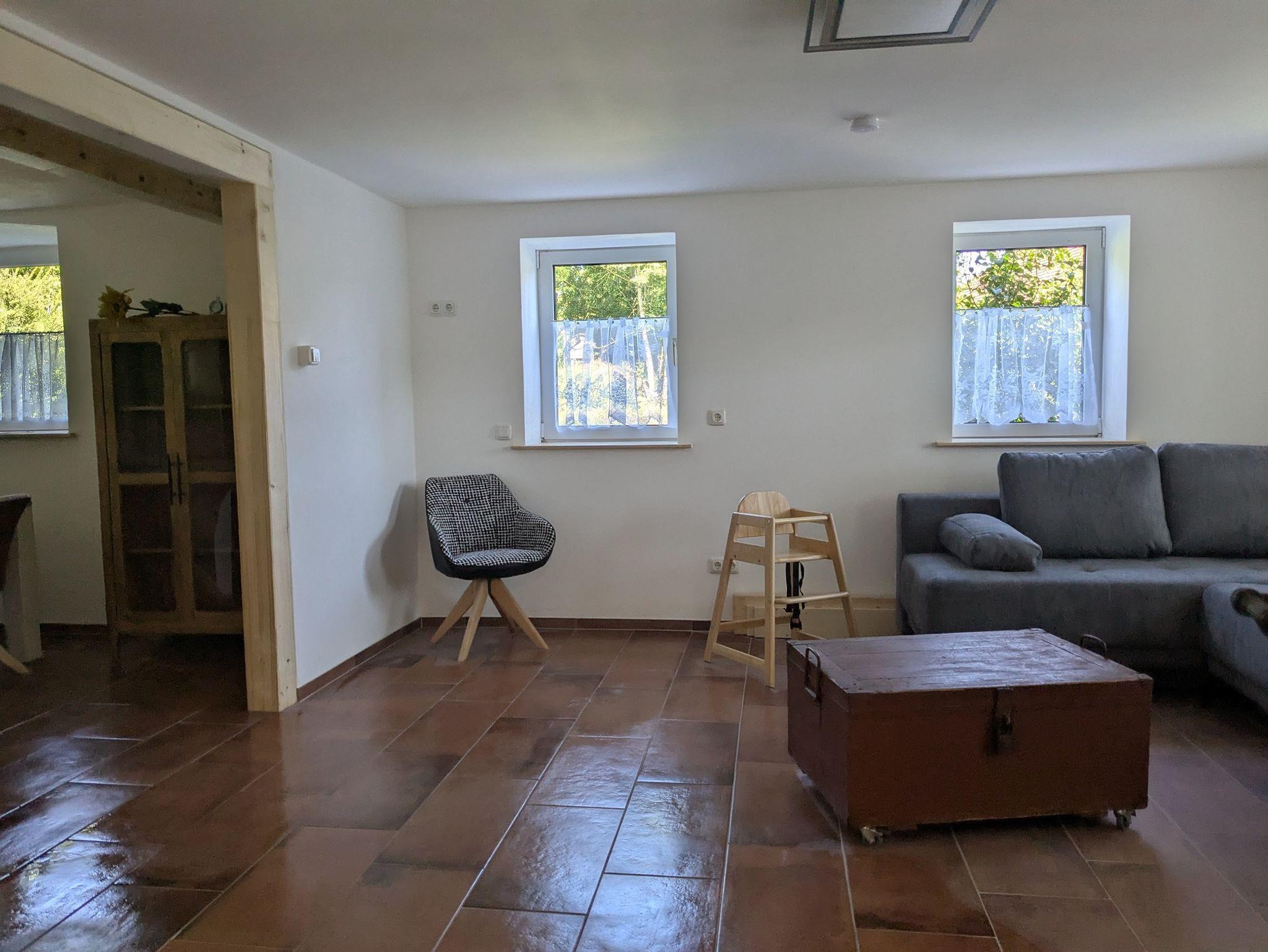 In der Ferienwohnung Funkenstube stehen auf 90 qm ein Schlafzimmer mit Ehebette, sowie drei Schlafsofas im Wohnzimmer und Nebenzimmer zur Verfügung. Im Wohnzimmer befindet sich ein Fernseher für gemütliche Filmabende, die Fußbodenheizung sorgt für ein angenehmes Raumklima, der Schwedenofen ergänzt die gemütliche Atmosphäre. Das Badezimmer verfügt über eine Walk-In-Dusche. Zusätzlich steht ein weiteres separates WC zur Verfügung. Wir leben die Energiewende: Auf dem Parkplatz steht eine Ladesäule für Ihr E-Auto bereit!