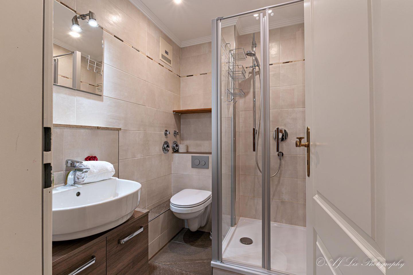 Zusätzlich zur praktischen Ausstattung, die unter anderem einen Fernseher, WLAN, ein Bügeleisen und ein Bügelbrett umfasst, sorgt ein gemütlicher Essbereich dafür, dass Sie Ihre Mahlzeiten in schöner Atmosphäre genießen können. Damit Sie sich auch während Ihres Aufenthalts wohlfühlen, ist die Wohnung mit einer Zentralheizung ausgestattet und bietet die Bequemlichkeiten eines modernen Bades mit offener Dusche, Waschbecken und WC.