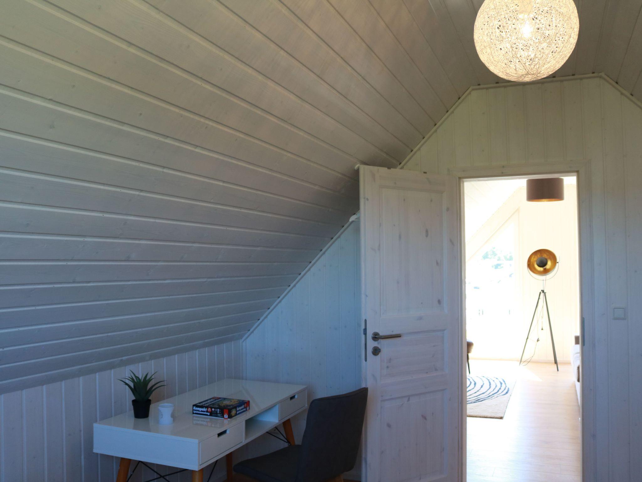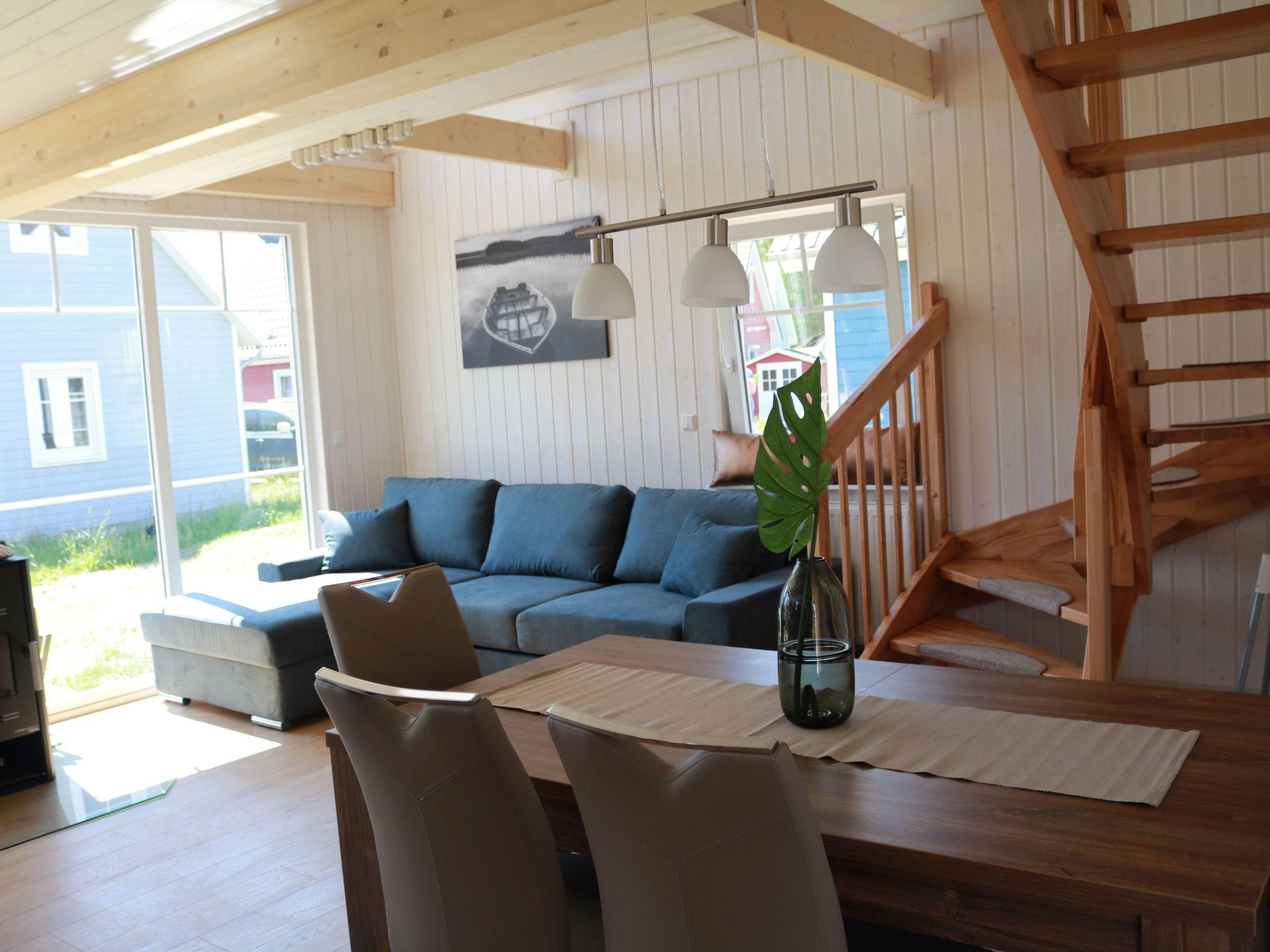 Very cosy holiday home - harbour village Zerpenschleuse with fireplace 2nd row to the water Between water and meadow lies this cosy wooden holiday home in Scandinavian style. The holiday home in the harbour village of Zerpenschleuse in the idyllic north of Brandenburg is situated in the second row to the water with a wonderful view over the boats and the nature around the harbour basin. The holiday home is modern and bright in Scandinavian style. Thanks to the gallery-like first floor and the huge panoramic windows that extend from the floor to the roof, the entire house is flooded with light and the view falls again and again and from everywhere on the enchanting landscape. In the immediate vicinity, a rest stop on the canal, as well as cafés and boutiques in the village of Zerpenschleuse await your visit within a radius of approx. one kilometre. The Bernsteinsee lake in Ruhlsdorf (approx. 6 km) is ideal for swimming. The marvellous sandy beach makes for great swimming fun. A little more action is also guaranteed at the water ski centre, where wakeboarding and water skiing are possible and corresponding courses are offered. The Prenden golf course, which is only 15 minutes away by car, offers a change from water sports. In addition to active recreation, the nearby town of Wandlitz (13 km) with its cultural attractions is a popular destination for those seeking relaxation. Berlin is also only 50 km away and can be reached by public transport in just over an hour.