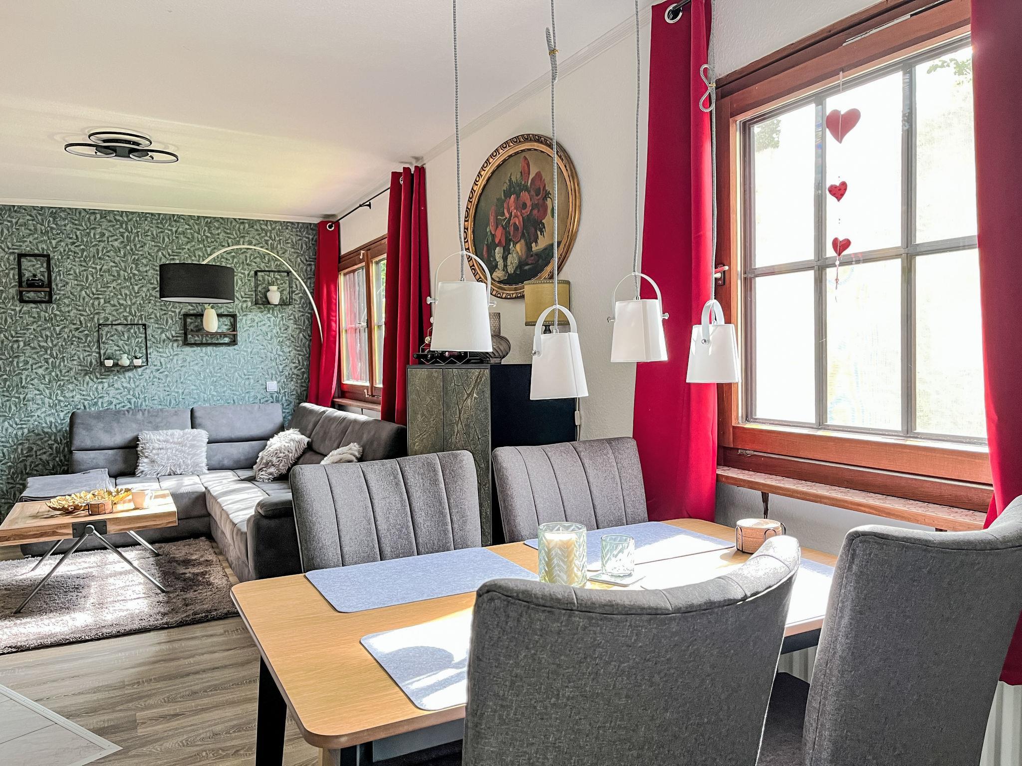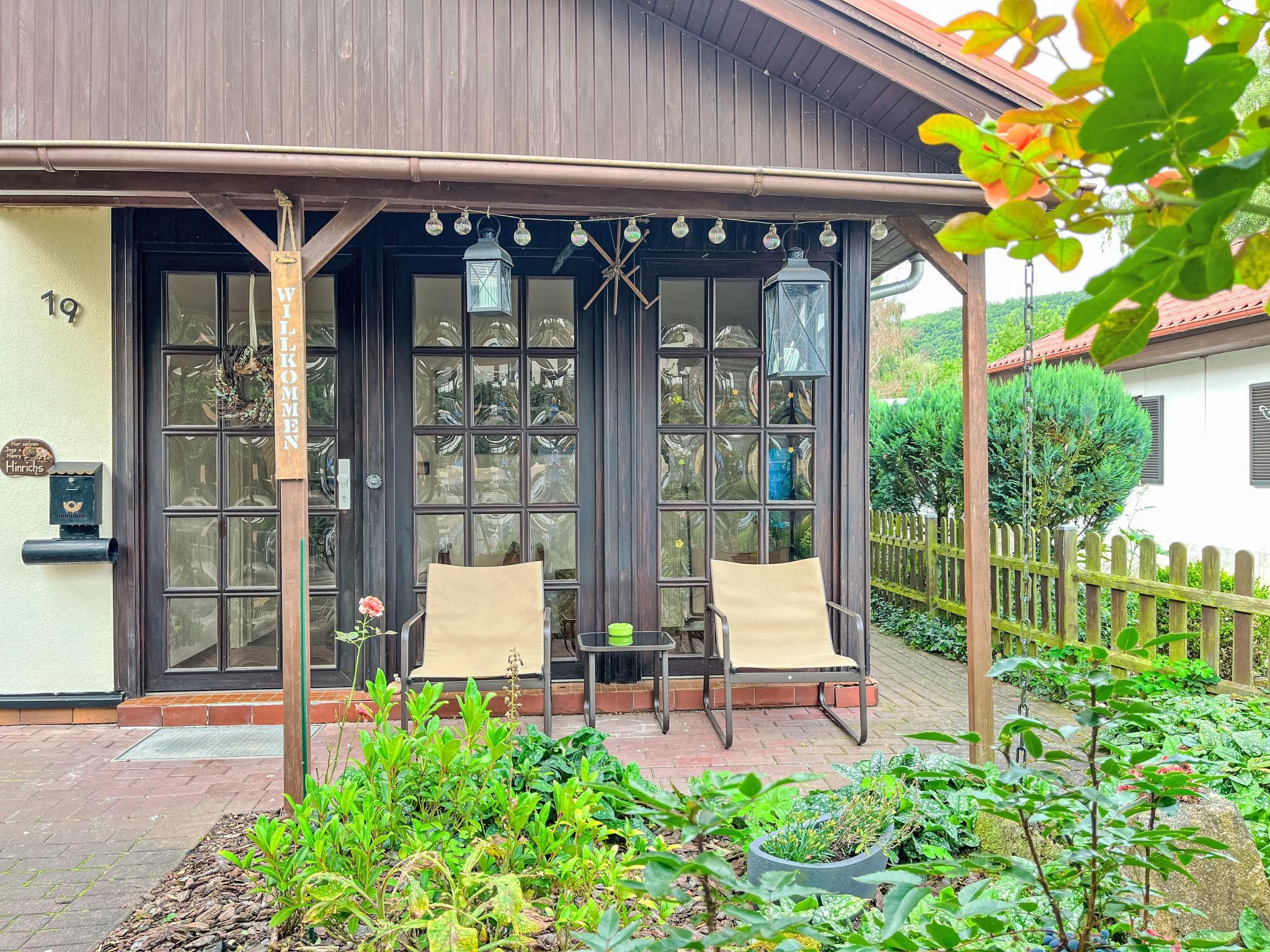 "Ferienhaus Inge & Henry an der Werra", 3-room house 100 m2. Object suitable for 3 adults + 2 children. Tasteful and cosy furnishings: living/dining room with winter garden with open-hearth fireplace, dining nook and digital TV. Exit to the terrace. 1 room with 1 double bed (160 cm, length 200 cm). 1 room with 1 x 2 bunk beds. Large kitchen (oven, dishwasher, 4 ceramic glass hob hotplates, toaster, kettle, microwave, freezer, electric coffee machine). Shower/WC. Heating. Large terrace. Terrace furniture, barbecue, deck chairs, conservatory, box-room. Very beautiful, of the river. Facilities: washing machine. Internet (WiFi, free). Please note: suitable for families. Non-smokers only. Smoke alarm. The bunk bed has the following dimensions: Top 100x200cm/Bottom 140x200. Winter garden with reading corner, workspace and large seating area. Bookings accepted for holiday purposes only.