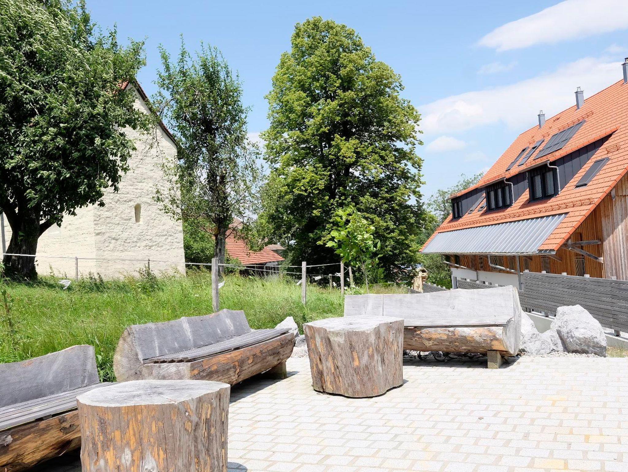 Das Trautesheim besticht zum einen durch die ursprüngliche Lage direkt neben der über 800 Jahre alten Nikolauskapelle, zum anderen wird durch die leicht erhöhte und dadurch exponierte Lage ein erhabenes Gefühl und Weitblick ins Grüne geboten.