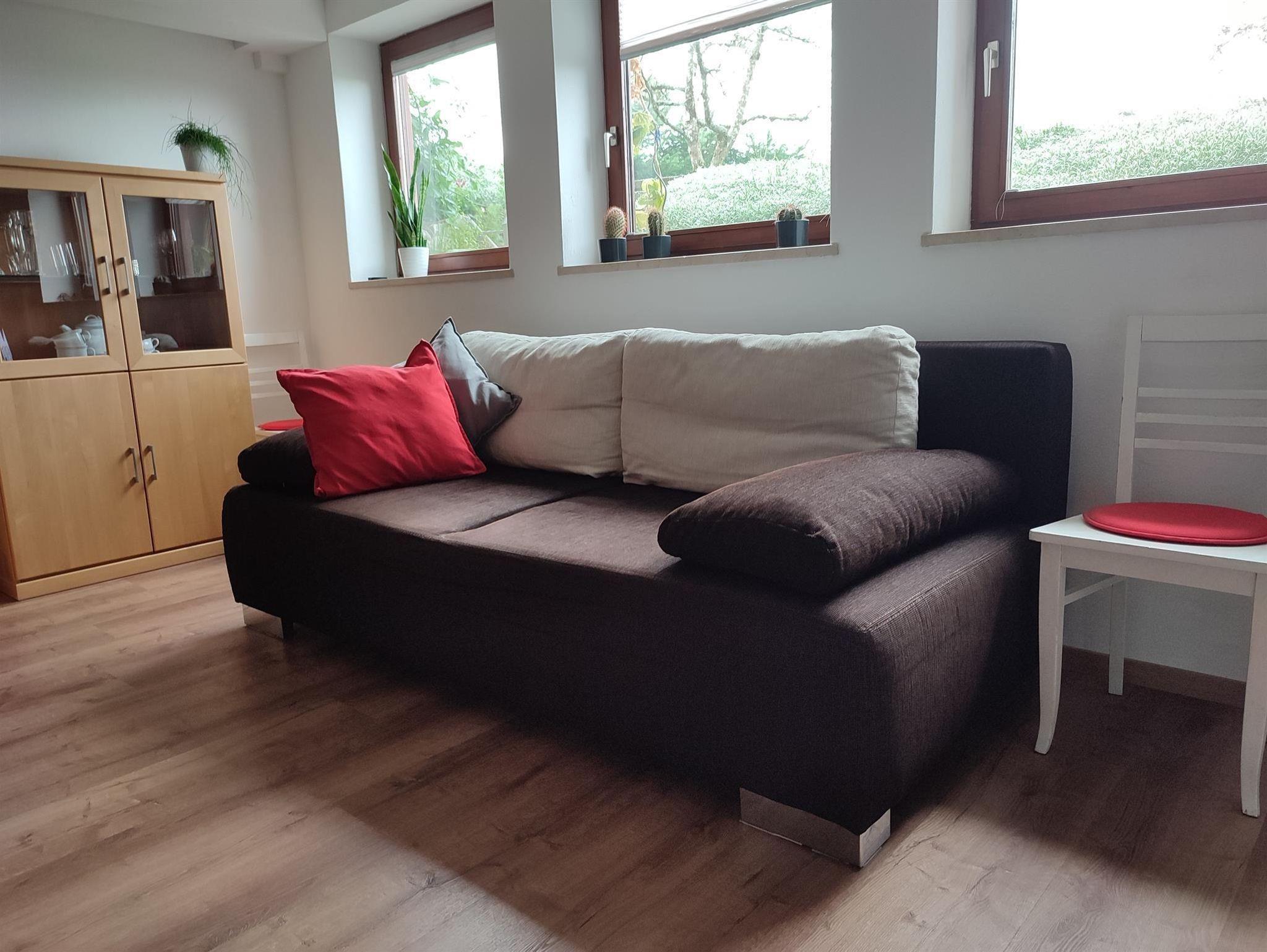 In der Ferienwohnung mit 35m² nächtigen Sie in einem der zwei Einzelbetten (90x200). Eine dritte Person kann auf dem bequemen Schlaf-Sofa übernachten. Der Wohn/Schlafraum mit gemütlichem Schlaf-Sofa und Smart-TV wird durch die voll ausgestattete Küchenzeile ergänzt (Backofen, Mikrowelle, Kühl/Gefrierkombi, Toaster, Töpfe, Geschirr, Kaffeemaschine und Wasserkocher…) Ihr gemütliches Ferienzimmer mit Bad (Dusche/WC) befindet sich im Untergeschoss und bietet Ihnen jedoch Komfort wie Fußbodenheizung und Fliegengitter. Für Kurzurlaube aber auch Langzeitaufenthalte geeignet. Zu weiteren Annehmlichkeiten gehören eine kostenlose Higspeed Internetverbindung (WLAN und LAN) somit ist auch Homeoffice möglich. Kostenloser Parkplatz, Kaffee- und Teezubehör sowie Waschmaschine und Trockner... ankommen - abschalten - entspannen Bettwäsche und Handtücher sind im Preis inbegriffen. Rauchen im Gebäude ist nicht erlaubt. Herzlich willkommen!