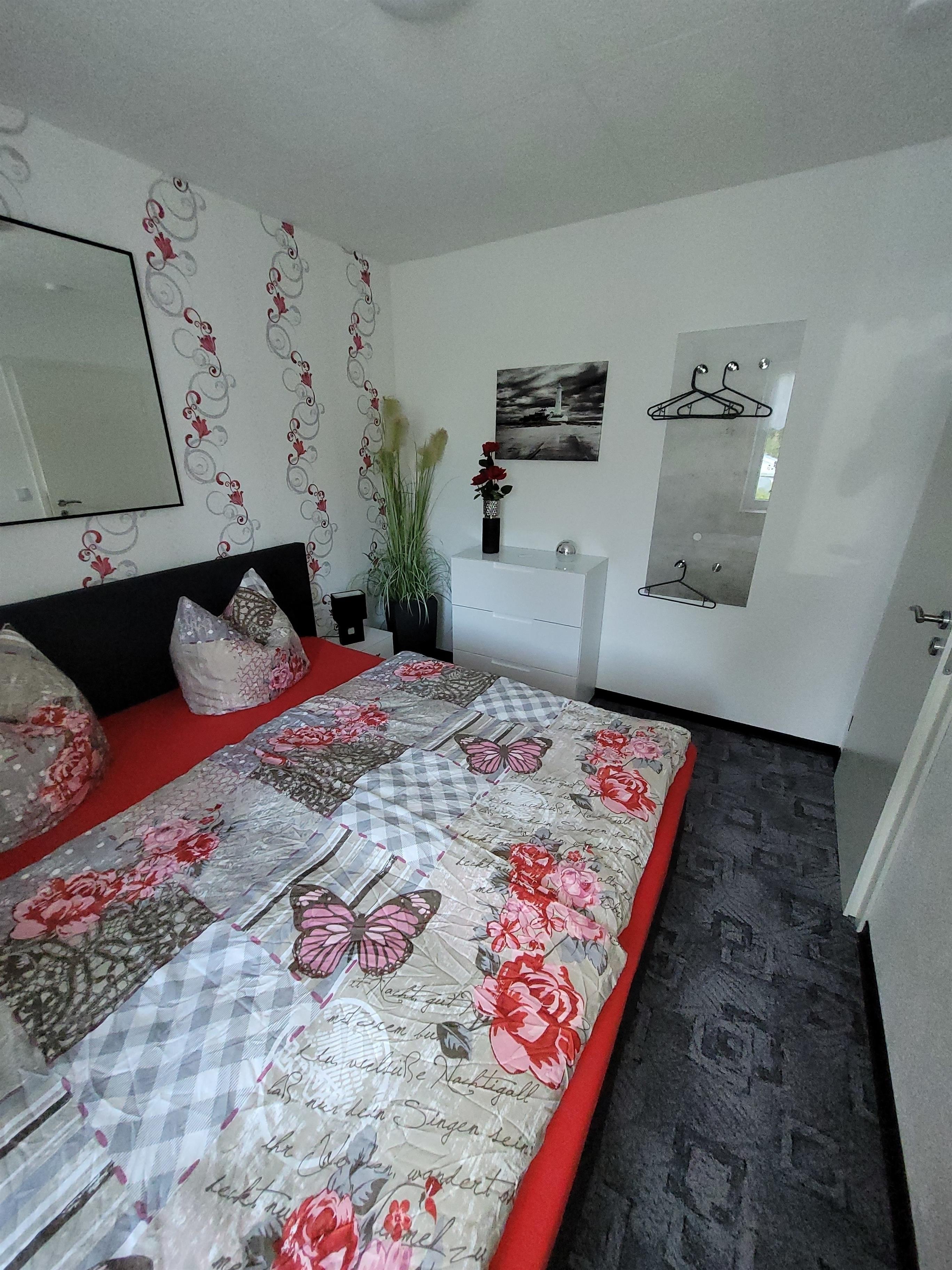 Direkt von der Südterrasse gelangt man in die Küche, welche mit Cerankochfeld, erhöhtem Backofen, Geschirrspüler, Mikrowelle, Kühl- und Gefrierkombination, Toaster, Kaffeemaschine, Eierkocher etc. ausgestattet ist. Eine kleine Sitzecke rundet die gemütliche Küche ab. Das moderne Badezimmer hat eine große, ebenerdige Dusche, einen Waschtisch sowie den Handtuchheizkörper. Das ausziehbare Sofa im Wohnbereich lädt zum Kuscheln ein und kann auch als Bett verwendet werden. Der Flachbildschirm bietet Netflix- und Prime-Funktion mit selbstverständlich kostenfreien WLAN-Zugang. Zur Ausstattung dieser Wohnung gehört auch eine Radio-Stereoanlage mit CD-Player und USB-Eingang. Im angrenzenden Schlafzimmer bietet ein Boxspringbett hohen Schlafkomfort. Das Schlafempfinden ist weich und bequem und nicht hart. Das Rauchen in der Wohnung ist nicht gestattet.