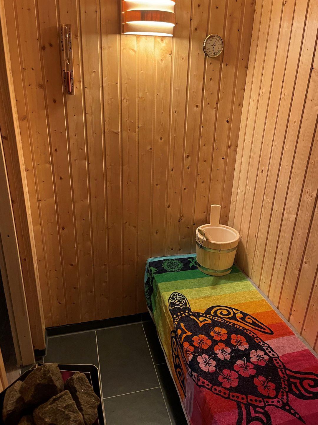 An stürmischen und/oder regnerischen Tagen kann das Badezimmer mit eigener Sauna und seiner Vollausstattung schnell zum Wellnesstempel werden. Hier bieten eine Sauna, eine Regendusche und eine Badewanne den nötigen Komfort zur Erholung. Saunadüfte für Ihre persönlichen Saunamomente können Sie an unserer Rezeption erwerben.