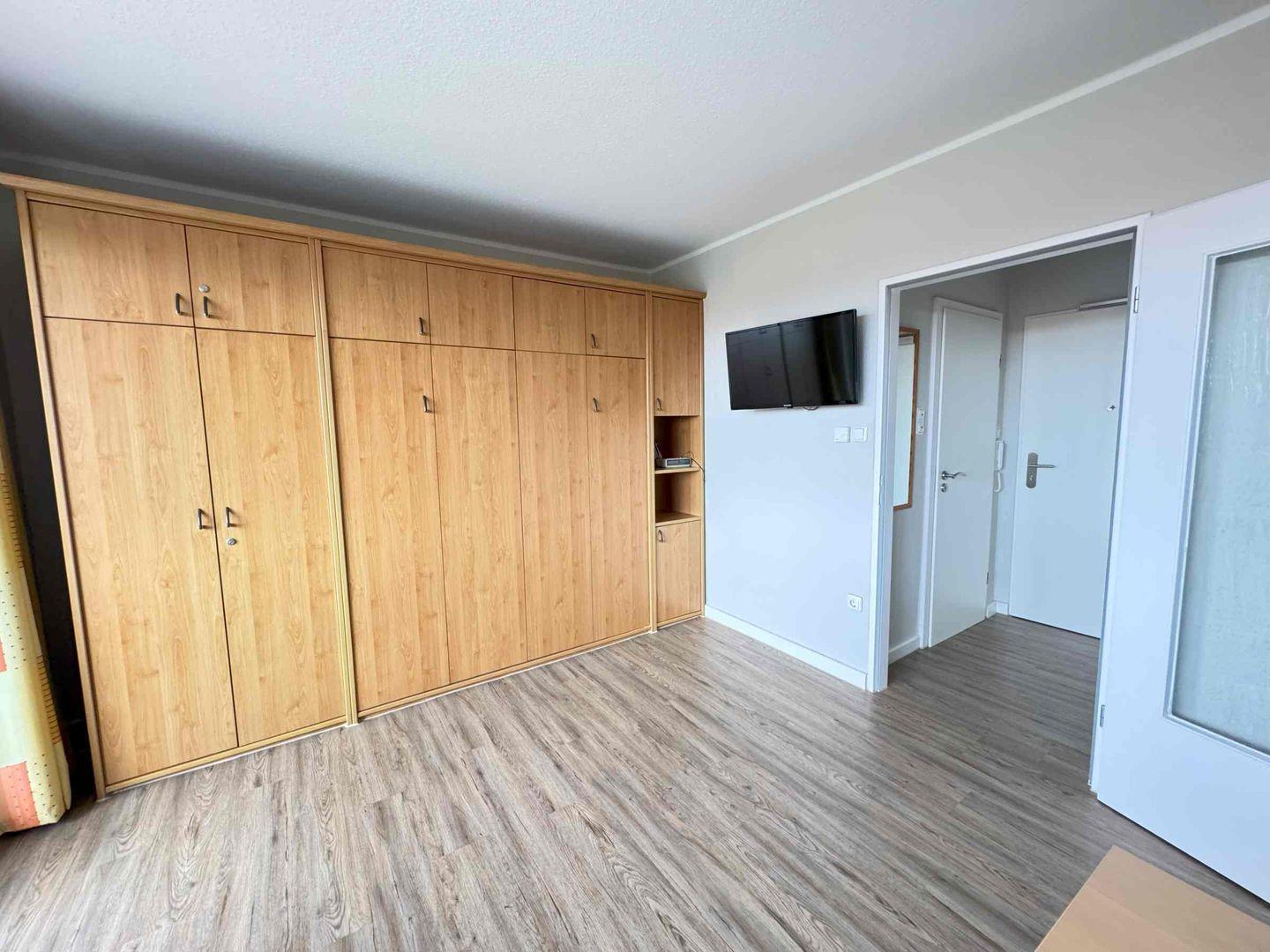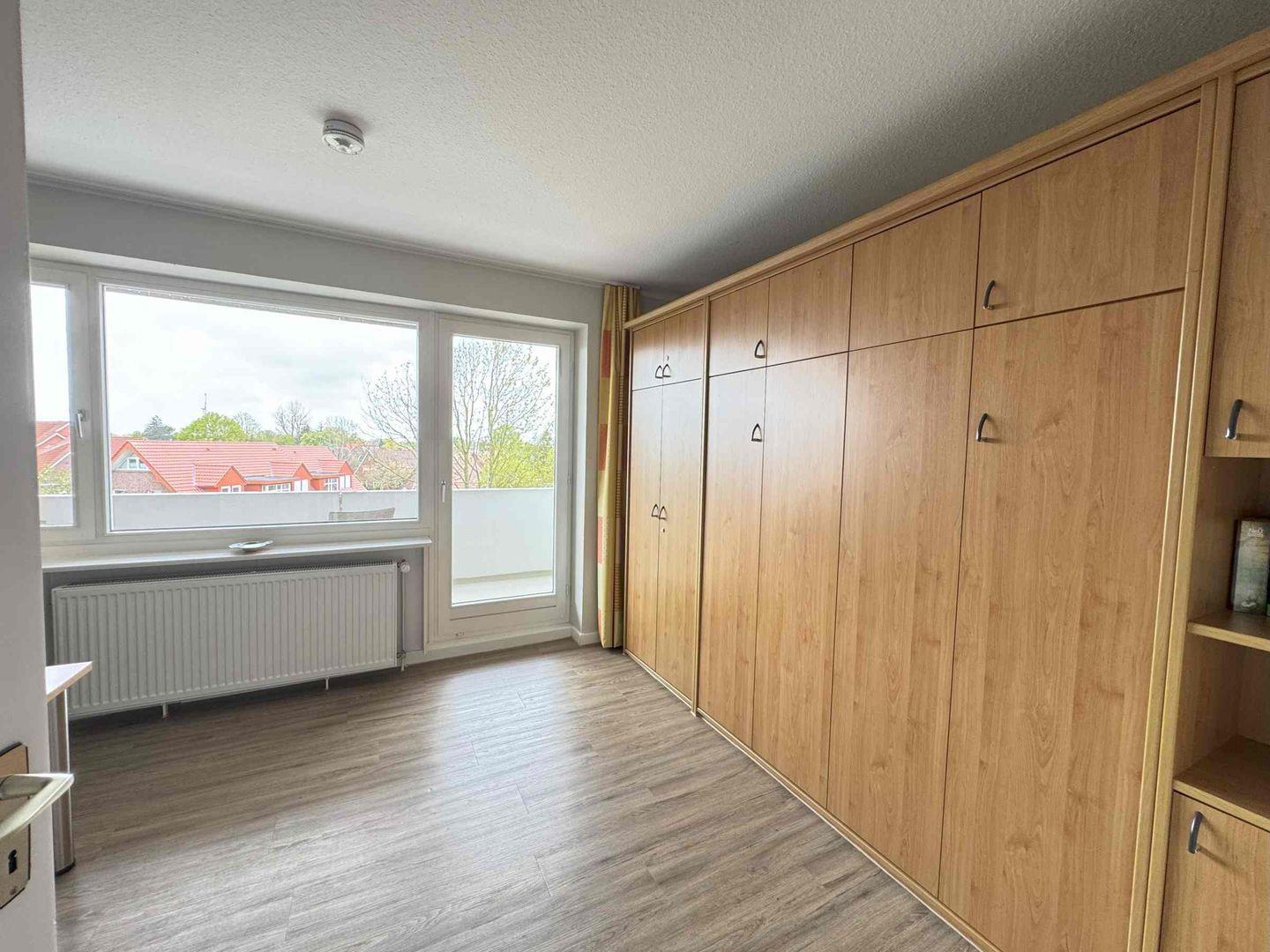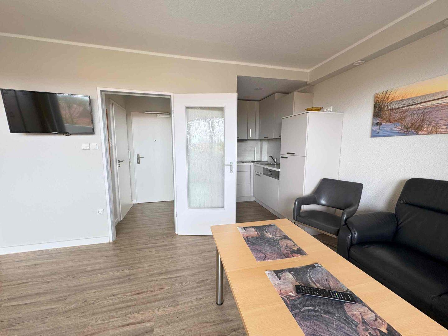 Dieses Einzimmerapartment befindet sich im zweiten Stock mit Balkon zur Abendsonne. Im Wohnzimmer ist ein bequemes Schrankbett für zwei Personen und eine gemütliche Sitzecke mit einem neuen Fernseher. Die Küche wurde erst in 2023 renoviert und ist mit allem ausgestattet was man benötigt. In zwei Gehminuten sind sie im Ortskern von Horumersiel und am Strand.