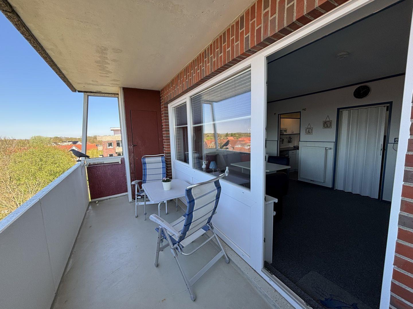 Auf dem Balkon haben sie Blick ins schöne Wangerländer Umland und den ganzen Nachmittag Sonne.