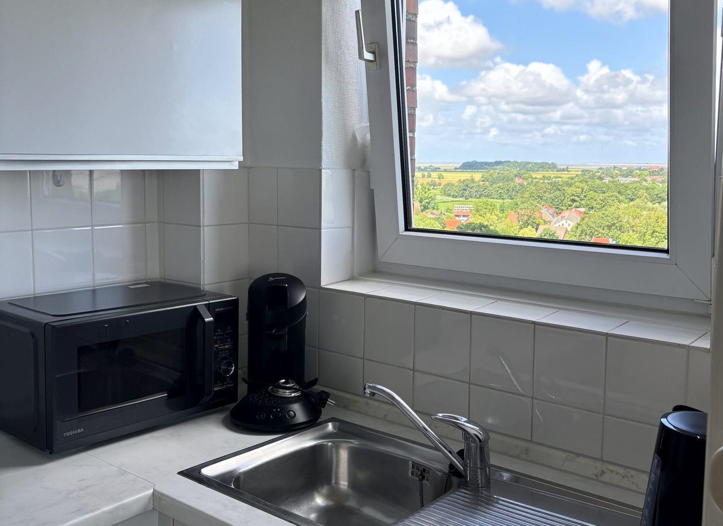 Der Strandkieker mit Meerblick liegt in einem Apartmenthaus in der 11. Etage