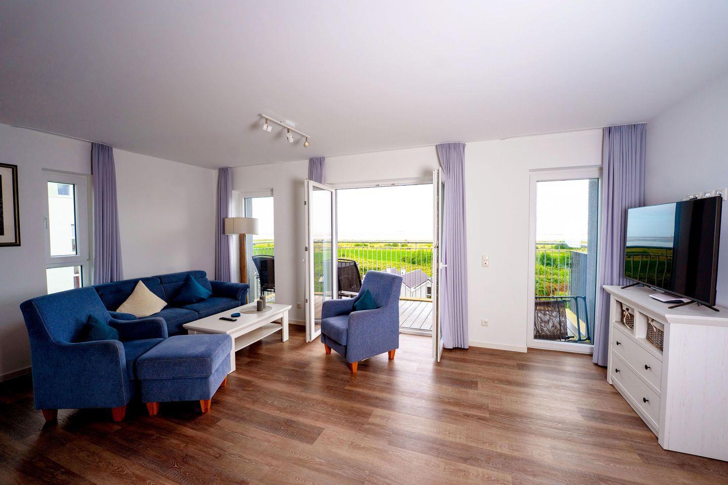 Herzlich willkommen in unserer Ferienwohnung „Meerkieker“! Im fünften Stock gelegen, bietet Euch diese Wohnung einen atemberaubenden Blick über das Meer, das Wattenmeer und die weite Küstenlandschaft rund um Schillig – so weit das Auge reicht.