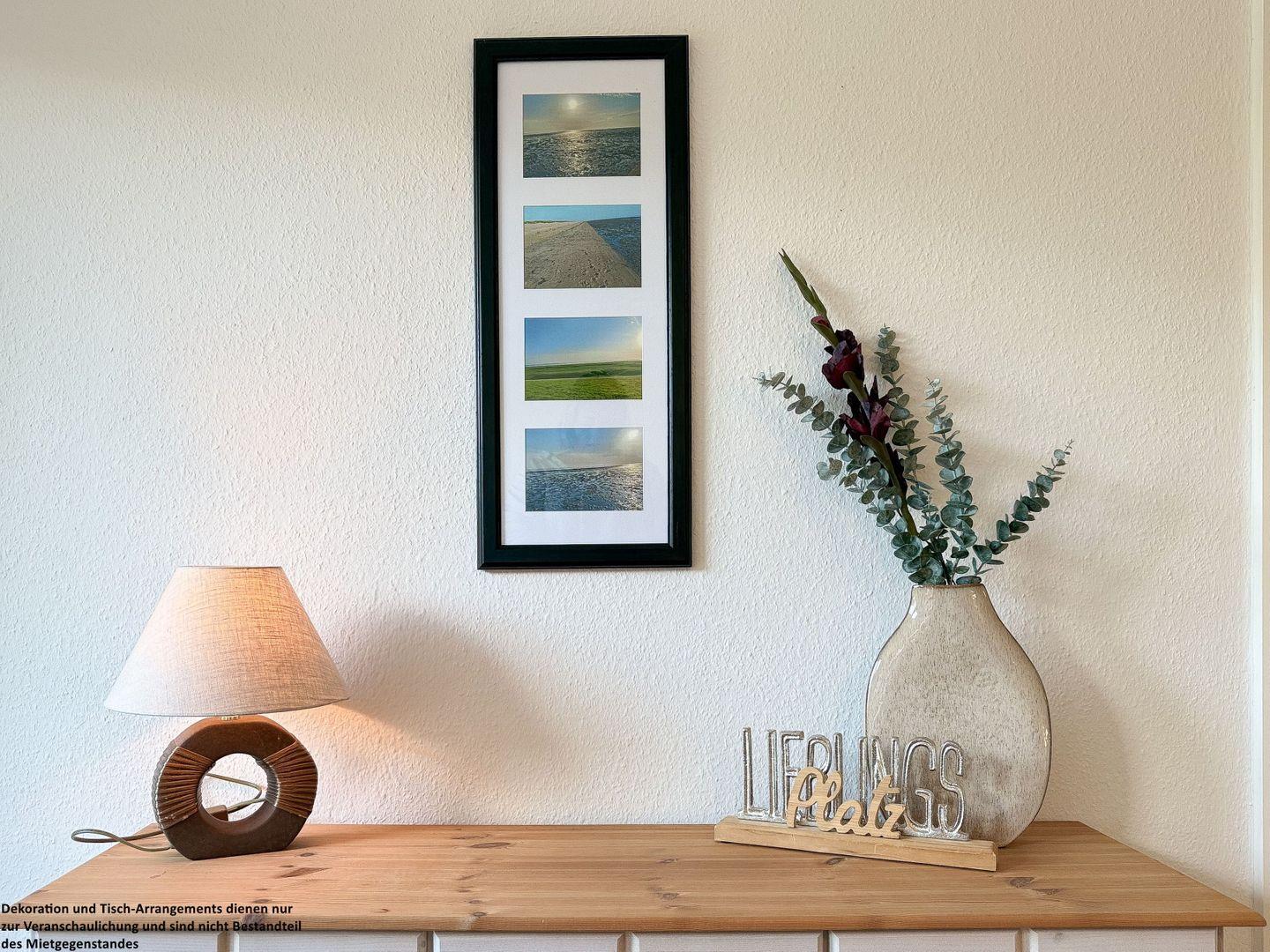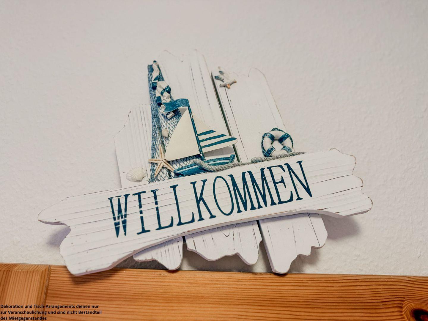 Schon beim Betreten empfängt Sie ein freundlicher Flur: eine Garderobe für Jacken, ein Schuhschrank für Ihre Lieblingsschuhe und ein großer Ganzkörperspiegel, in dem Sie sich noch einmal betrachten können, bevor Sie zu einem Strandspaziergang aufbrechen.