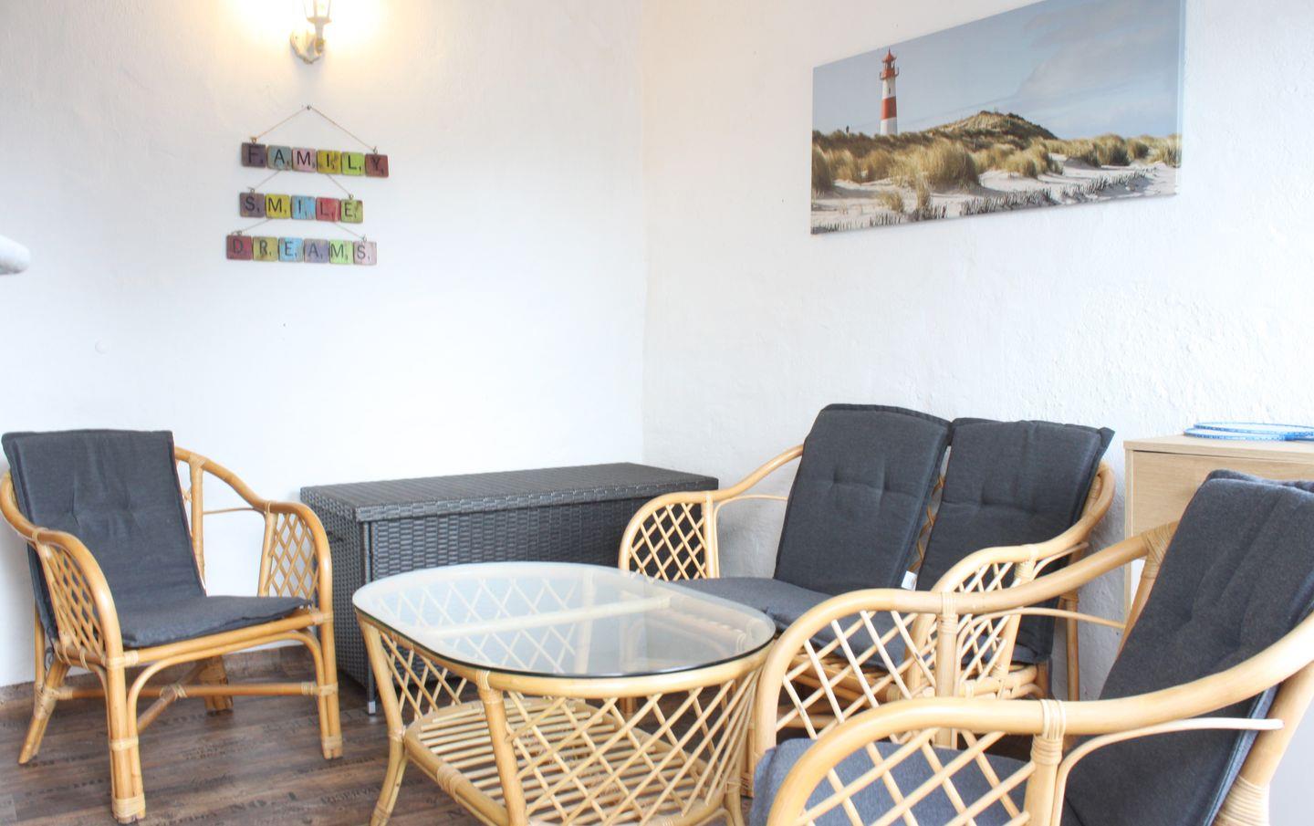 Diese 3 Zimmerwohnung bietet Platz für 4 Personen. Der große, eingezäunte Garten bietet viel Fläche für erholsame Sonnenstunden. Der Kinderbereich inkl. Sandkasten, Rutsche, Basketballkorb und Fußballtor garantiert auch den Kleinsten Stunden voller Spaß und Freude.