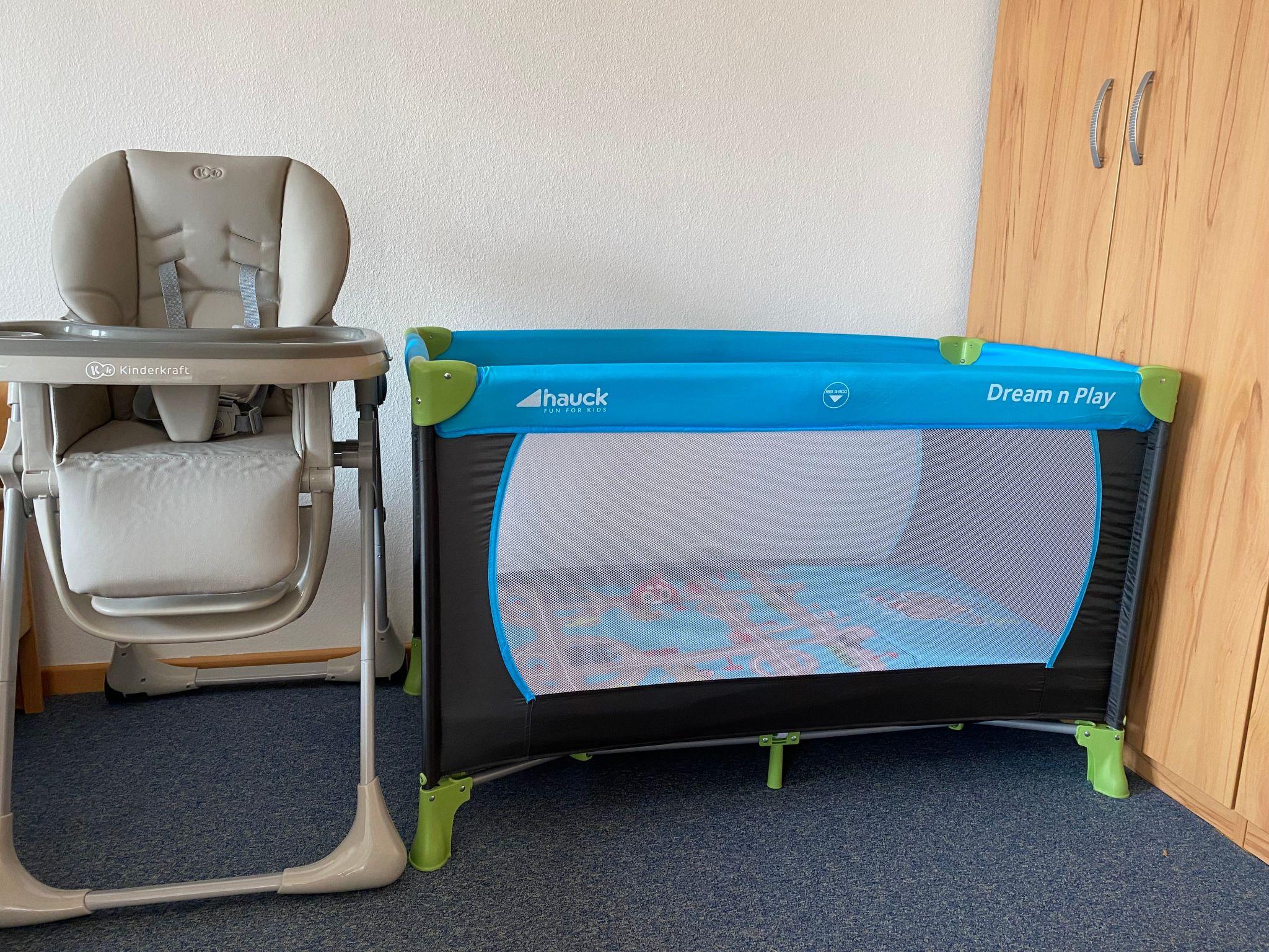 The 2-room flat is approx. 46 m2 in size and consists of a separate bedroom, a kitchen-living room, a bathroom and a roof terrace. The flat offers space for 2 adults and 2 children.bedroom - the bed can be used either as a 2x2 m double bed or as 2 single beds.in the kitchen-living room there are two single sofa beds 0.8x1.9 m, which were newly installed in May 2022.both rooms can be darkened with roller blinds.a TV with cable TV, a Blueray player and a small music speaker with USB connection are available.The kitchenette is fully equipped with kitchen utensils such as pots and pans, crockery and glasses, as well as a blender, hand blender, toaster, kettle, filter coffee machine and espresso pot.wifi is available free of charge throughout the flat.