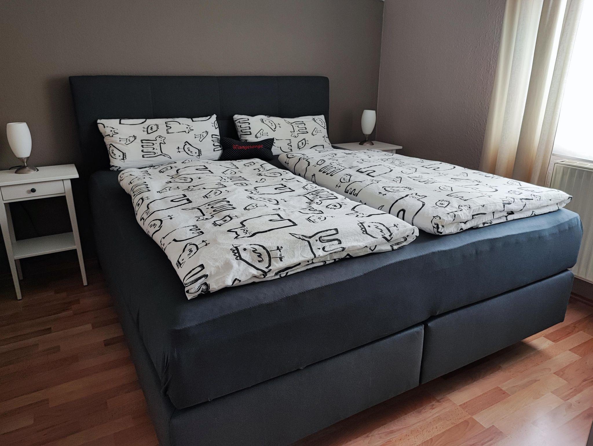 Moderne FeWo für bis zu 5 Personen. 47 Flachbild-Sat-TV, Radio/CD-Player, 1 Schlafzimmer Doppelbett (180x200 cm), 1 Kinderzimmer mit stabilem Etagenbett (unten: 140x200 cm, oben: 90x200 cm). Ledercouch, bodengleiches Duschbad mit faltbaren Glas-Seitenwänden, fahrbarer Bade-/WC-Stuhl auf Anfrage und Verfügbarkeit. Babybett und Hochstuhl, separate große Küche mit Backofen und Geschirrspülmaschine, umfangreiche Küchenausstattung; Tresor; Terrasse, Sitzmöbel f. 6 Personen; Erstausstattung Wäschepaket.