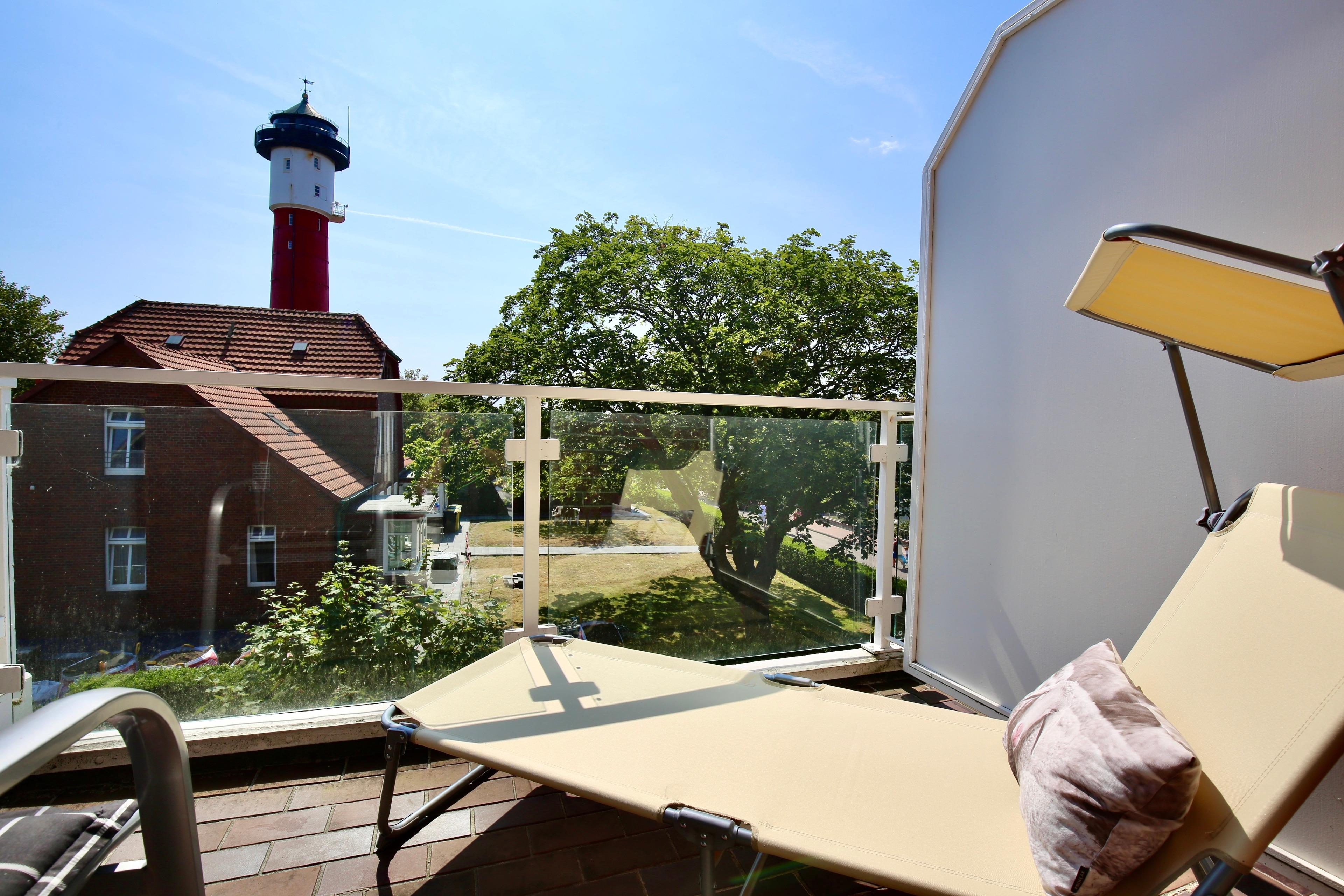 Genießt die beiden großzügigen Balkone mit Blick nach Süden auf das Wahrzeichen von Wangerooge, den Alten Leuchtturm - ab morgens um 9 Uhr bis zum Sonnenuntergang lacht hier die Sonne für Euch.