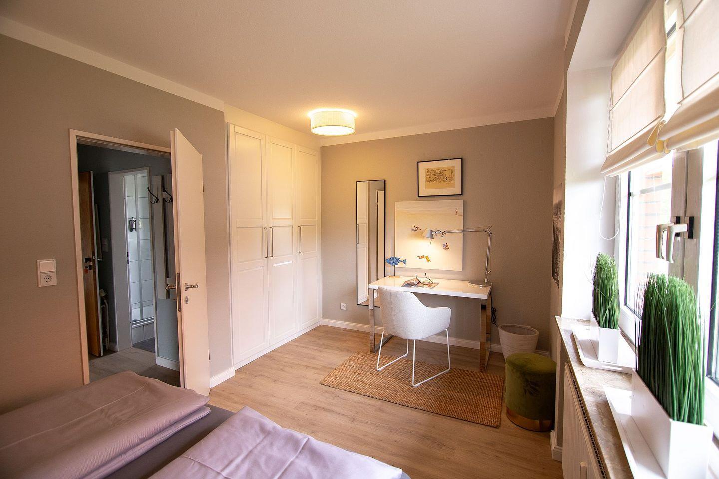 Einzigartige Lage: Genießt euren Morgenkaffee auf der Terrasse oder im lichtdurchfluteten Erker, während ihr den Sonnenaufgang über dem Wattenmeer erlebt. Der Blick auf den Deich wird euch in seinen Bann ziehen.